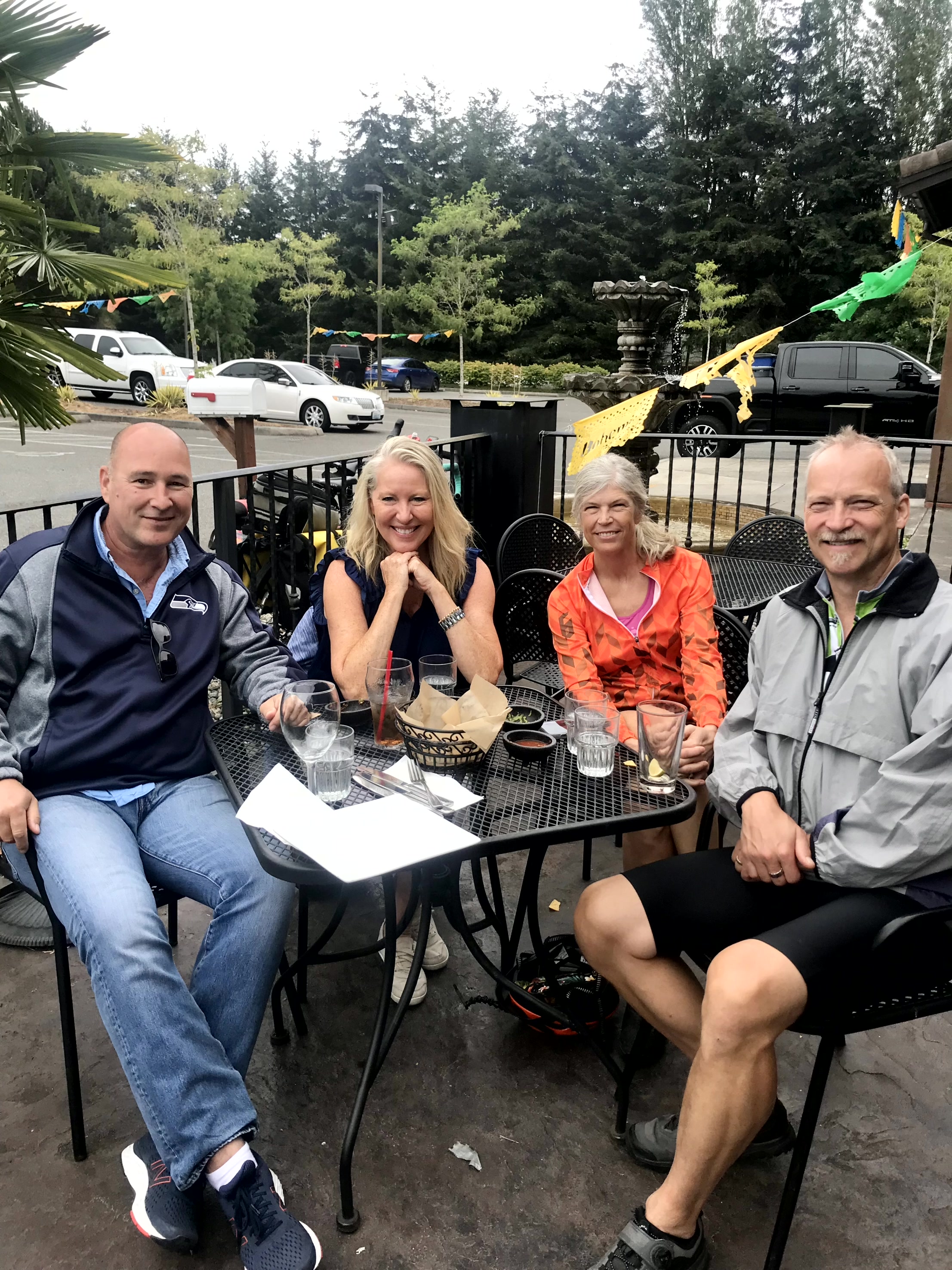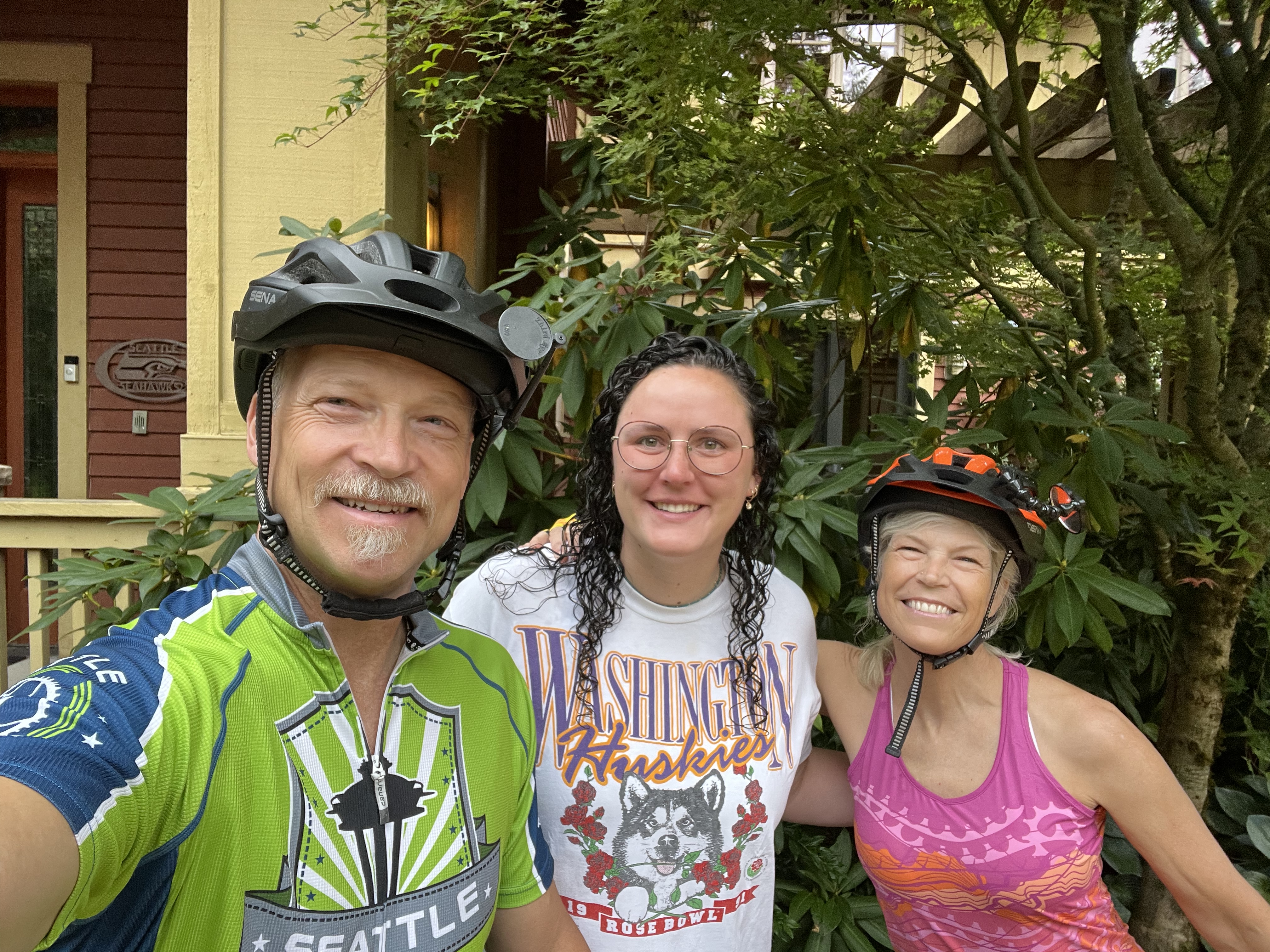 Leaving home. Last photo with Hannah for a long time 😦 Sammamish Trail to Burke Gilman to Interurban Trail to Edmonds Ferry. Meeting Mary and Jens in Kingston and ending the day at Fasanos (without taking more than one photo – sheesh).