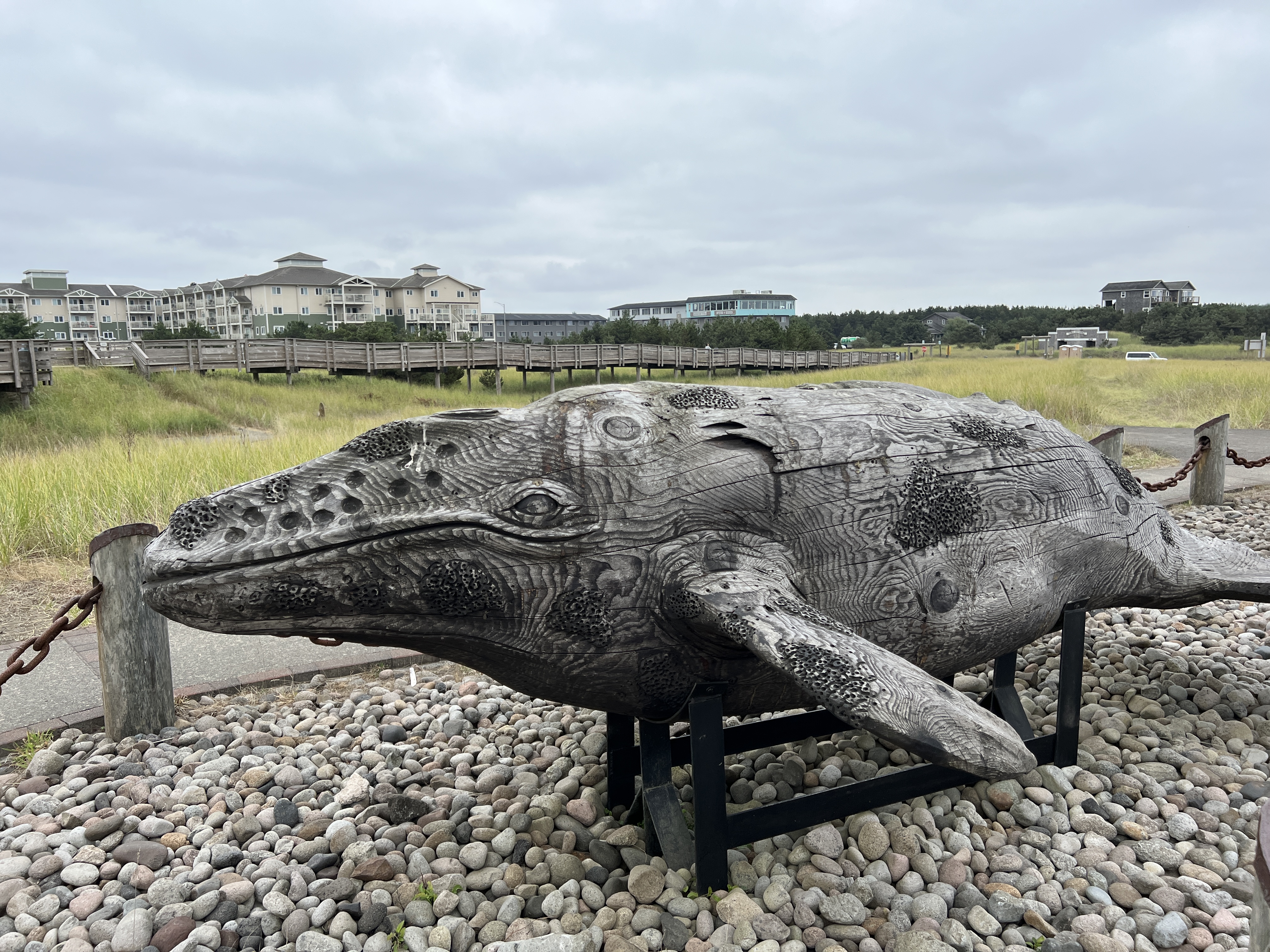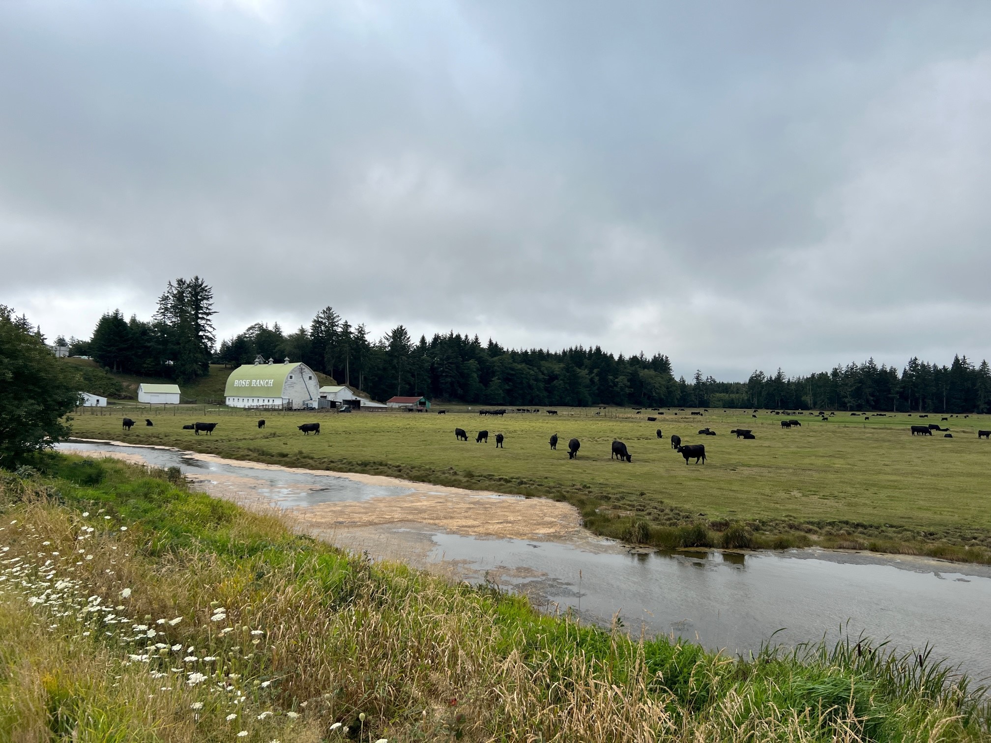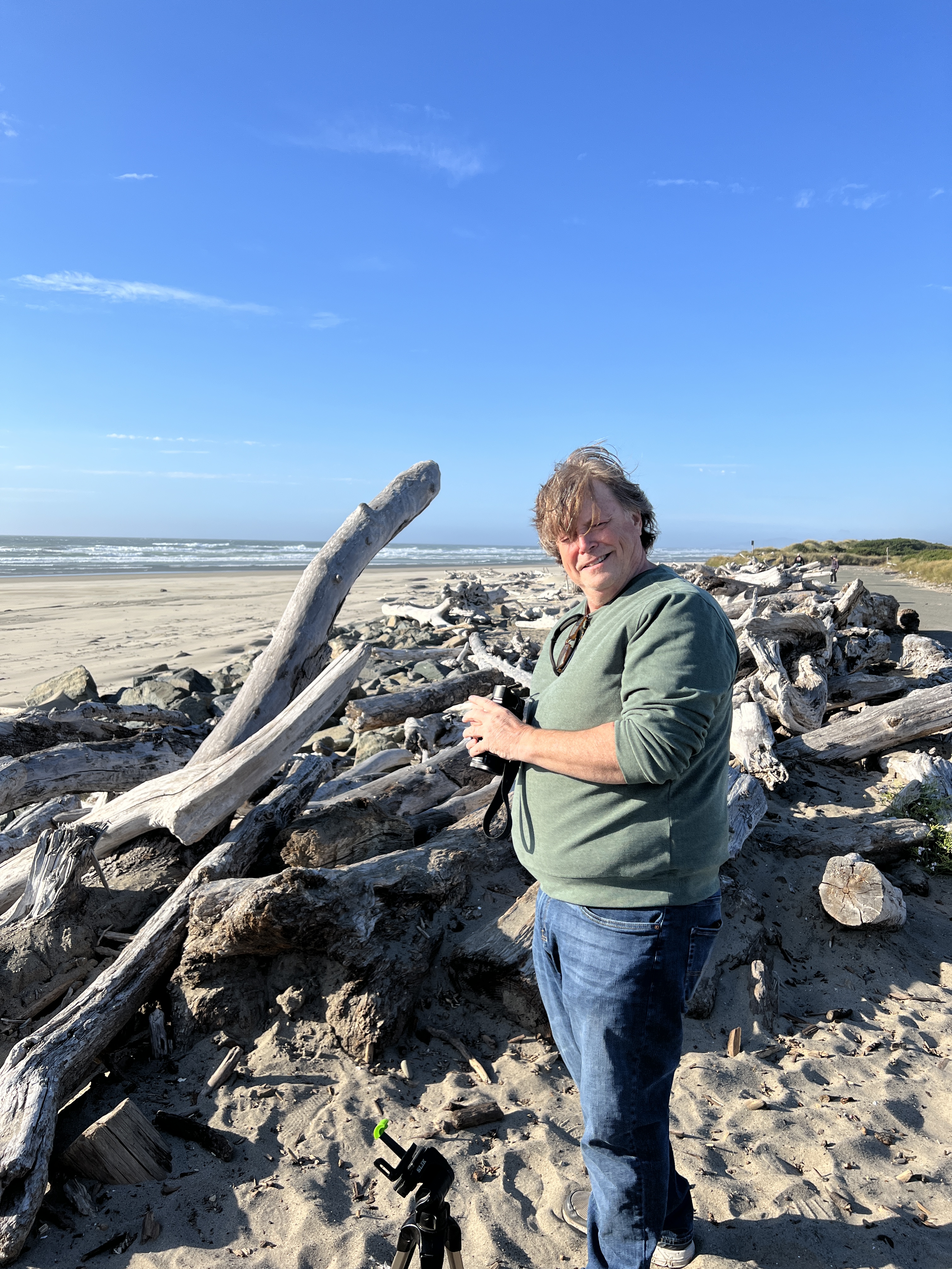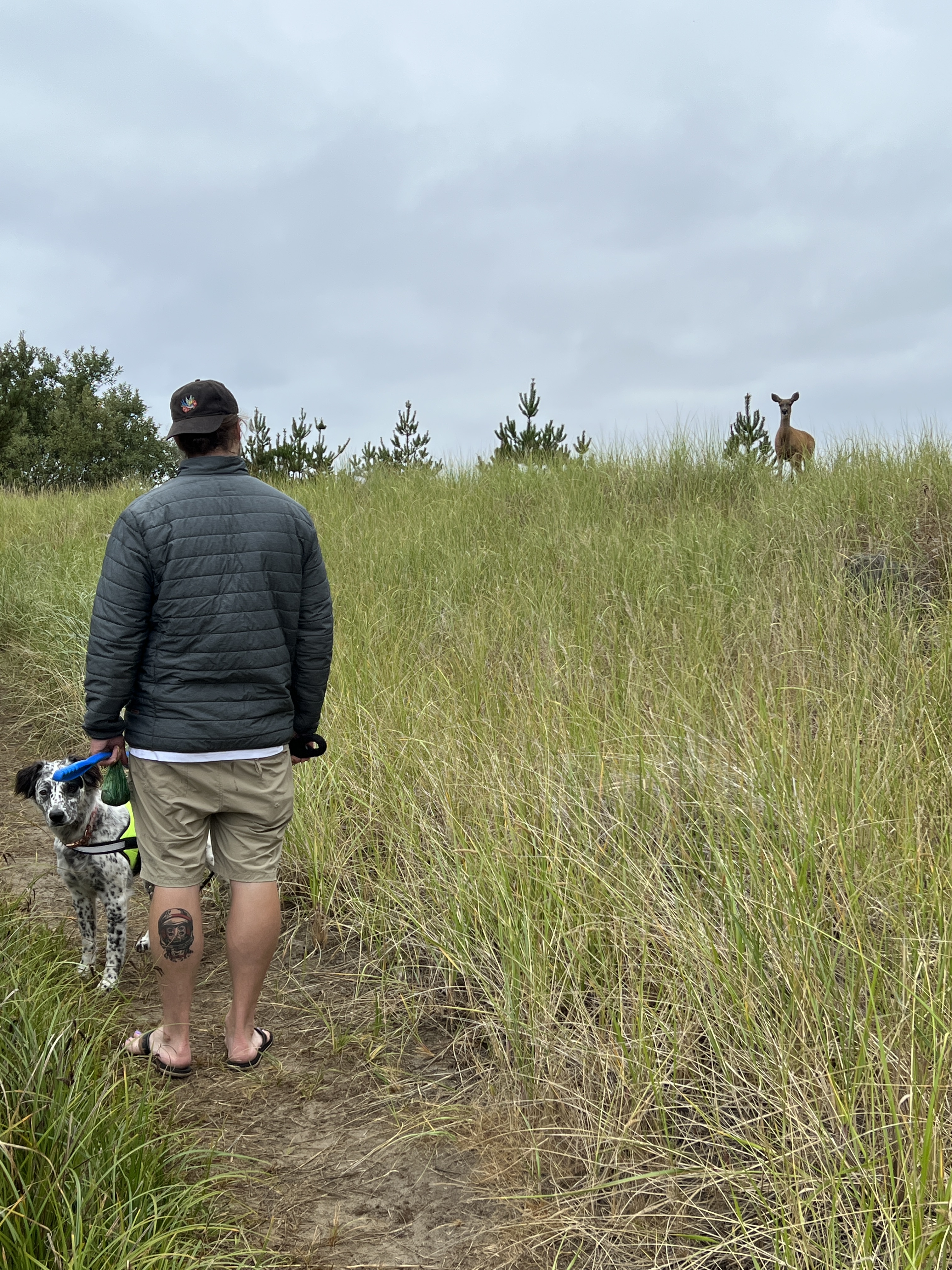 Long Beach to Nehalem, over the Astoria bridge and via Seaside (for brunch) and Canon Beach (visited Miska’s gallery). Passed some elk in Canon Beach (NOT zoomed in)! Surprise cheering squad in Nehalem (Mary and Jens, funny sign above them) and stayed with artist friend MJ.