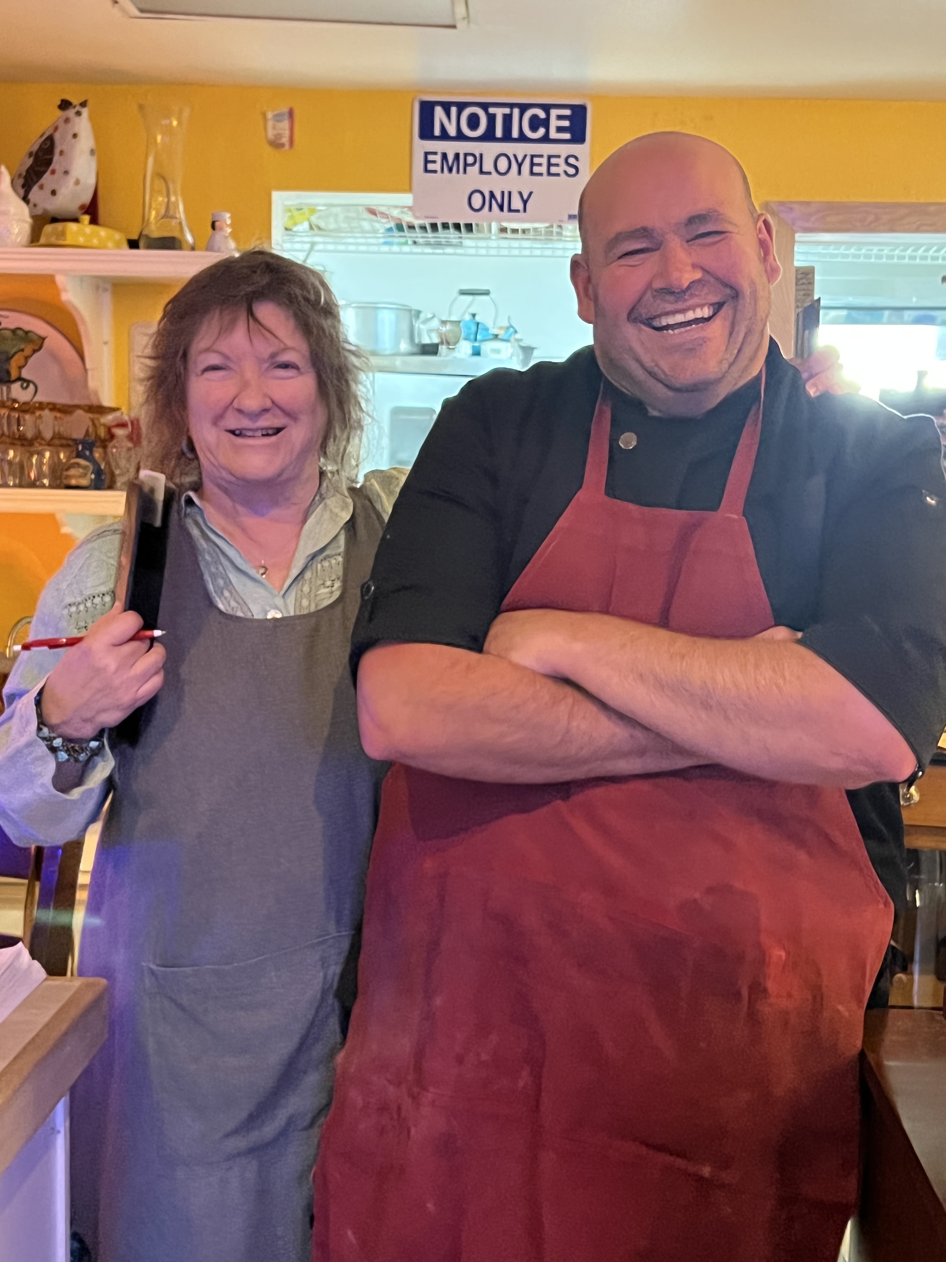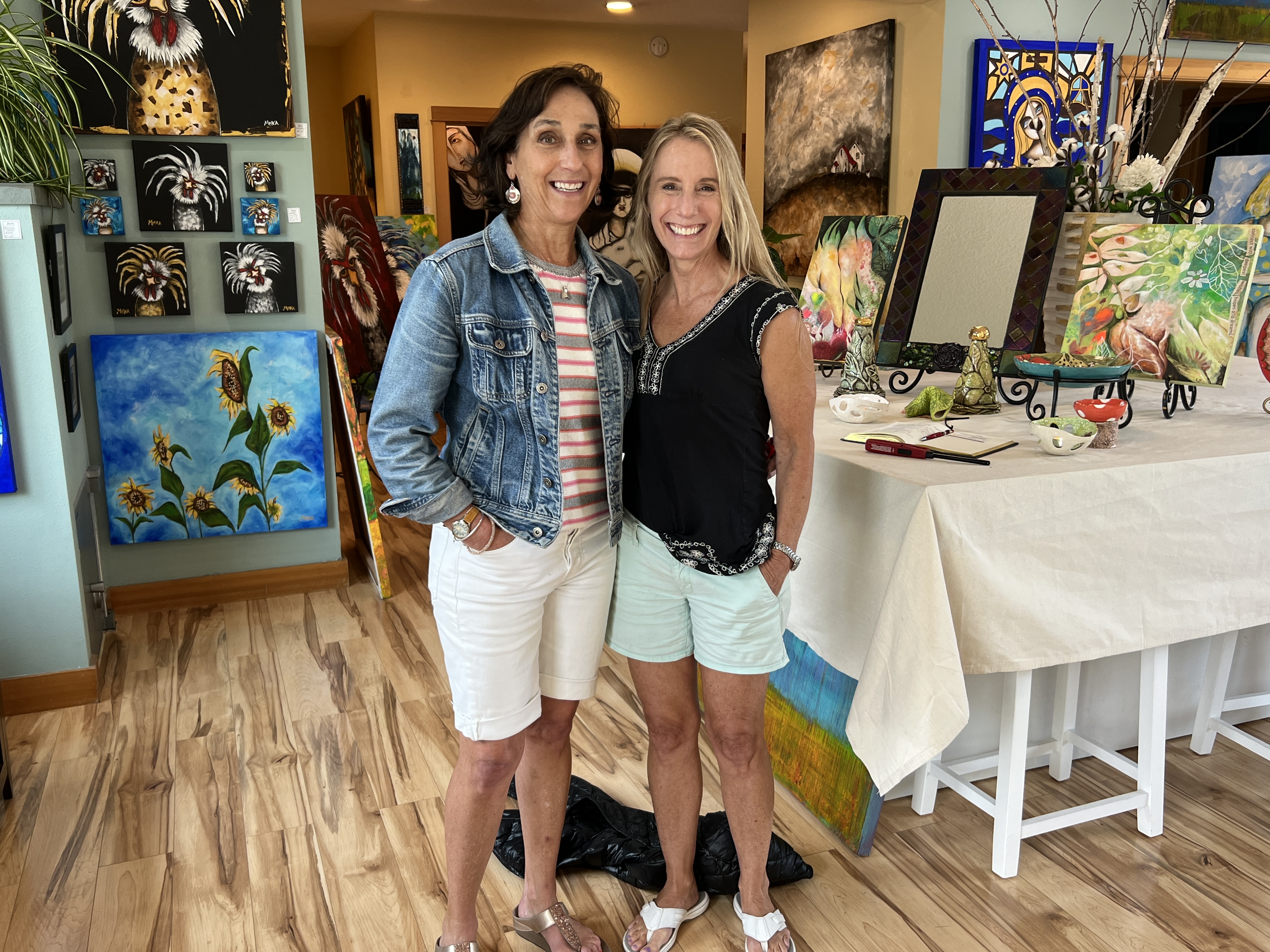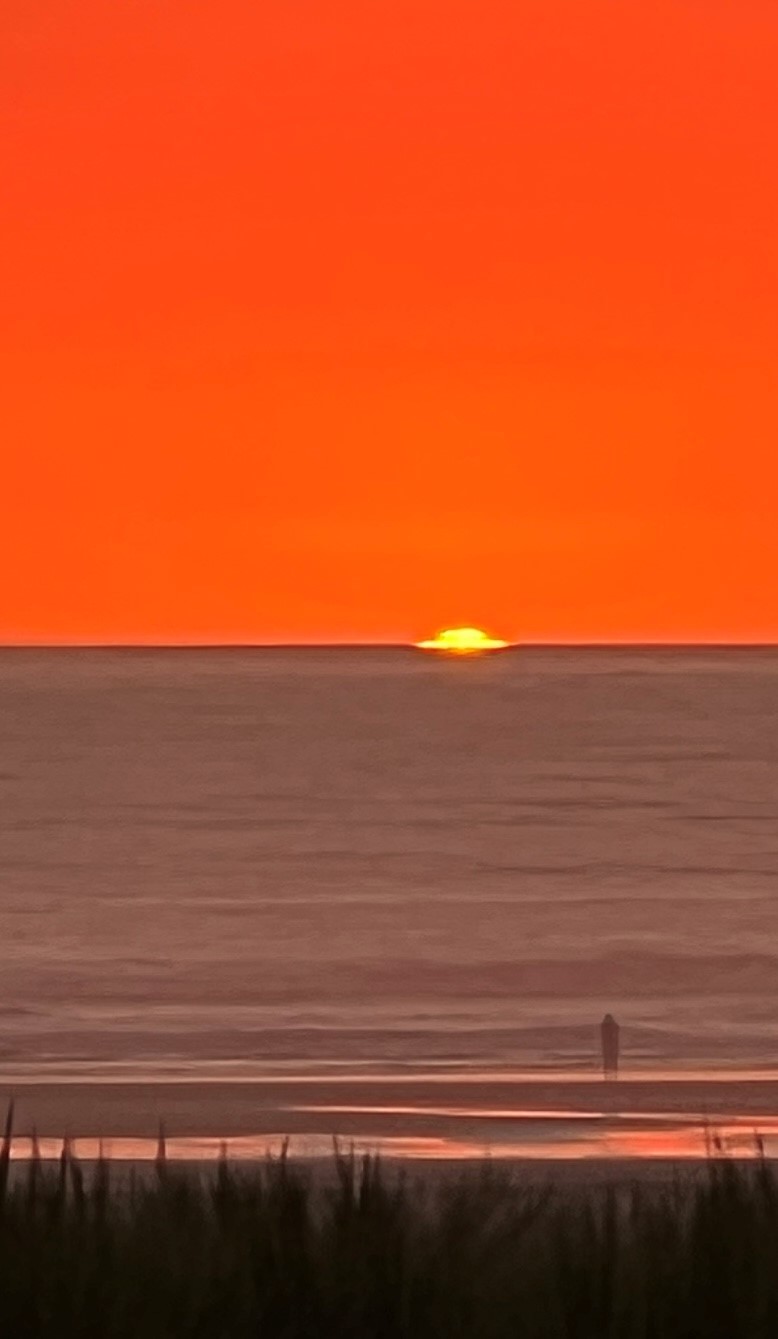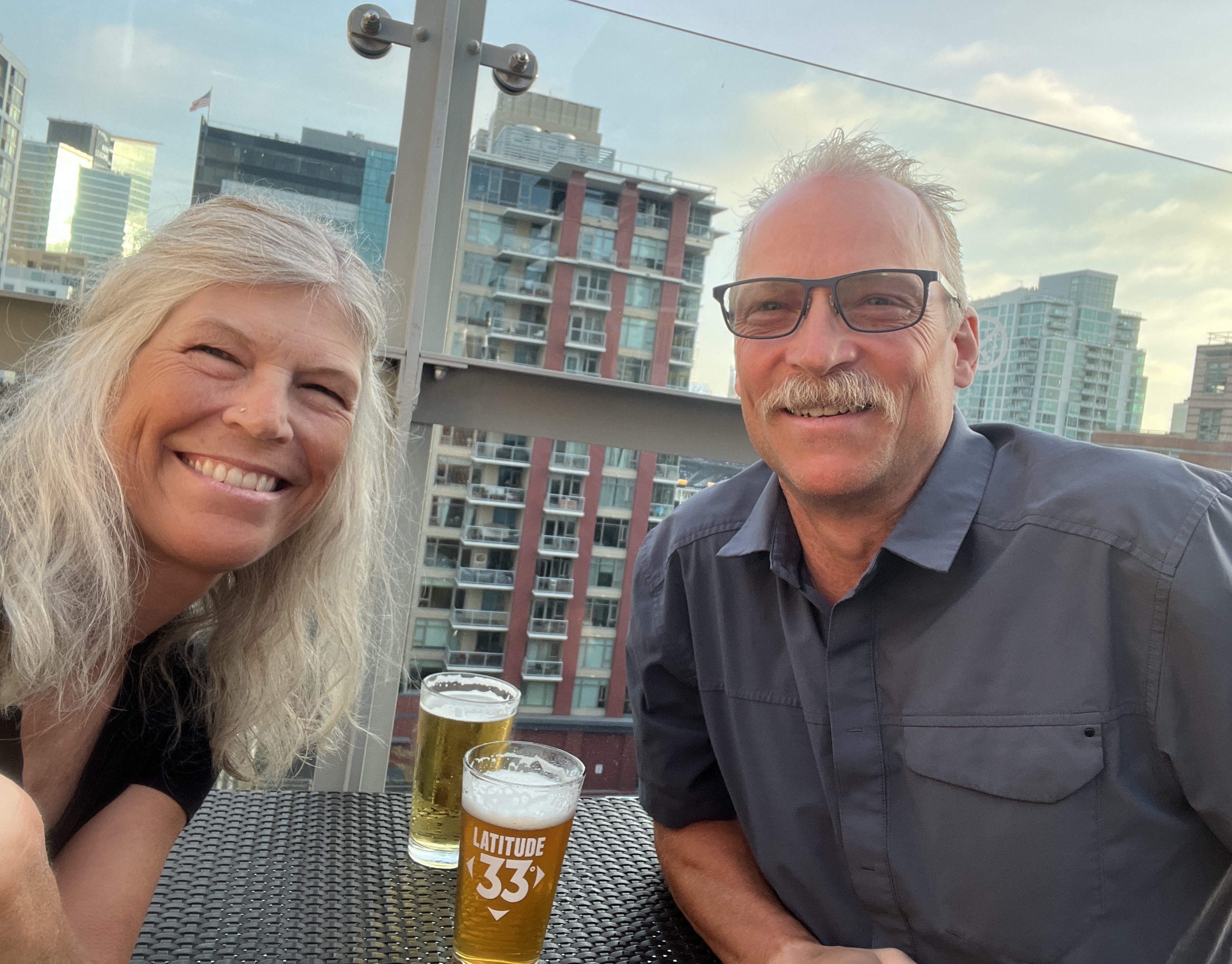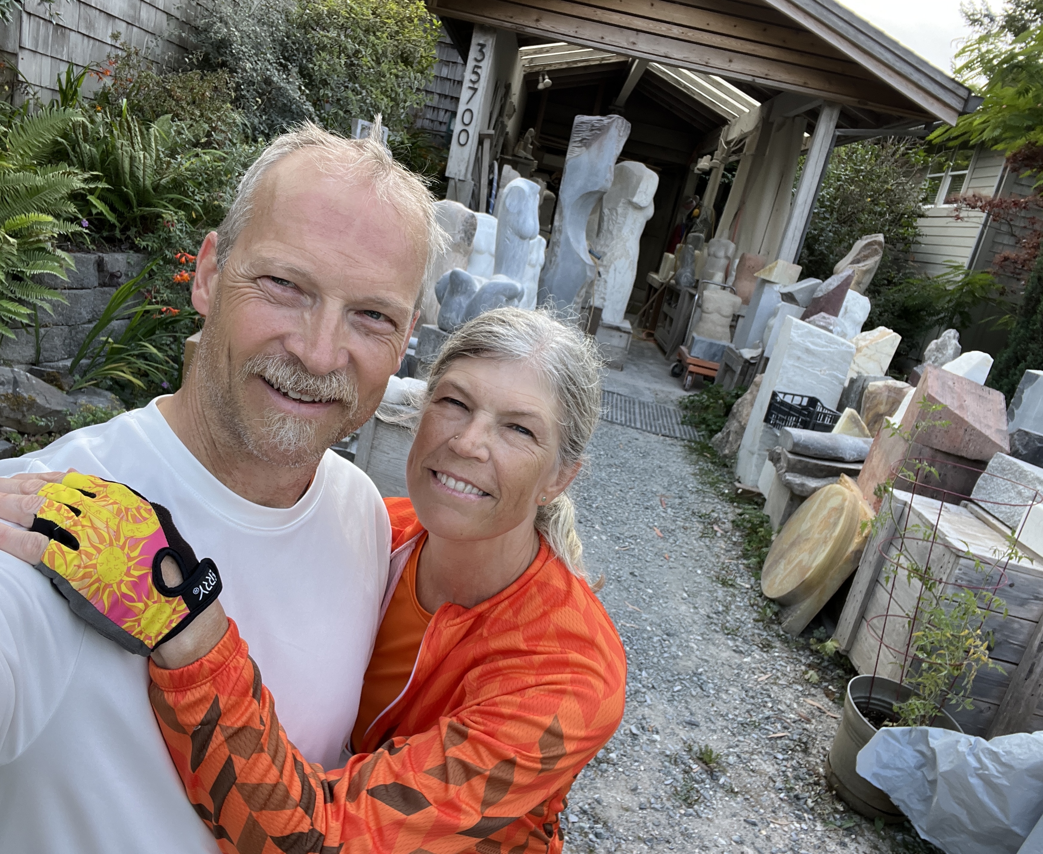 Long Beach to Nehalem, over the Astoria bridge and via Seaside (for brunch) and Canon Beach (visited Miska’s gallery). Passed some elk in Canon Beach (NOT zoomed in)! Surprise cheering squad in Nehalem (Mary and Jens, funny sign above them) and stayed with artist friend MJ.