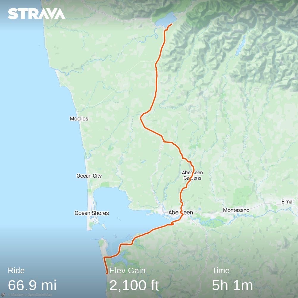 Lake Quinault to Grayland. Avoided Hoquiam but had to ride through part of Aberdeen and across a busy bridge. Stayed in Grayland at Arena del Mar.