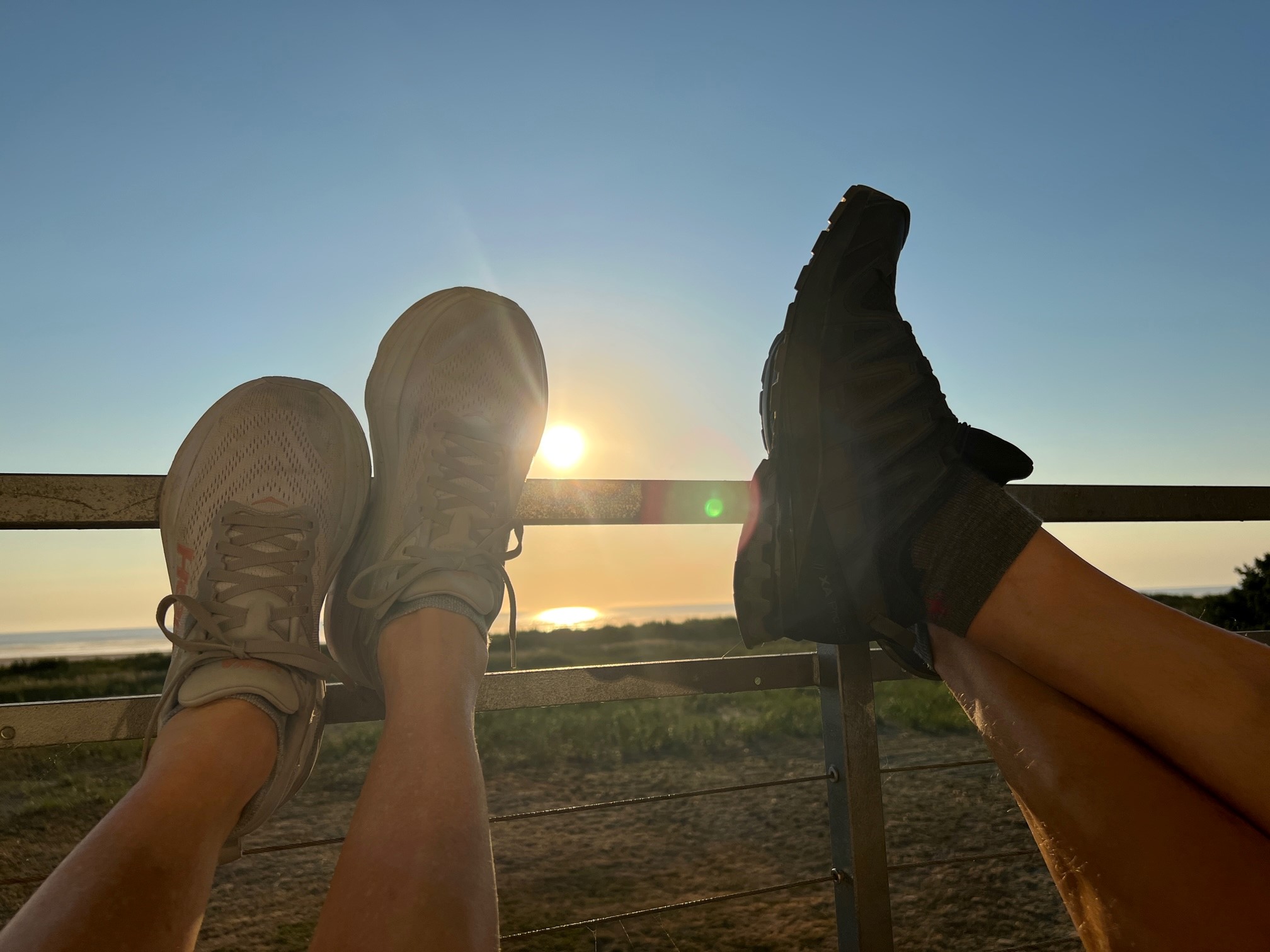 Breakfast at our St Orres Cabin. Ocean views, more climbs, and Andrew from Ohio. If you zoom in on the second to last picture, you can see both kayakers below and paragliders above!