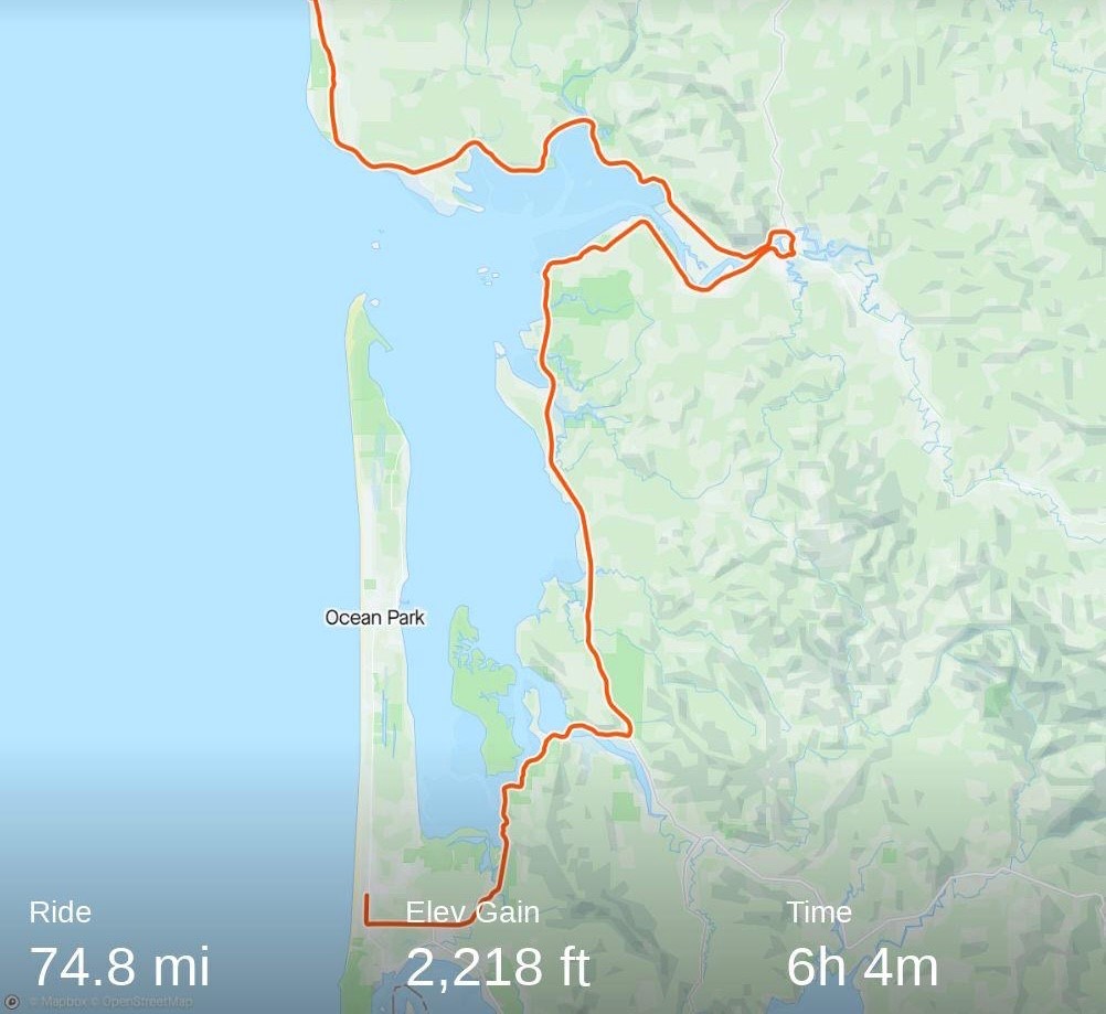 Grayland to Long Beach. Late breakfast in Raymond (after 28 miles). Ending in Long Beach with Zack (and Mya).