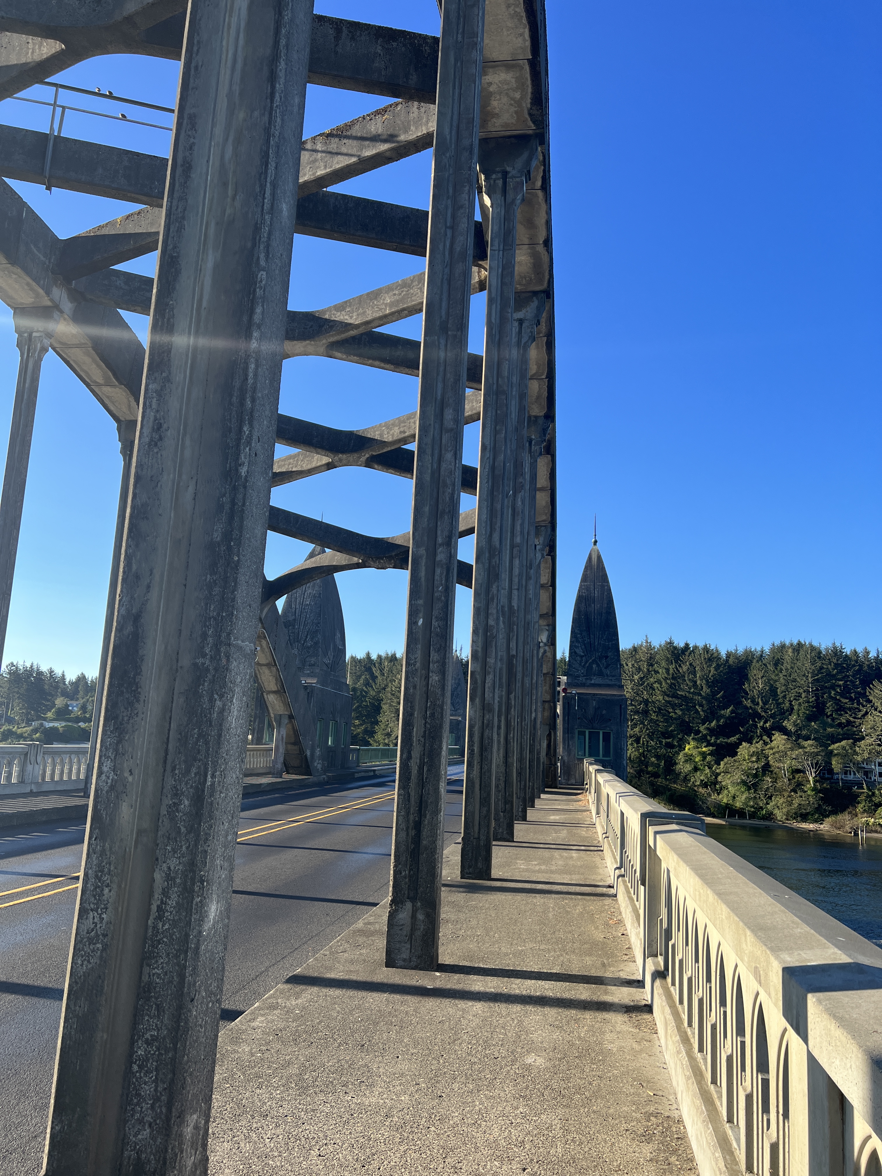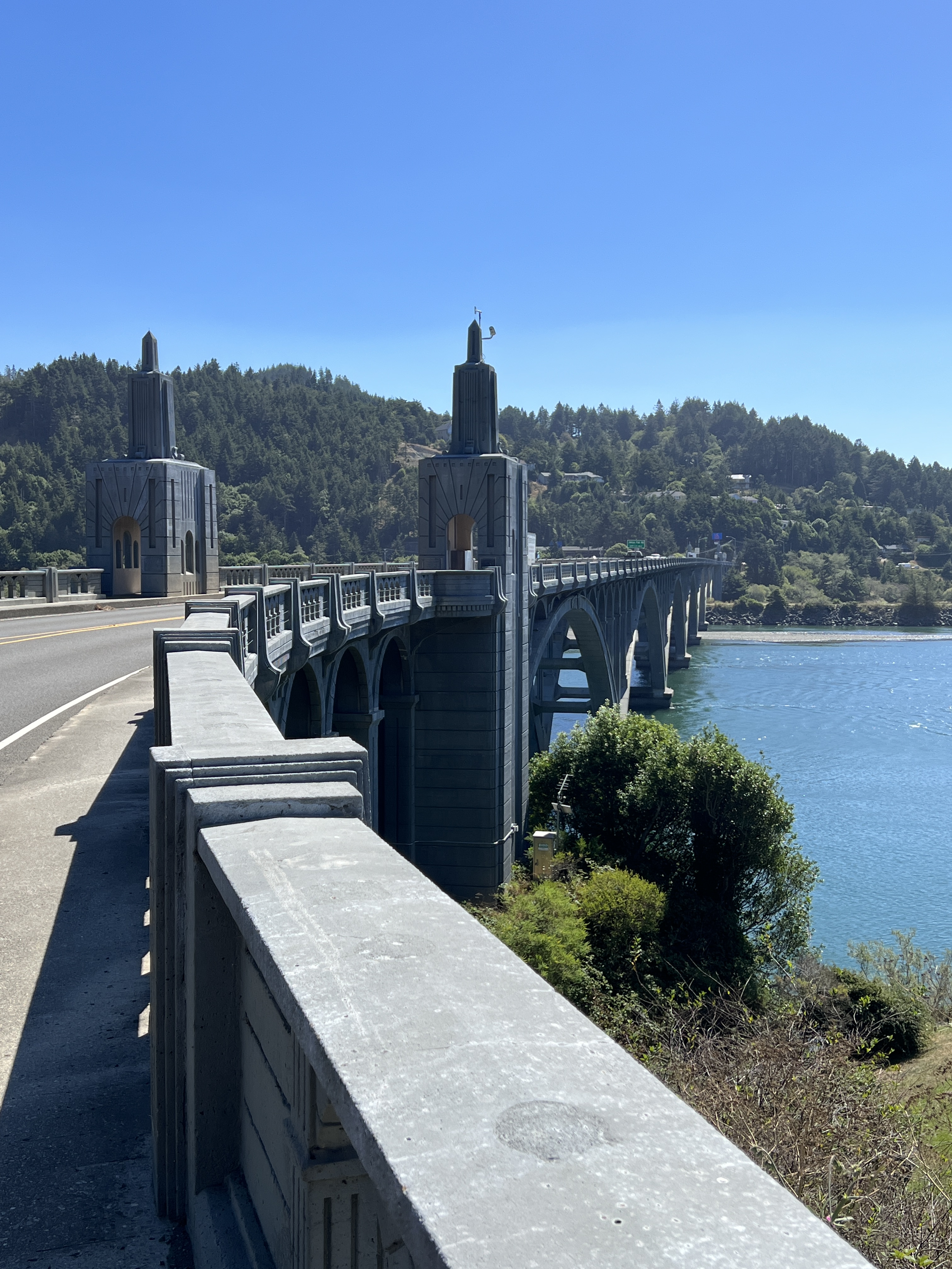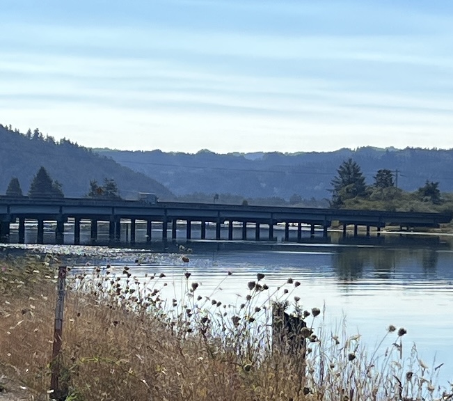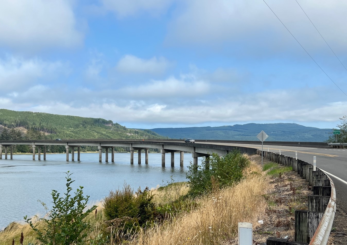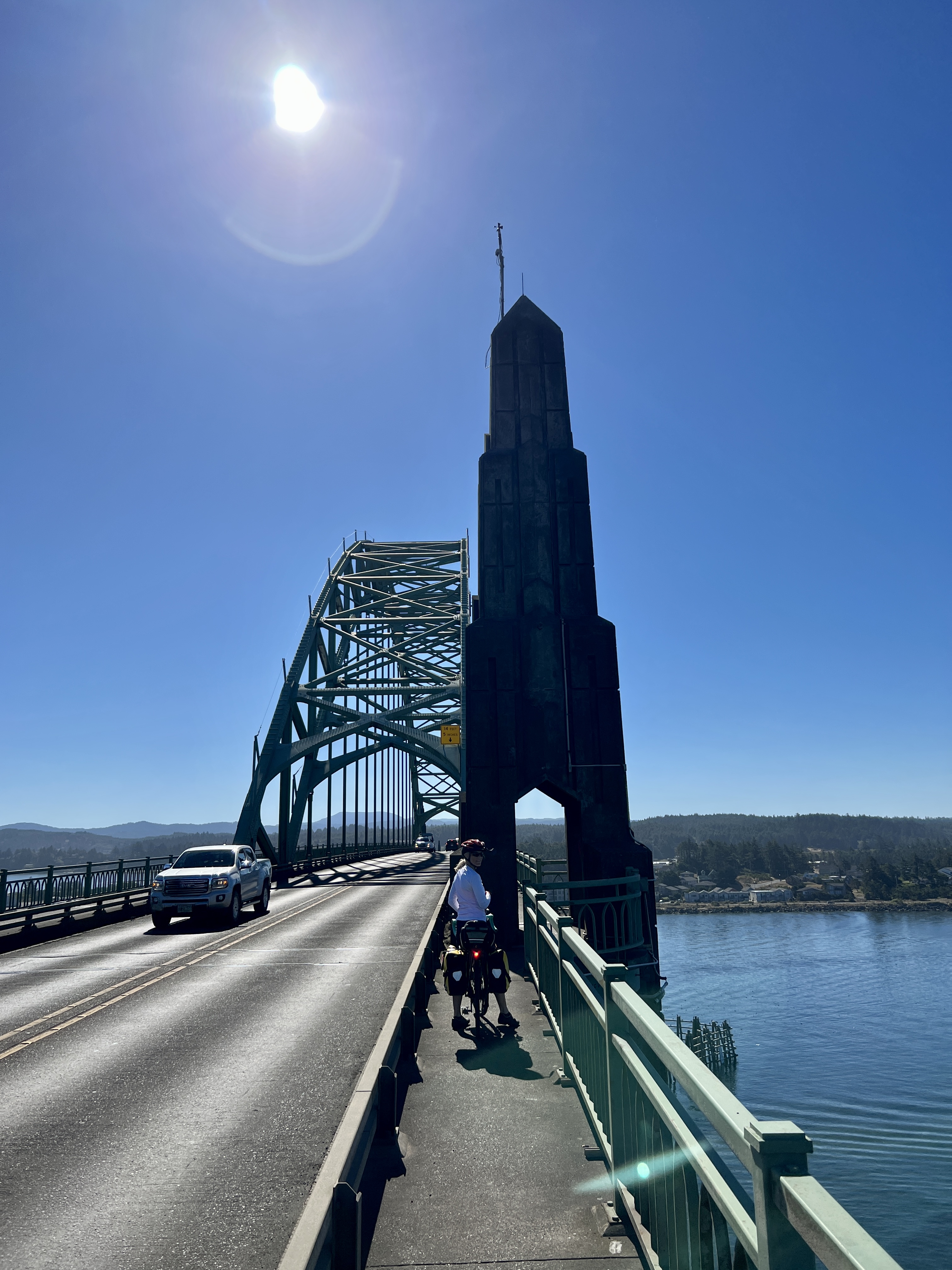 Florence to Bandon. Bridges and logging trucks on 101 then hills and more bridges on back roads.