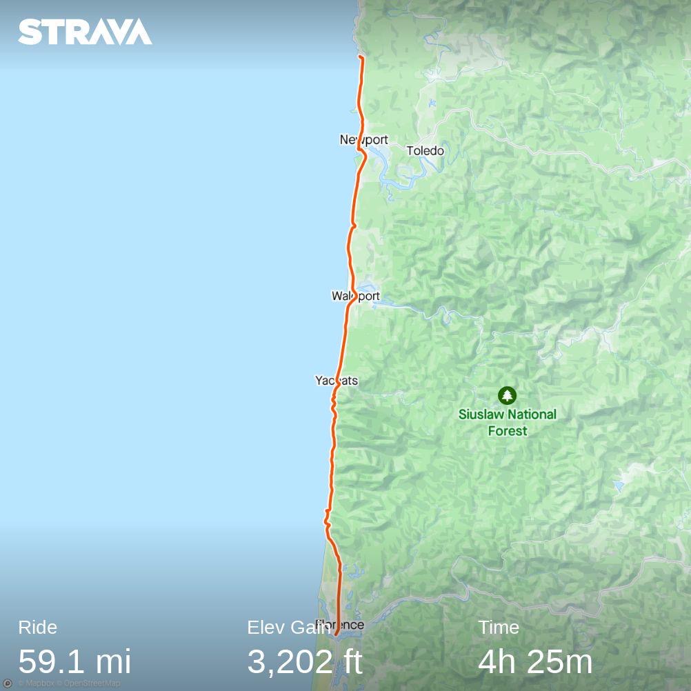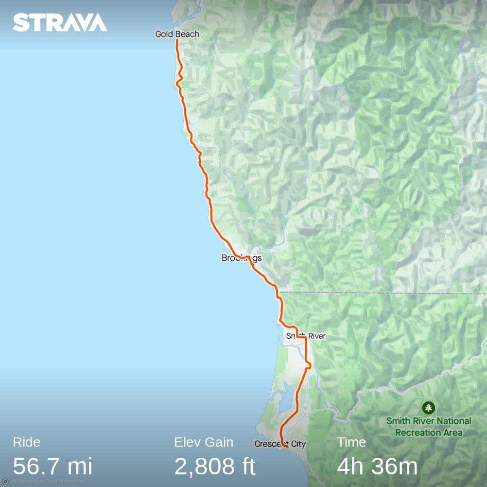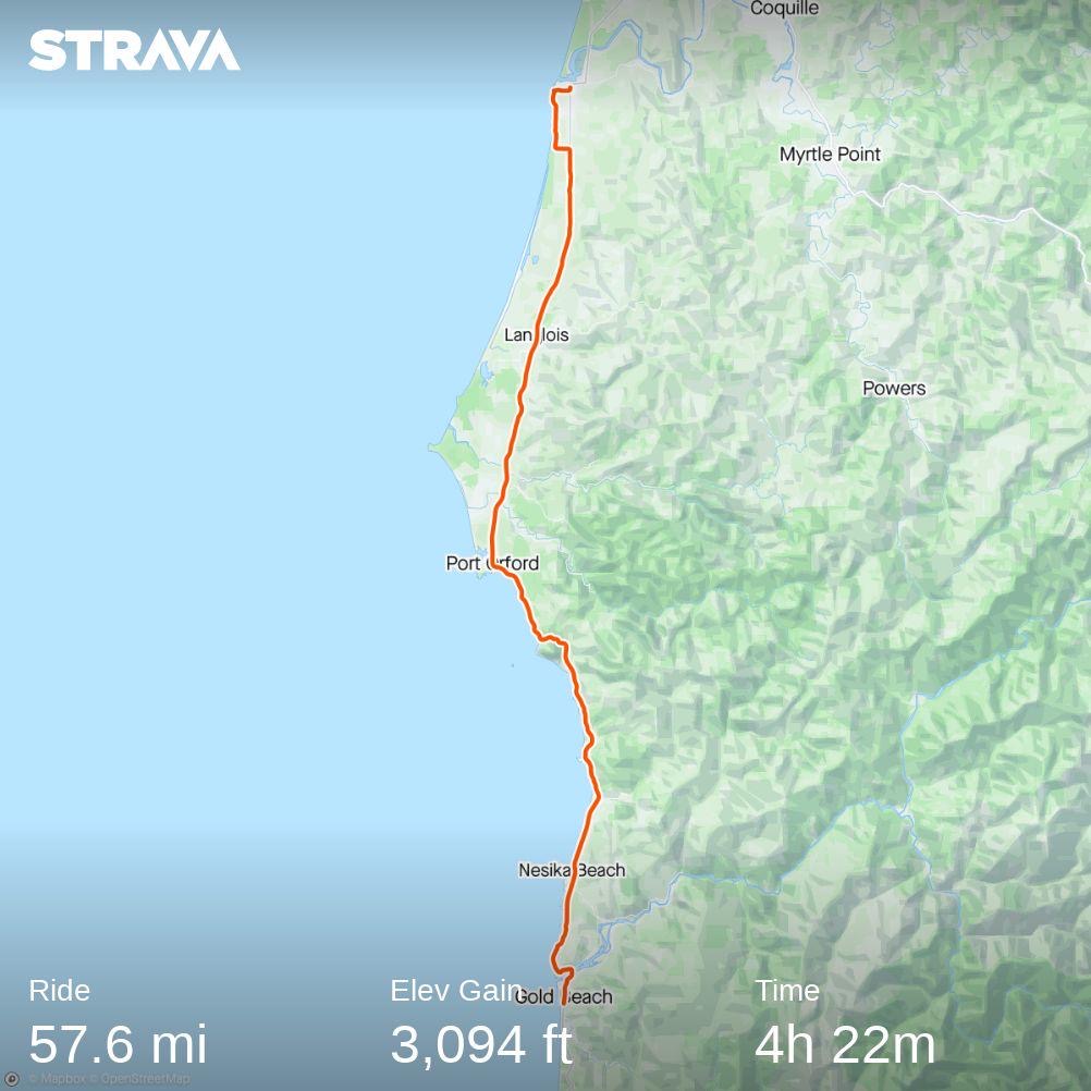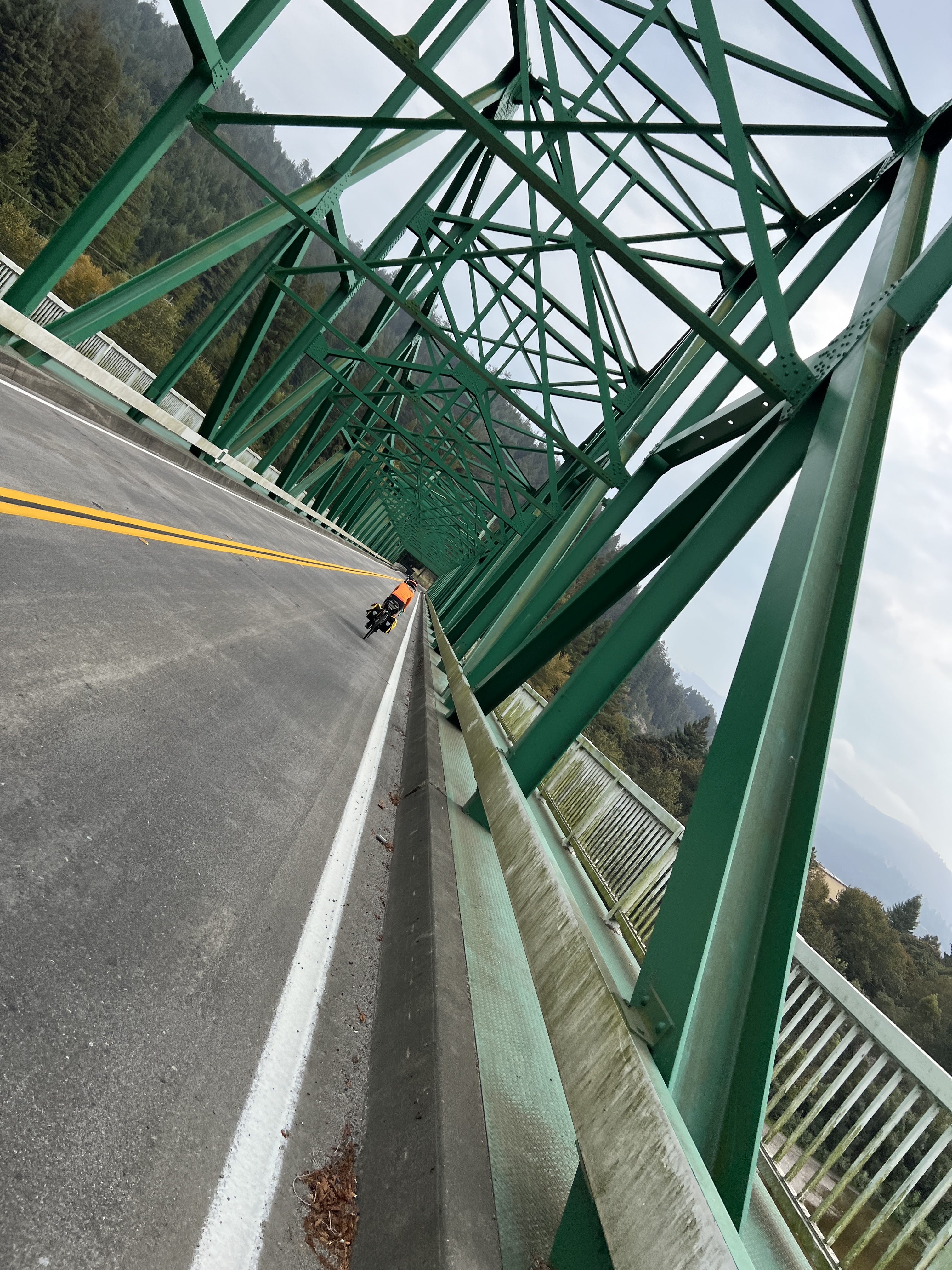 Florence to Bandon. Bridges and logging trucks on 101 then hills and more bridges on back roads.