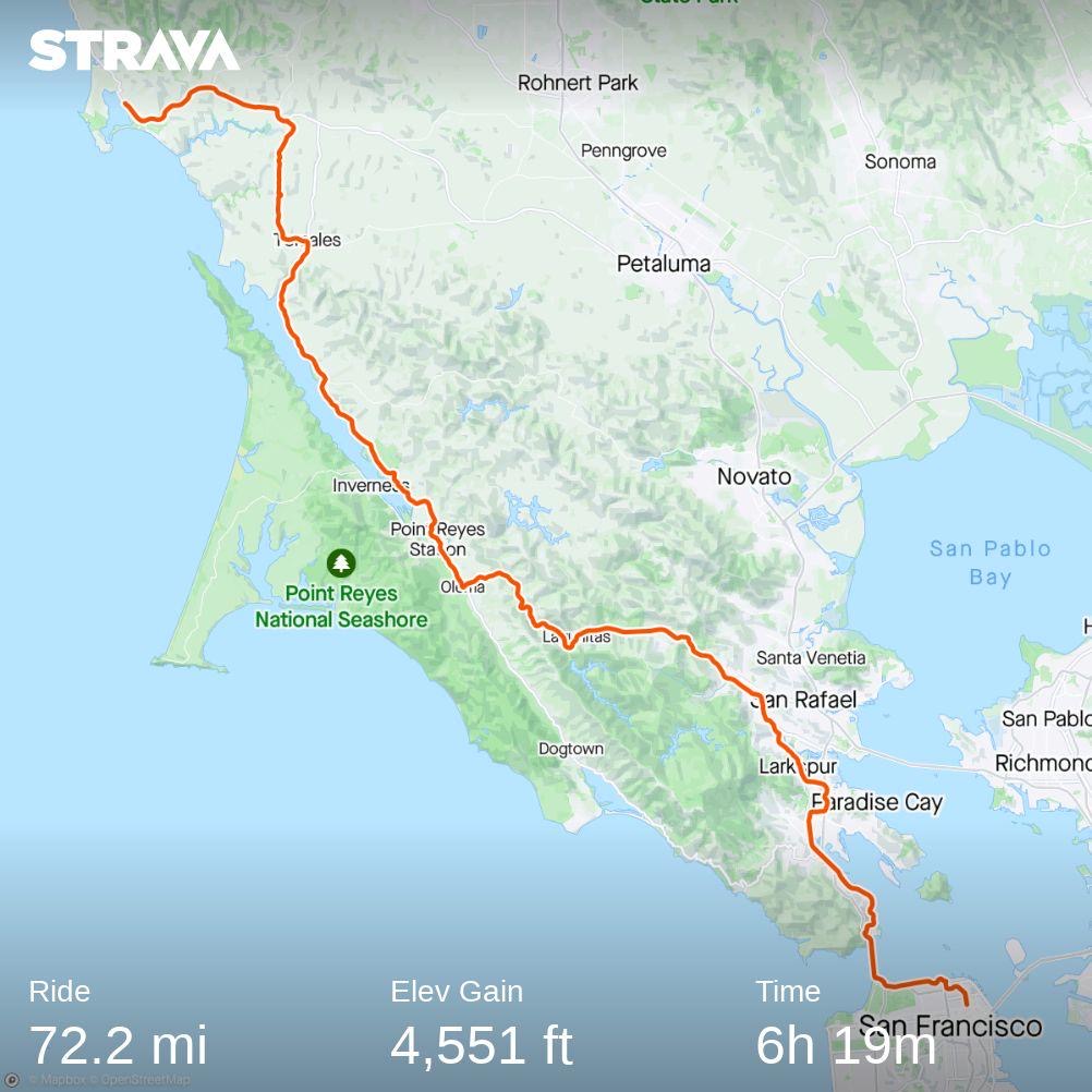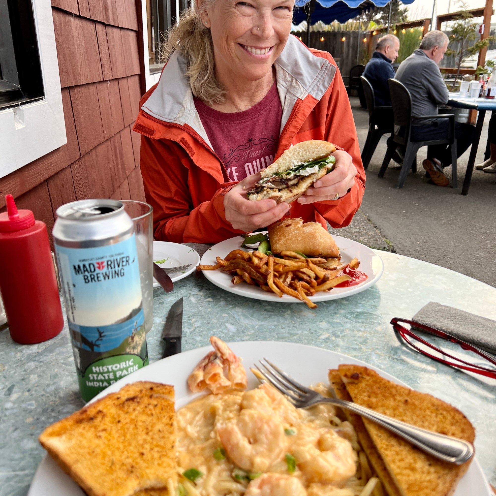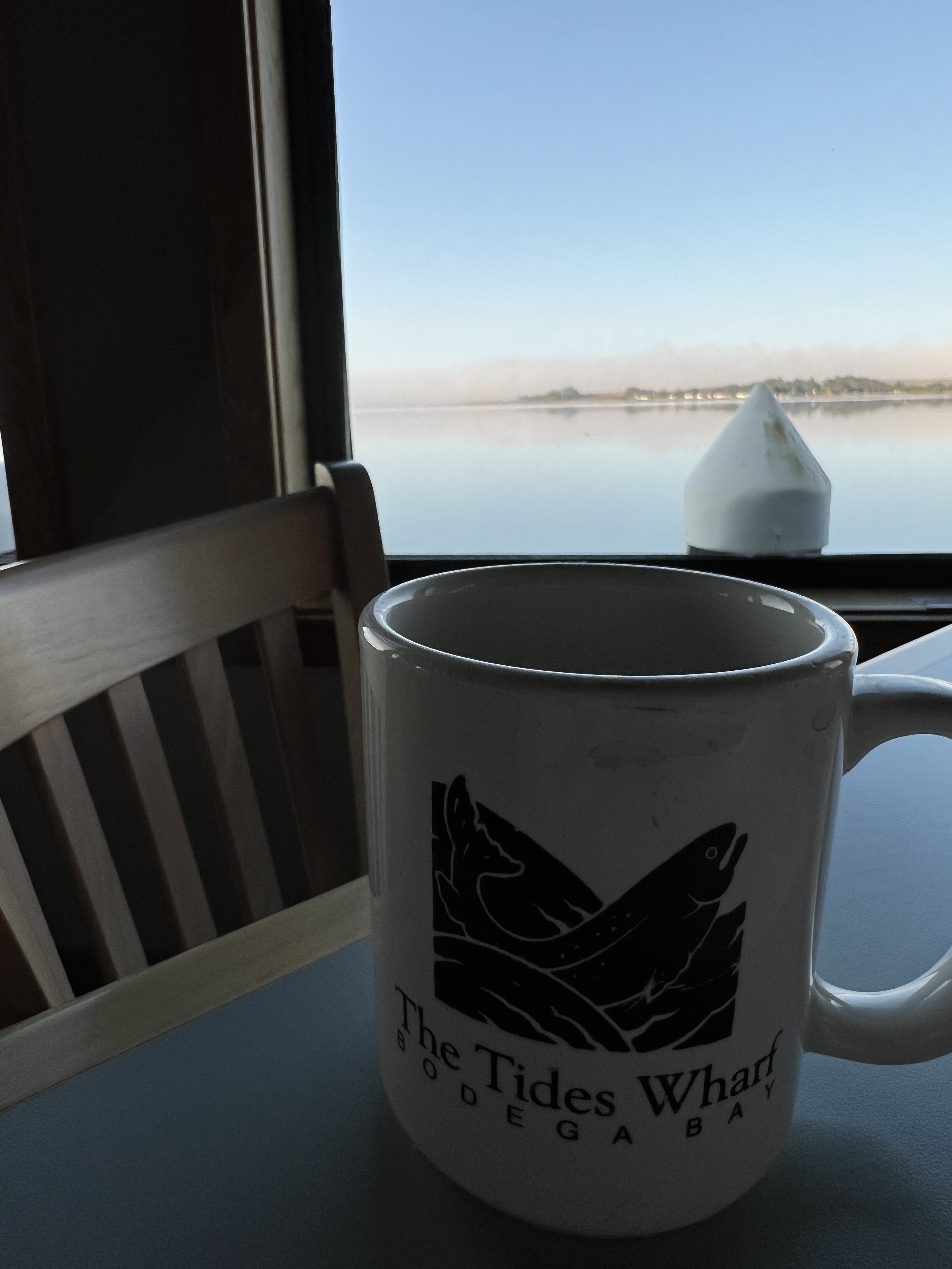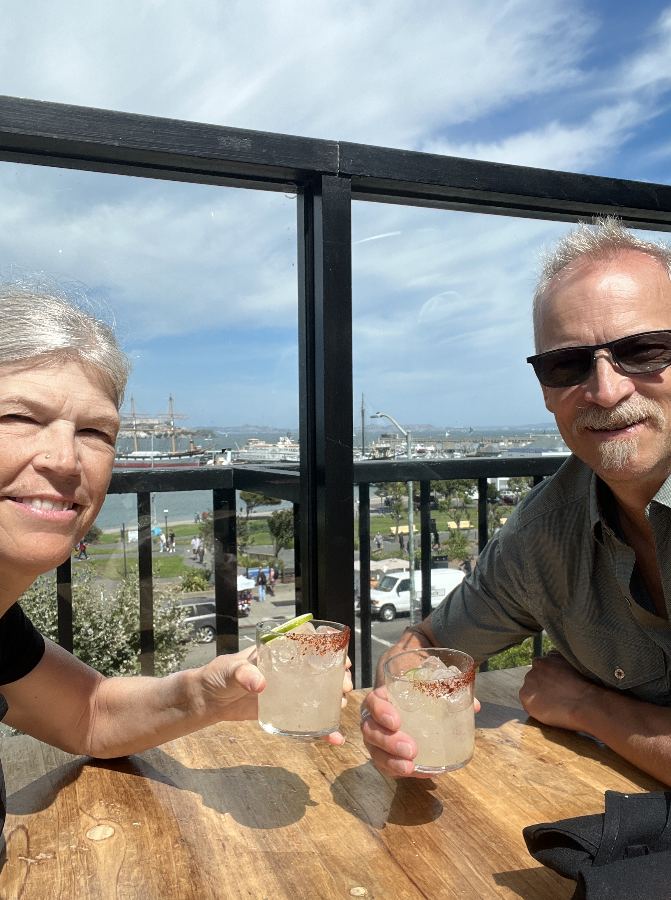Long, lovely day – lots of photos! Bodega Bay breakfast with a view. Off roads and trails and Tomales Bay. Golden Gate Bridge! Lombardy Street, celebration drink.