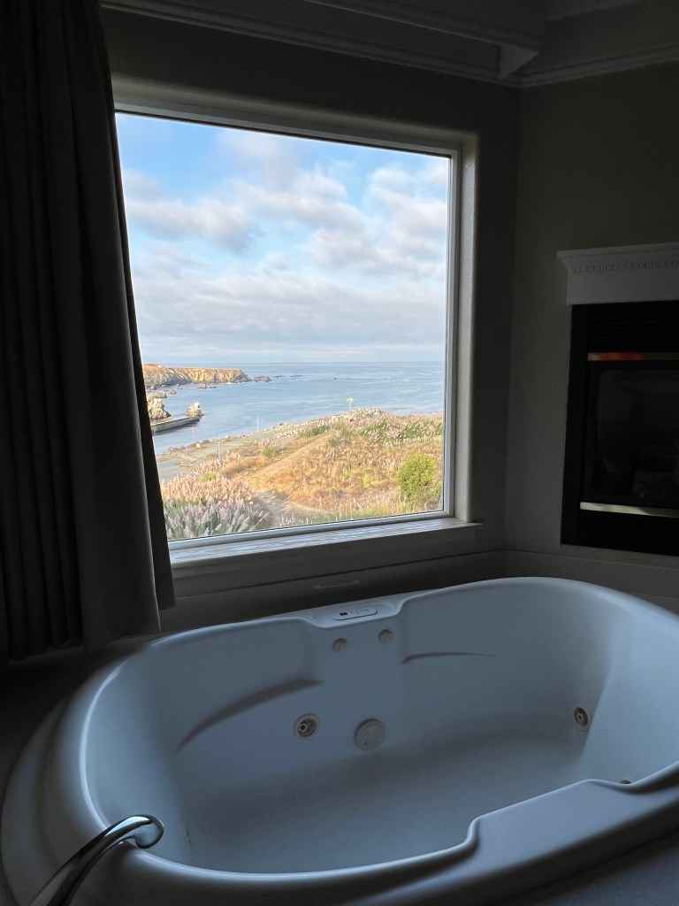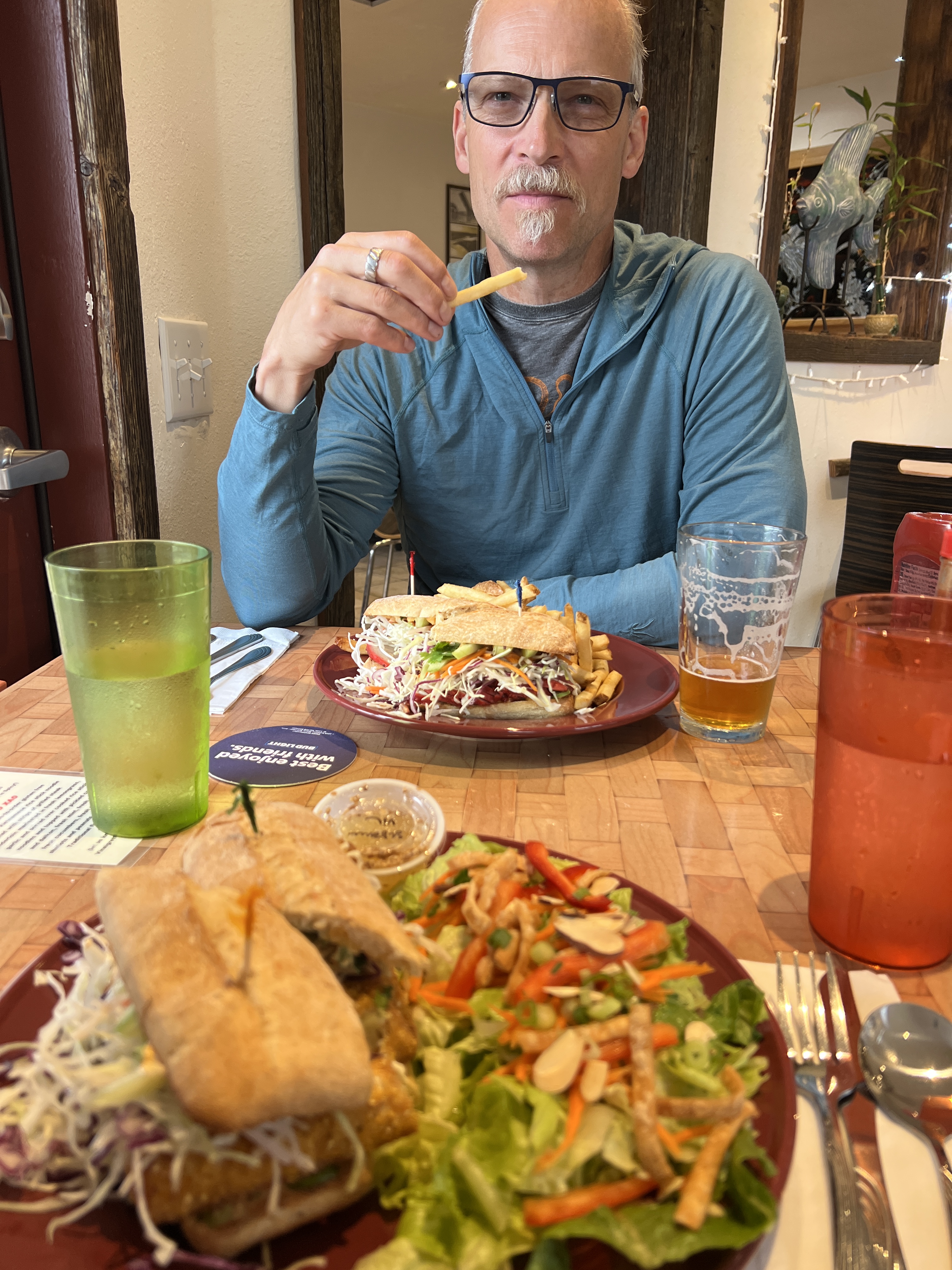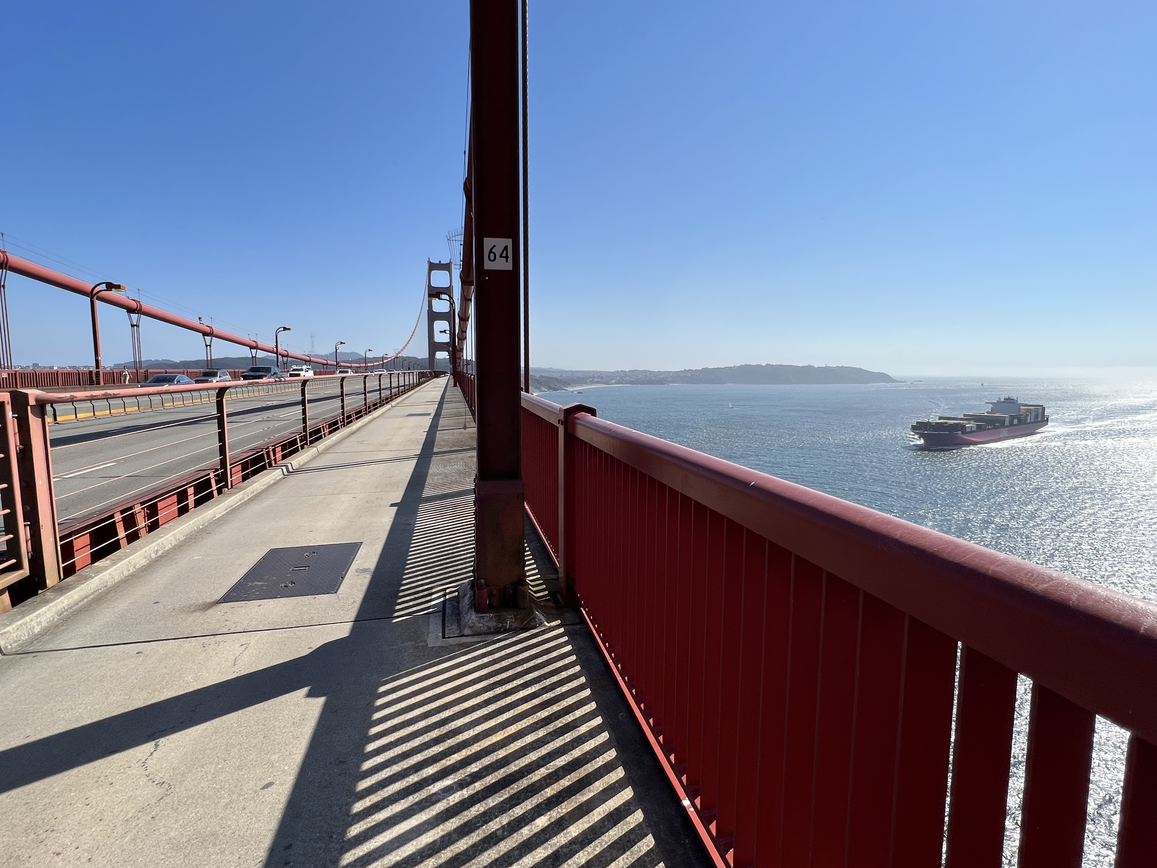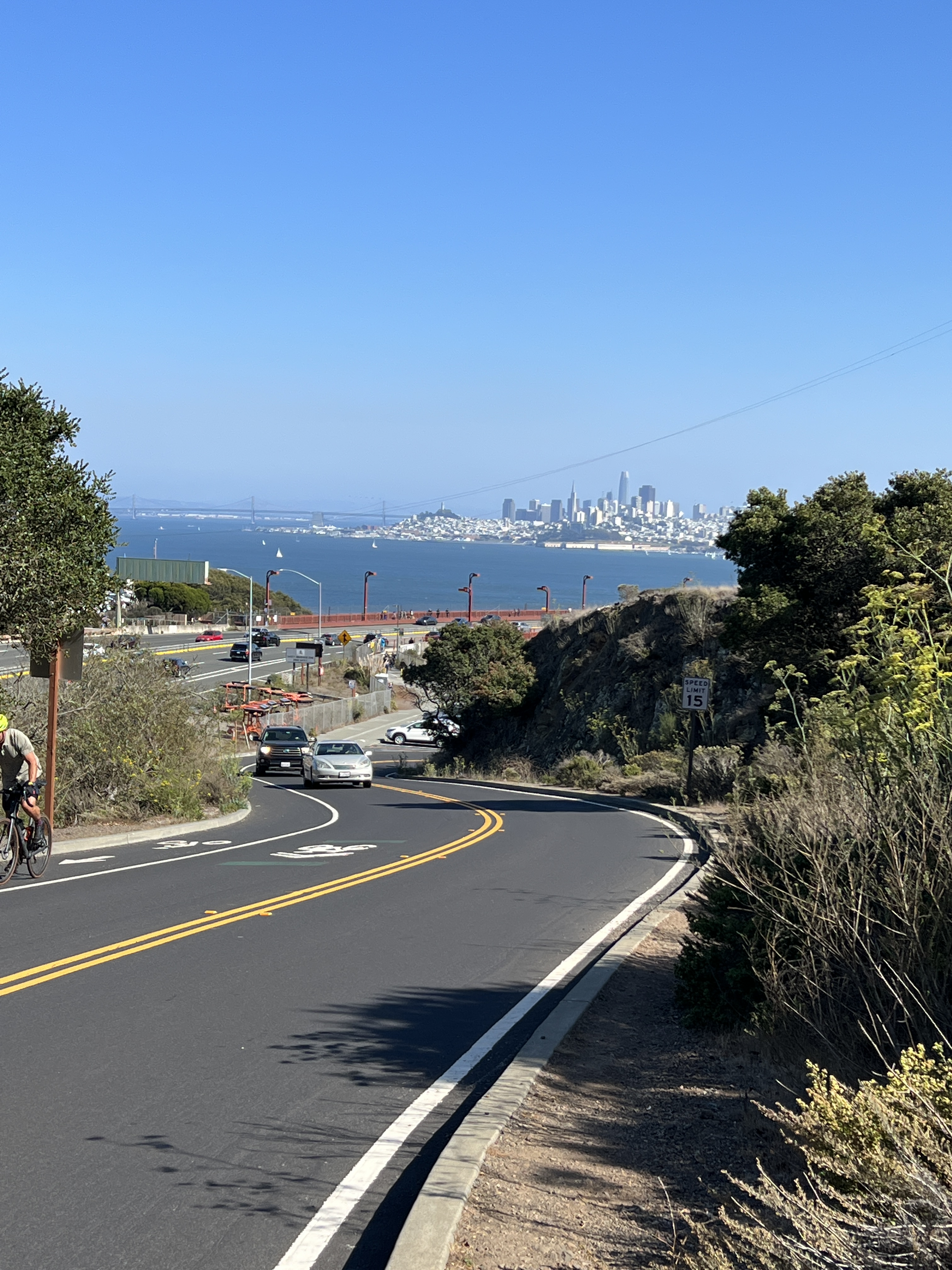 Long, lovely day – lots of photos! Bodega Bay breakfast with a view. Off roads and trails and Tomales Bay. Golden Gate Bridge! Lombardy Street, celebration drink.