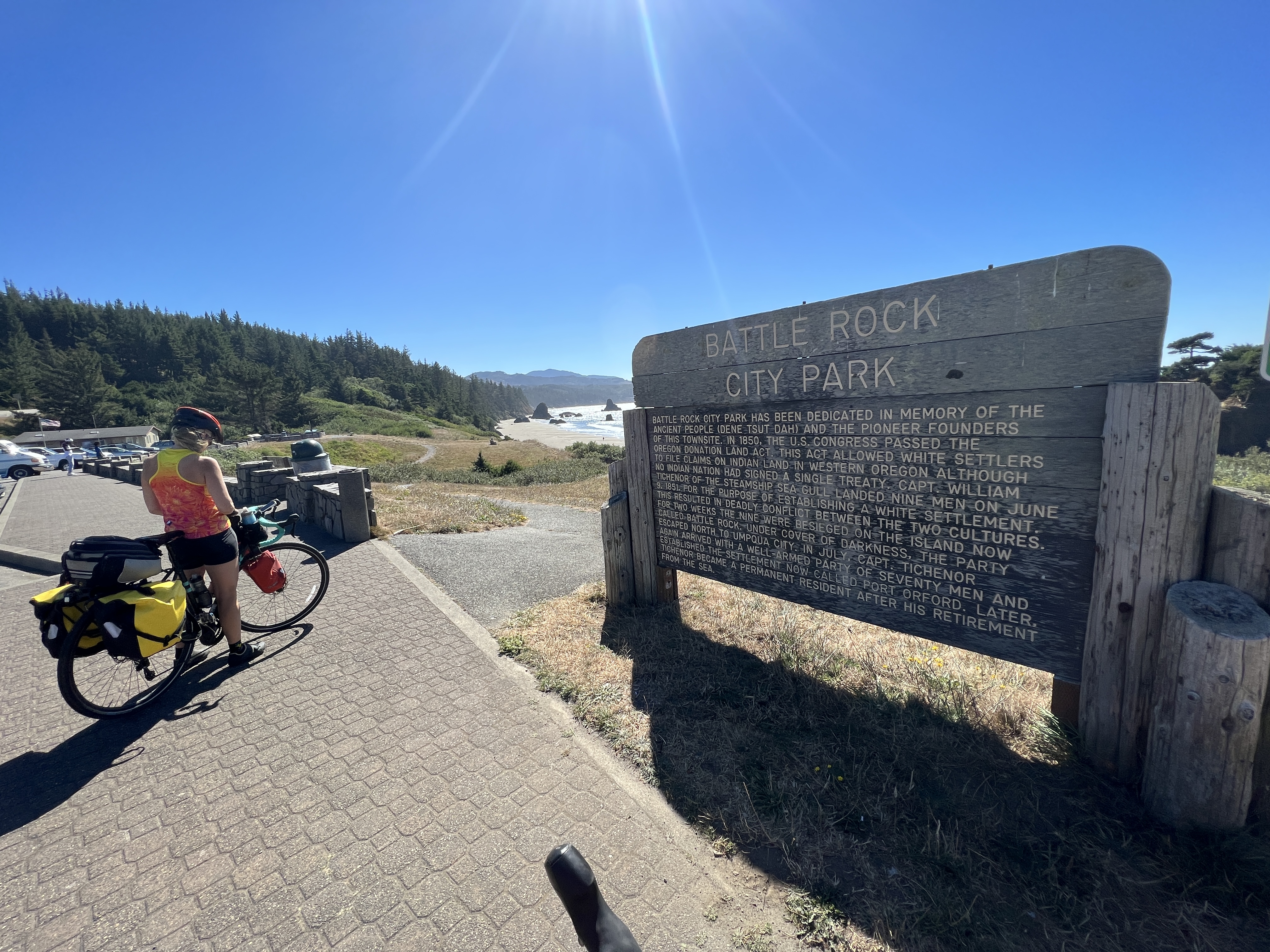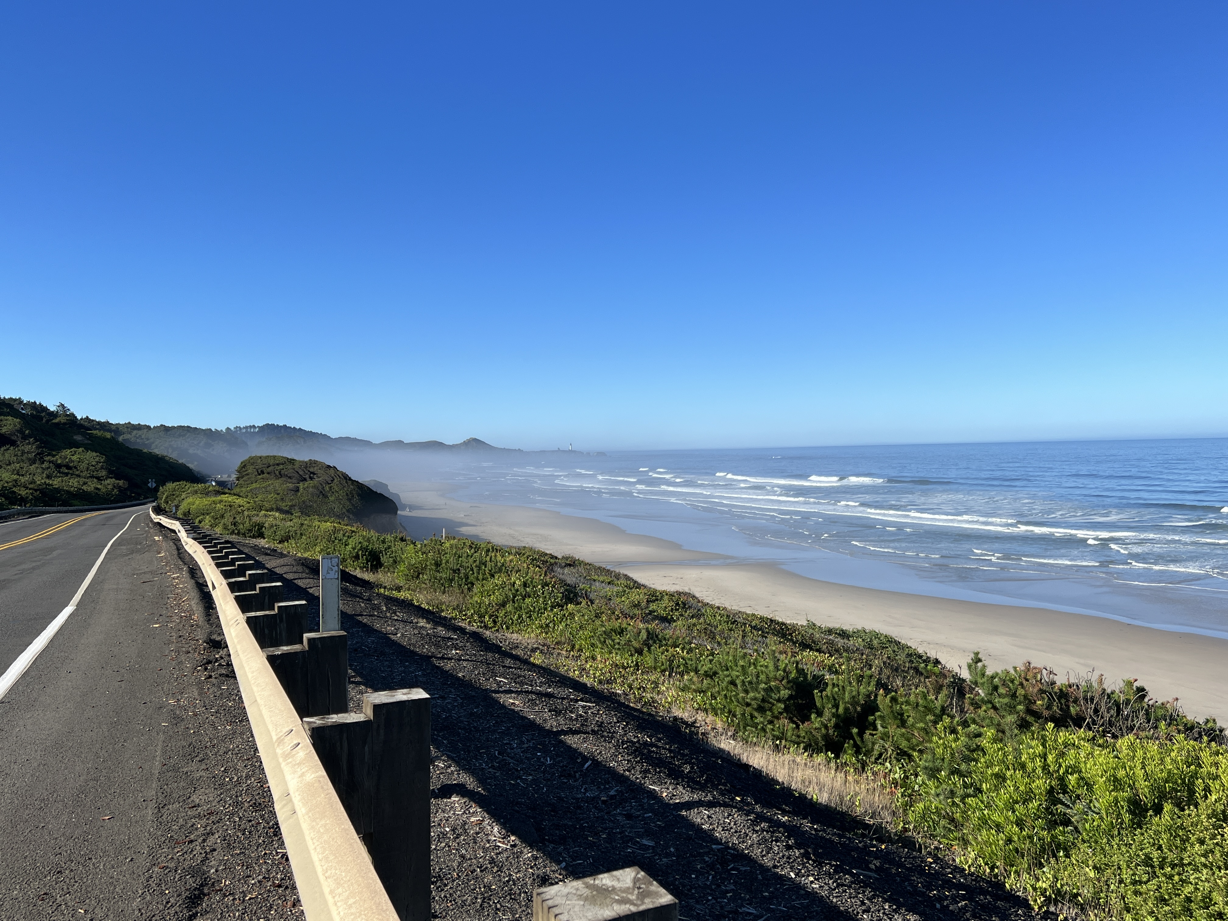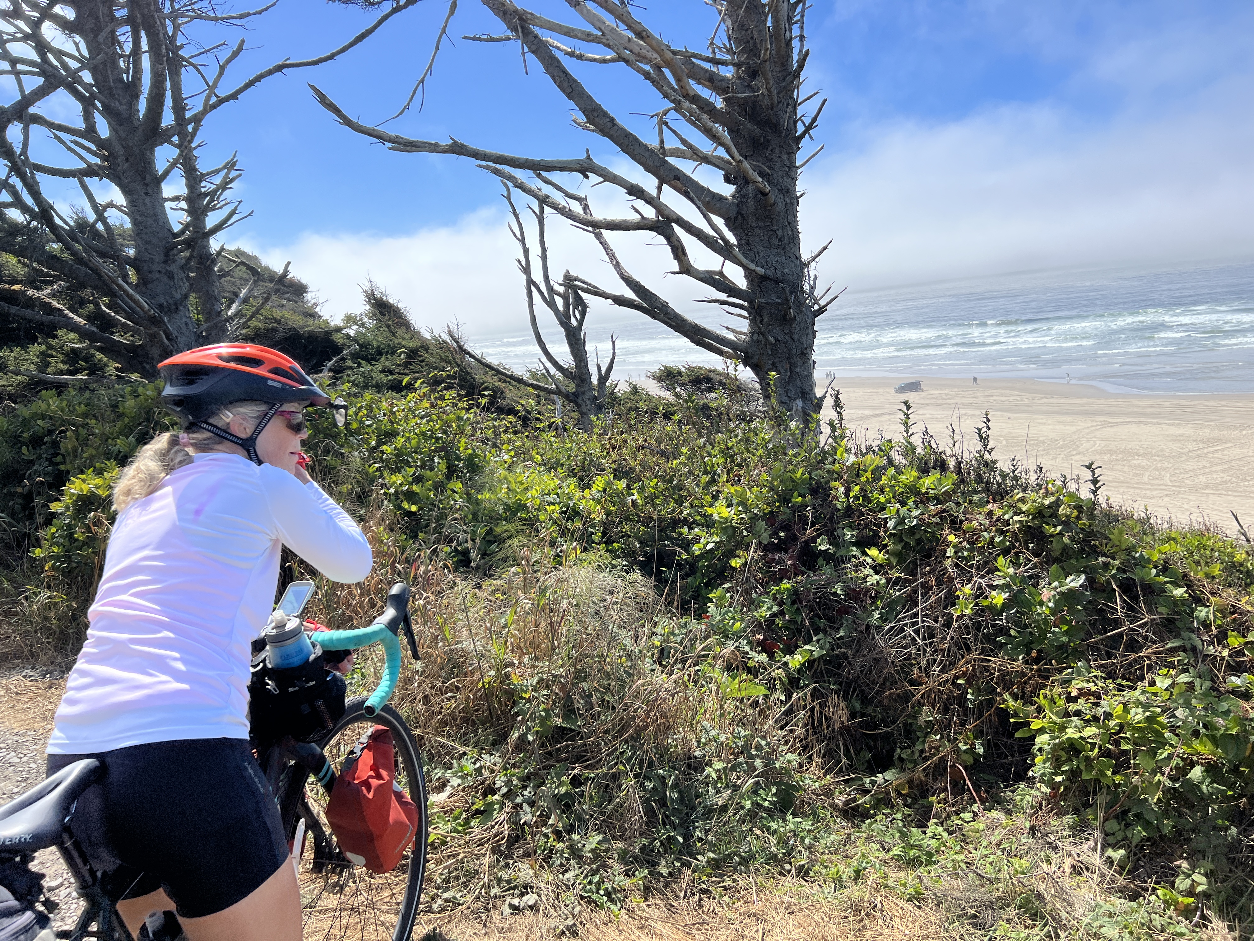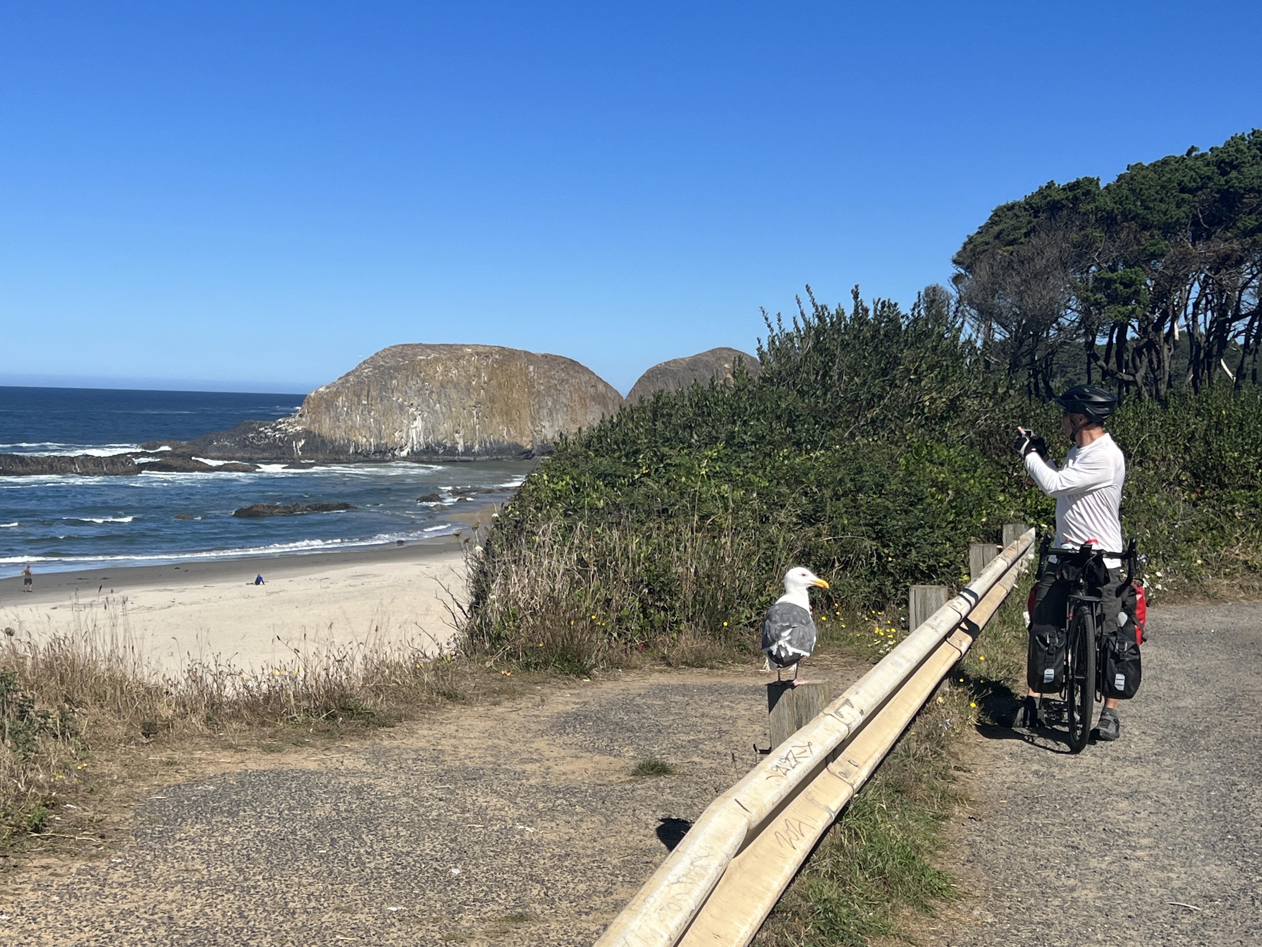 Pacific City to Otter Rock. Riding by Devil’s Lake. Breakfast at Nelscott Cafe in Lincoln City. Big climb on Otter Rock Loop. Devil’s Punchbowl.