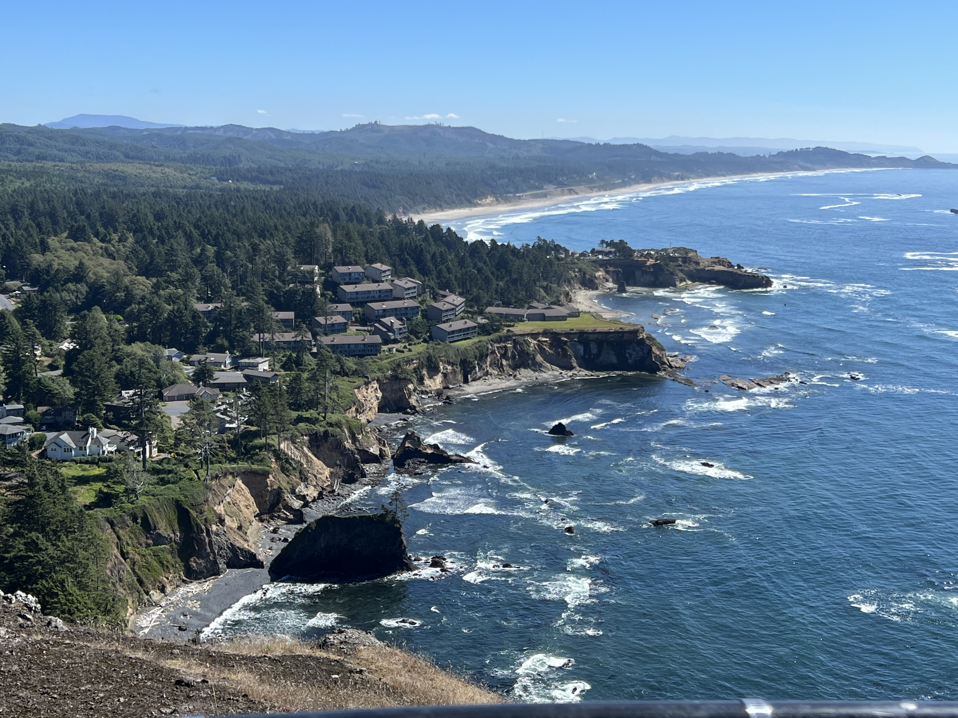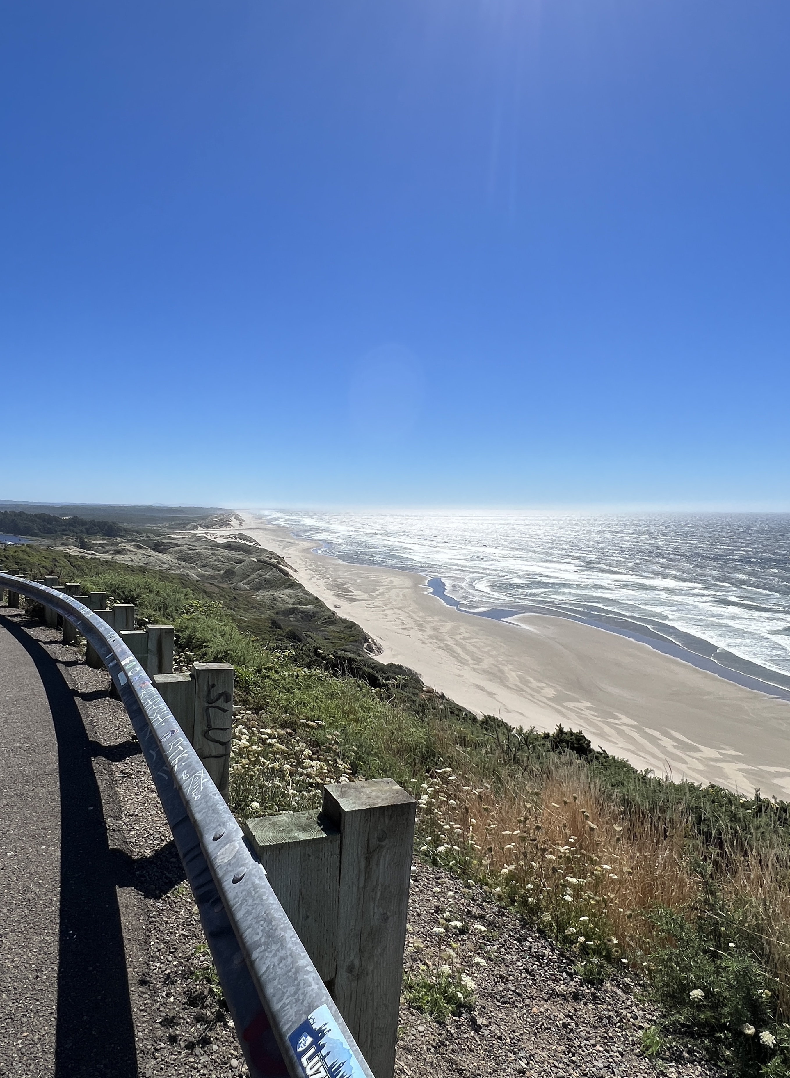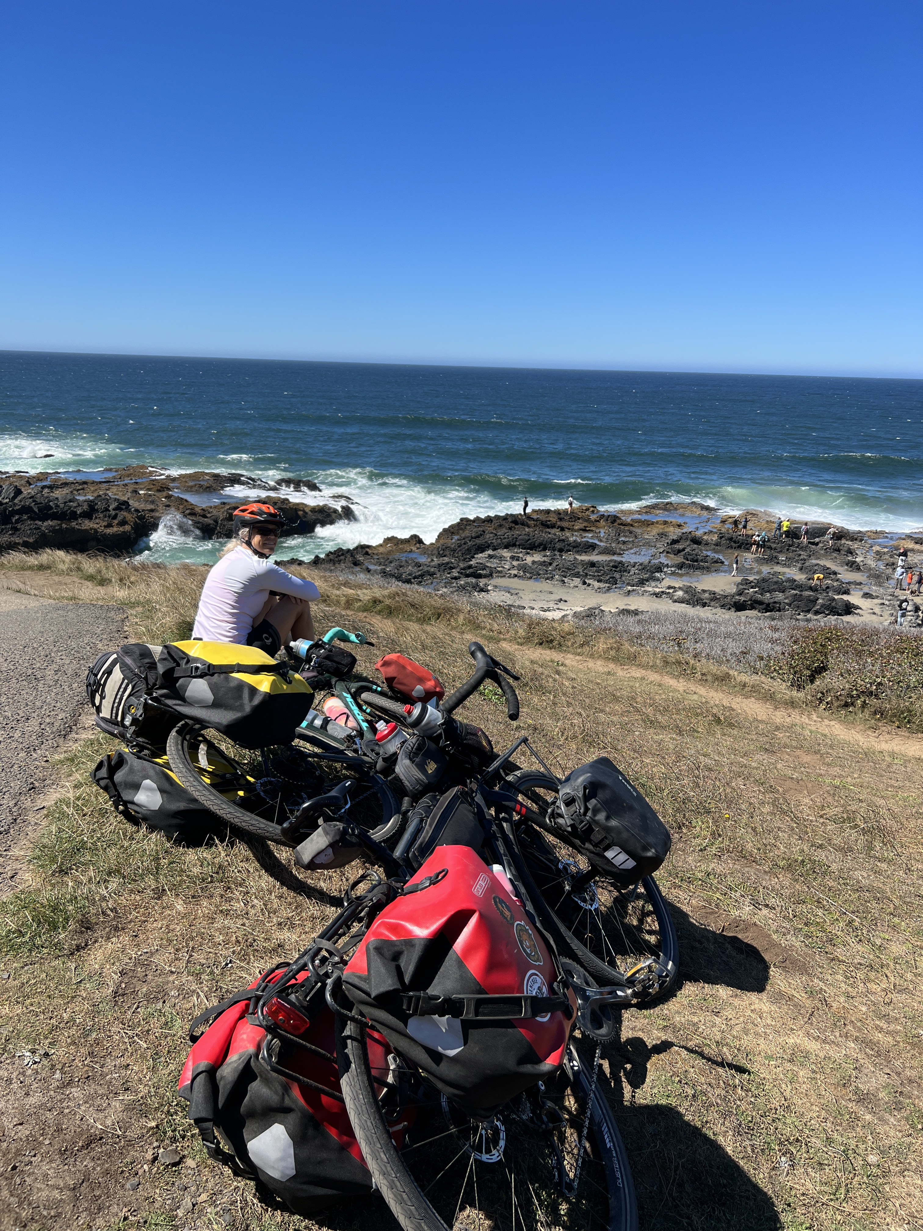 Pacific City to Otter Rock. Riding by Devil’s Lake. Breakfast at Nelscott Cafe in Lincoln City. Big climb on Otter Rock Loop. Devil’s Punchbowl.