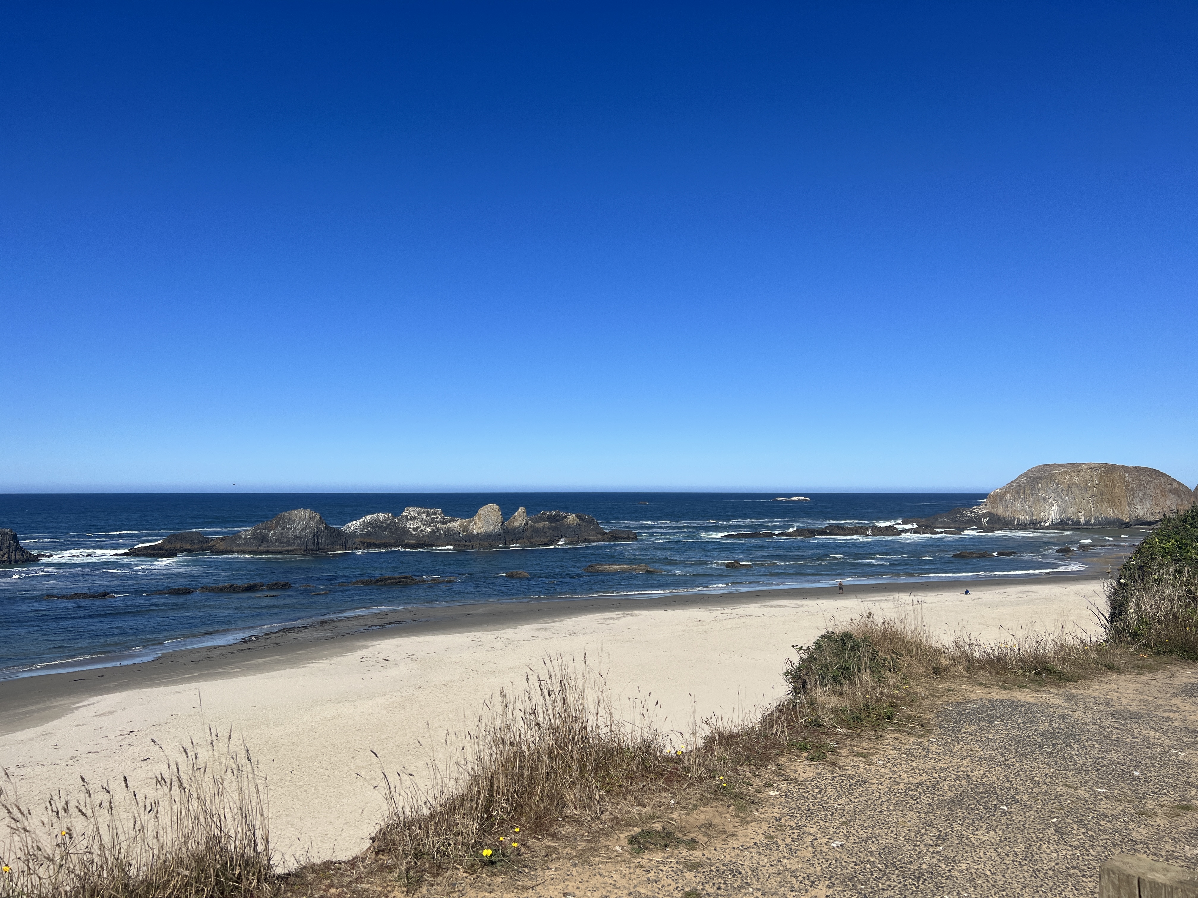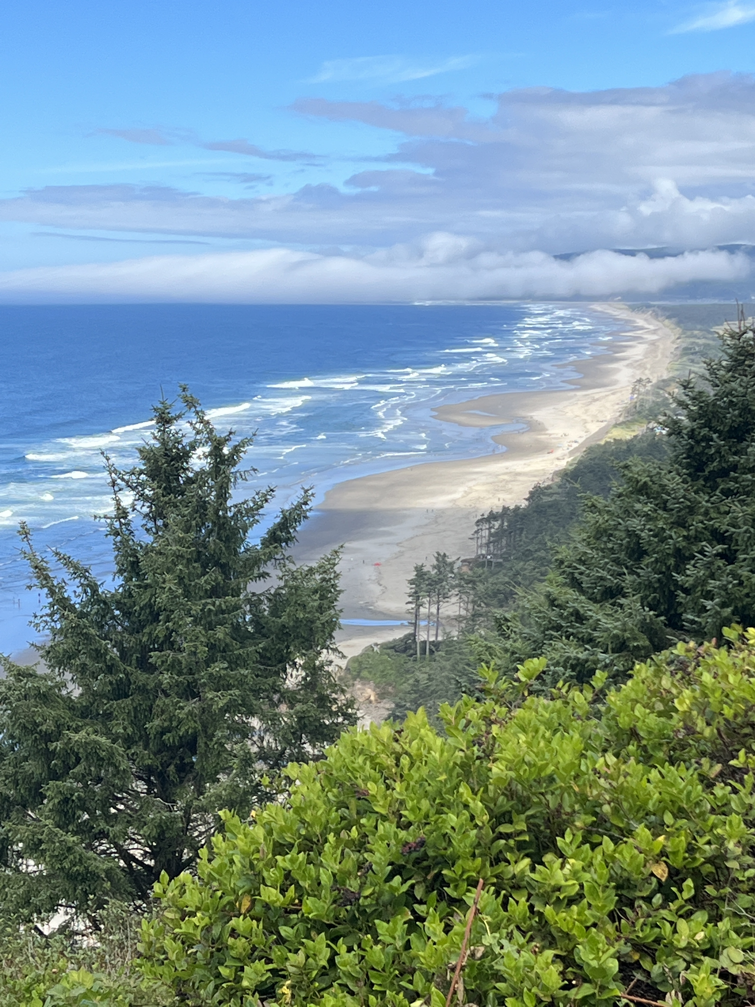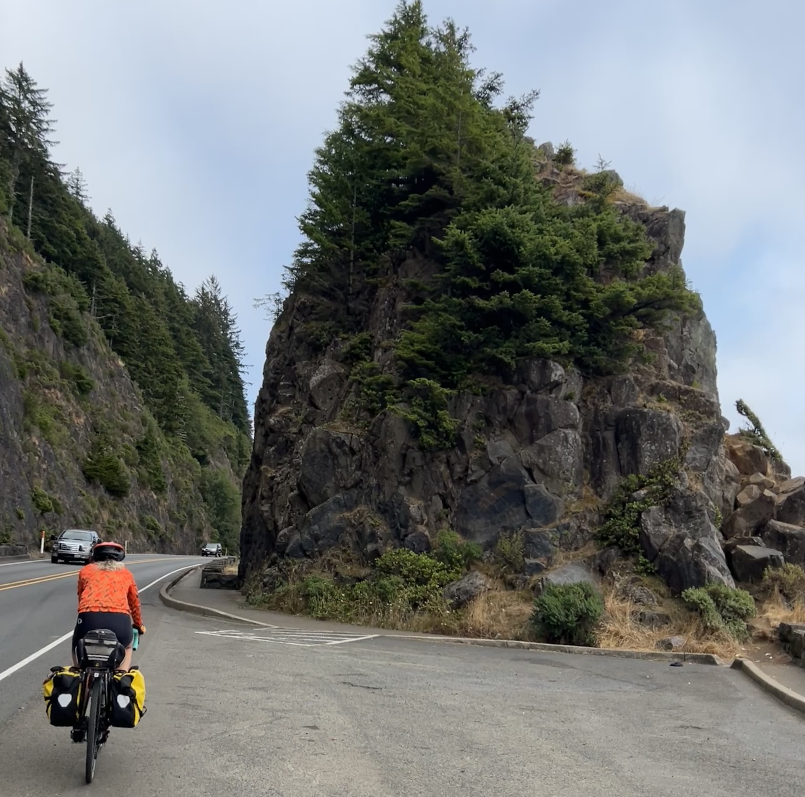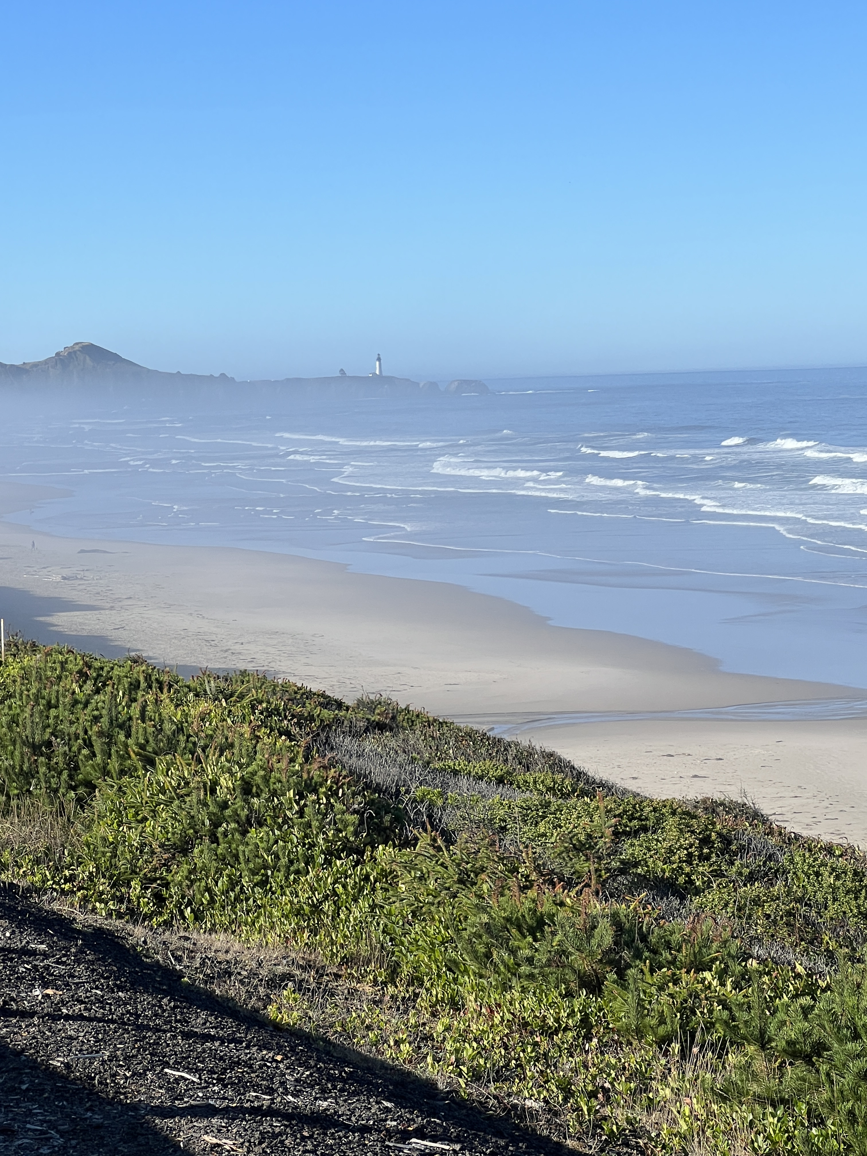 Pacific City to Otter Rock. Riding by Devil’s Lake. Breakfast at Nelscott Cafe in Lincoln City. Big climb on Otter Rock Loop. Devil’s Punchbowl.
