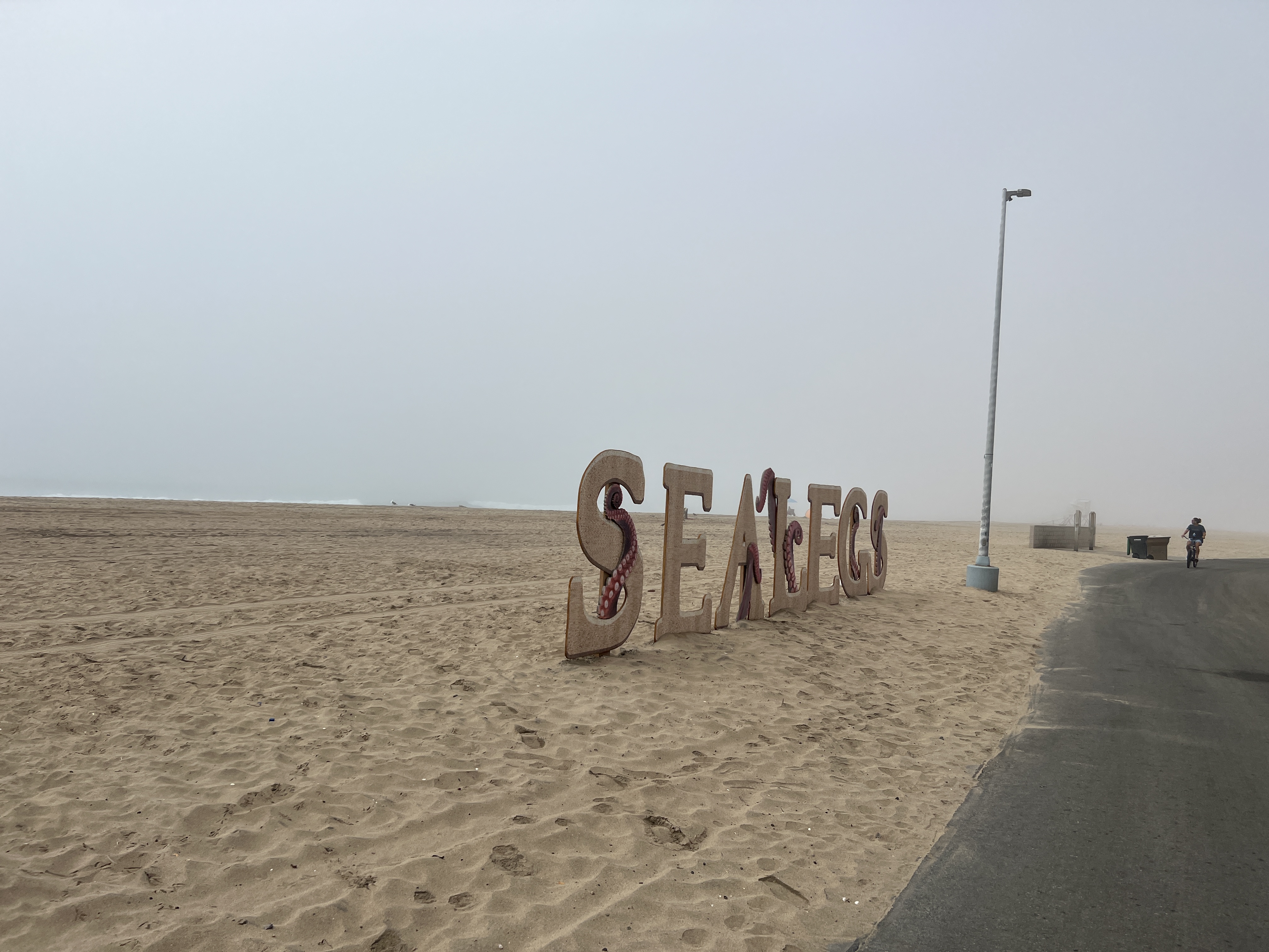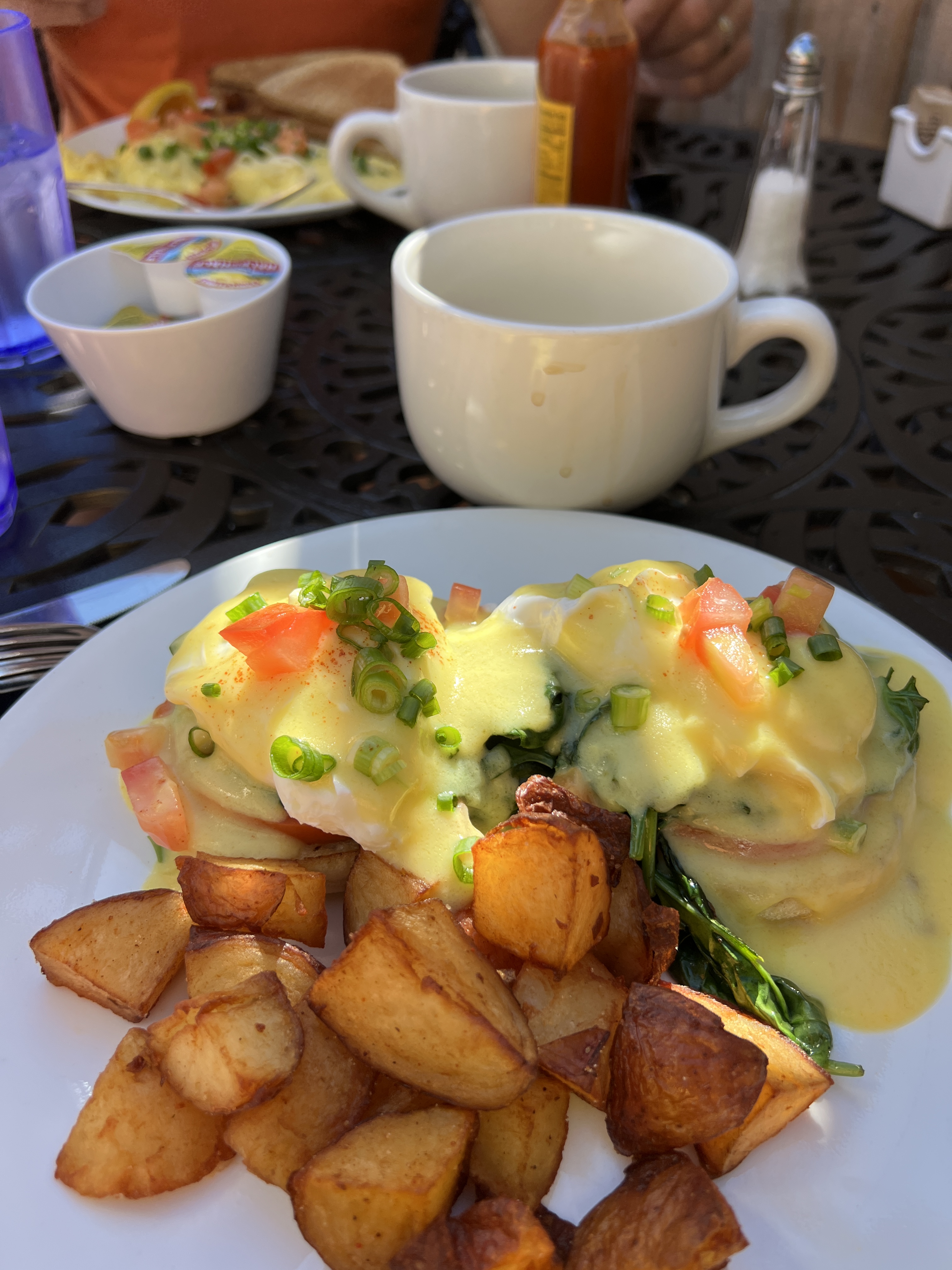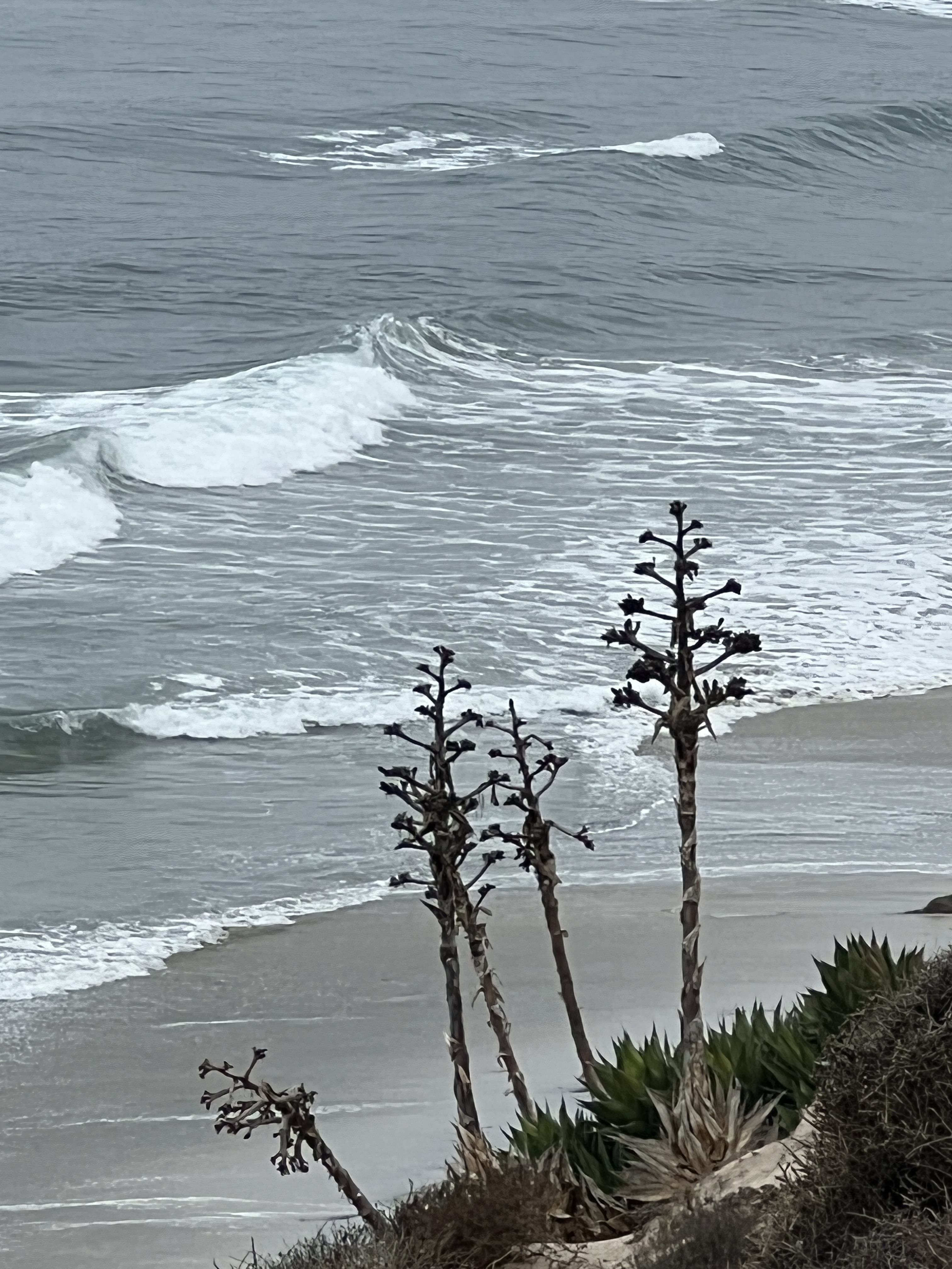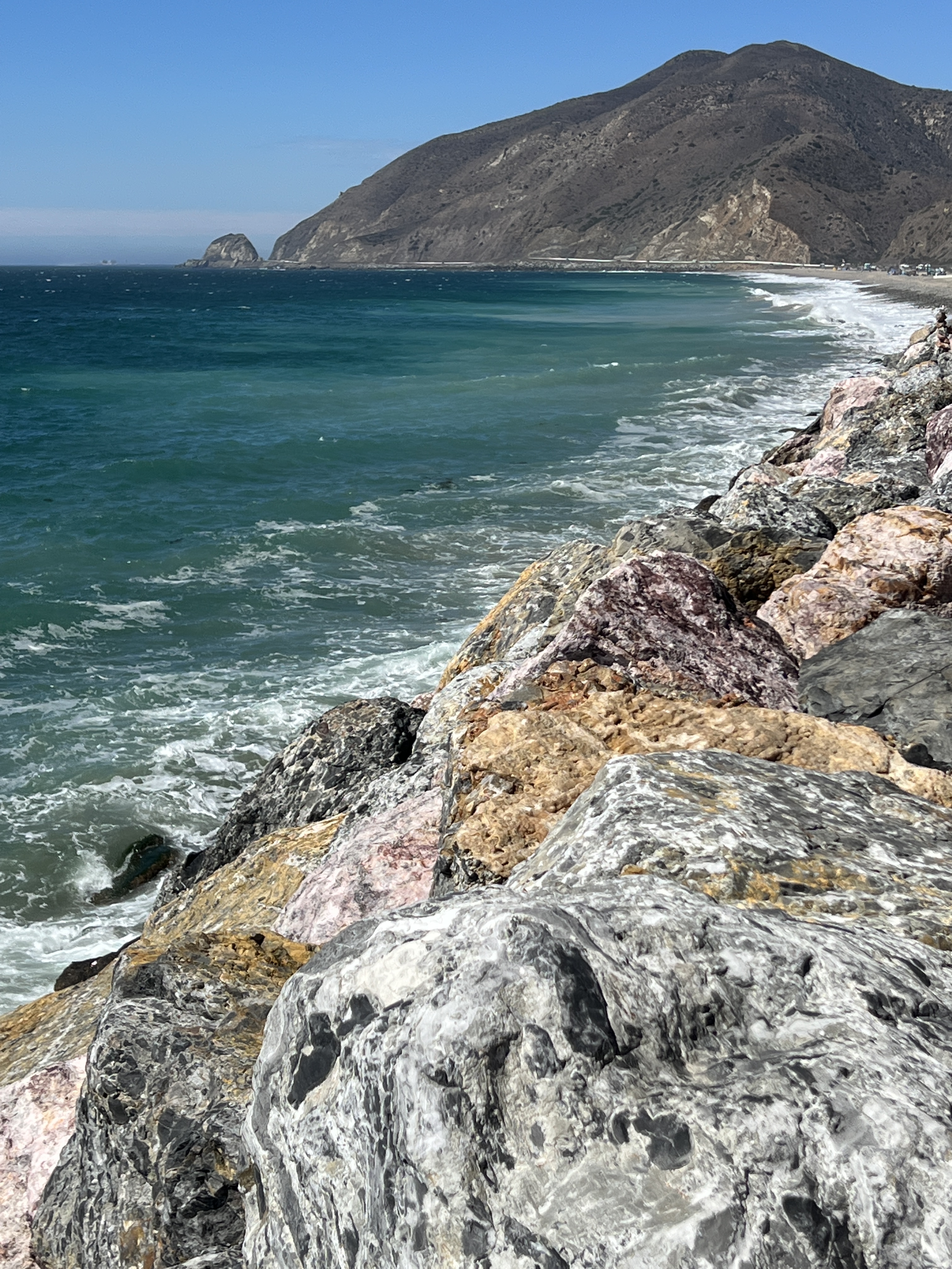 Another great breakfast. Leaving Santa Barbara. Great trails. Art City in Ventura (closing down), Alaska Airlines Flight 261 memorial near Oxnard. Rocks! Pepperdine from afar. Dinner with Jeff and Amy in Santa Monica!