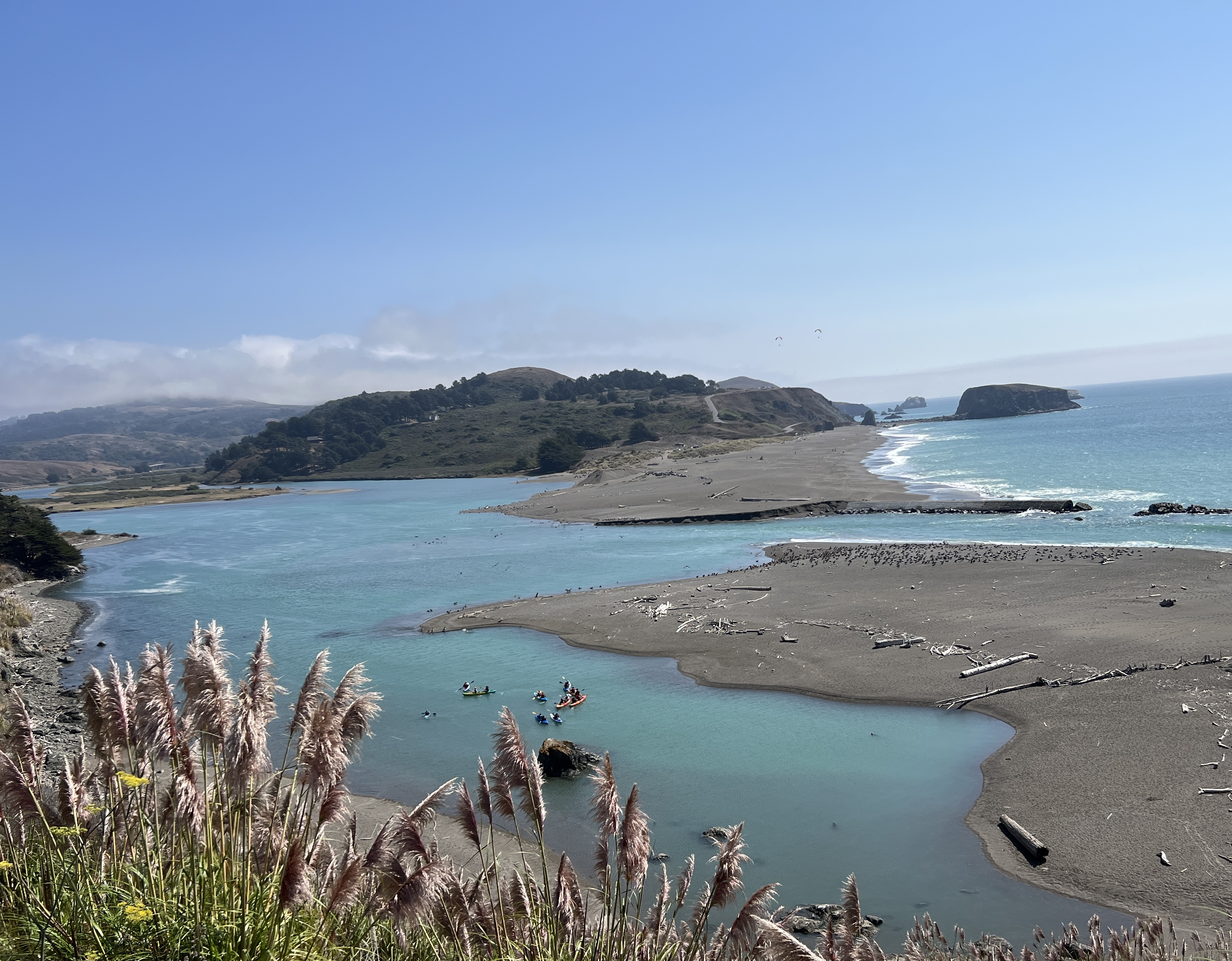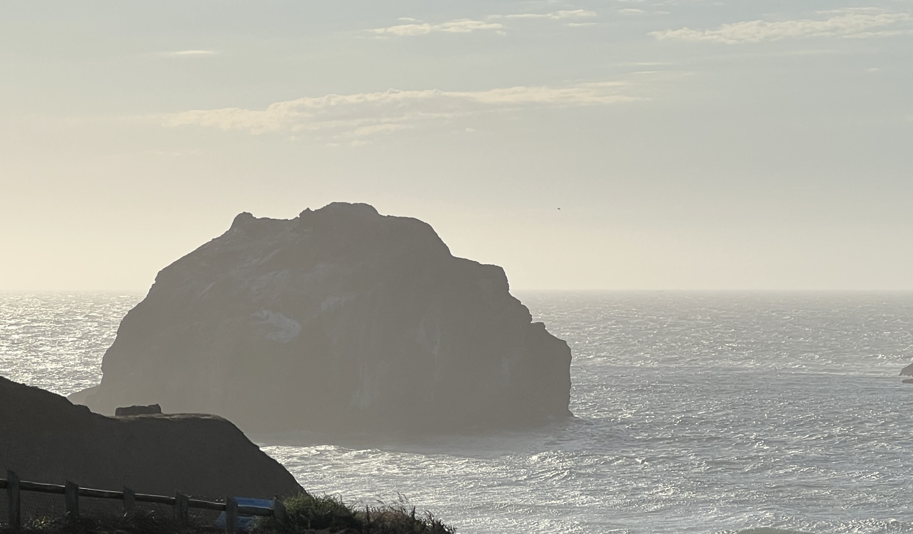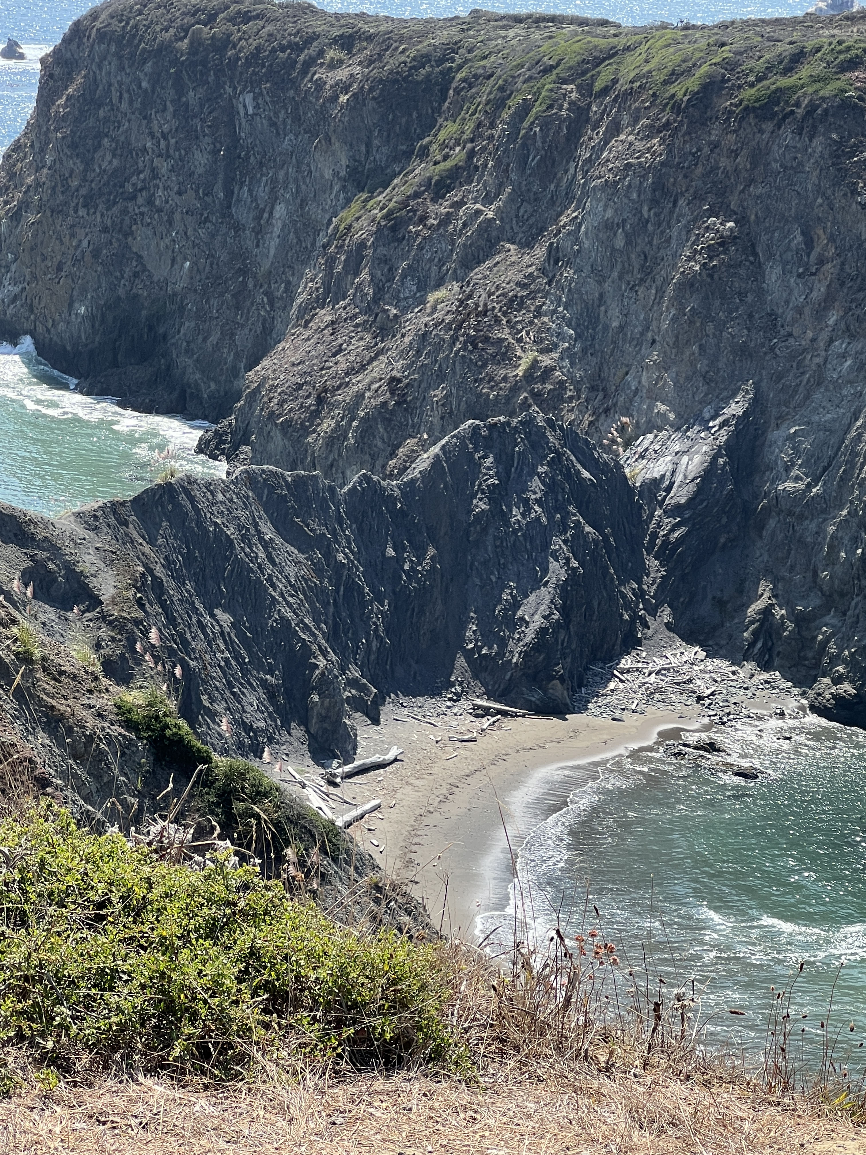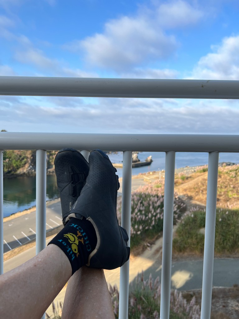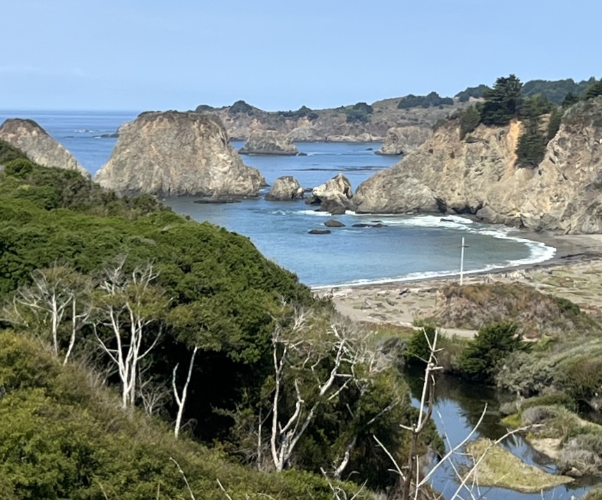 Fort Bragg hotel to St Orres cabin. Scary climbs and beautiful views. Fog to sun.