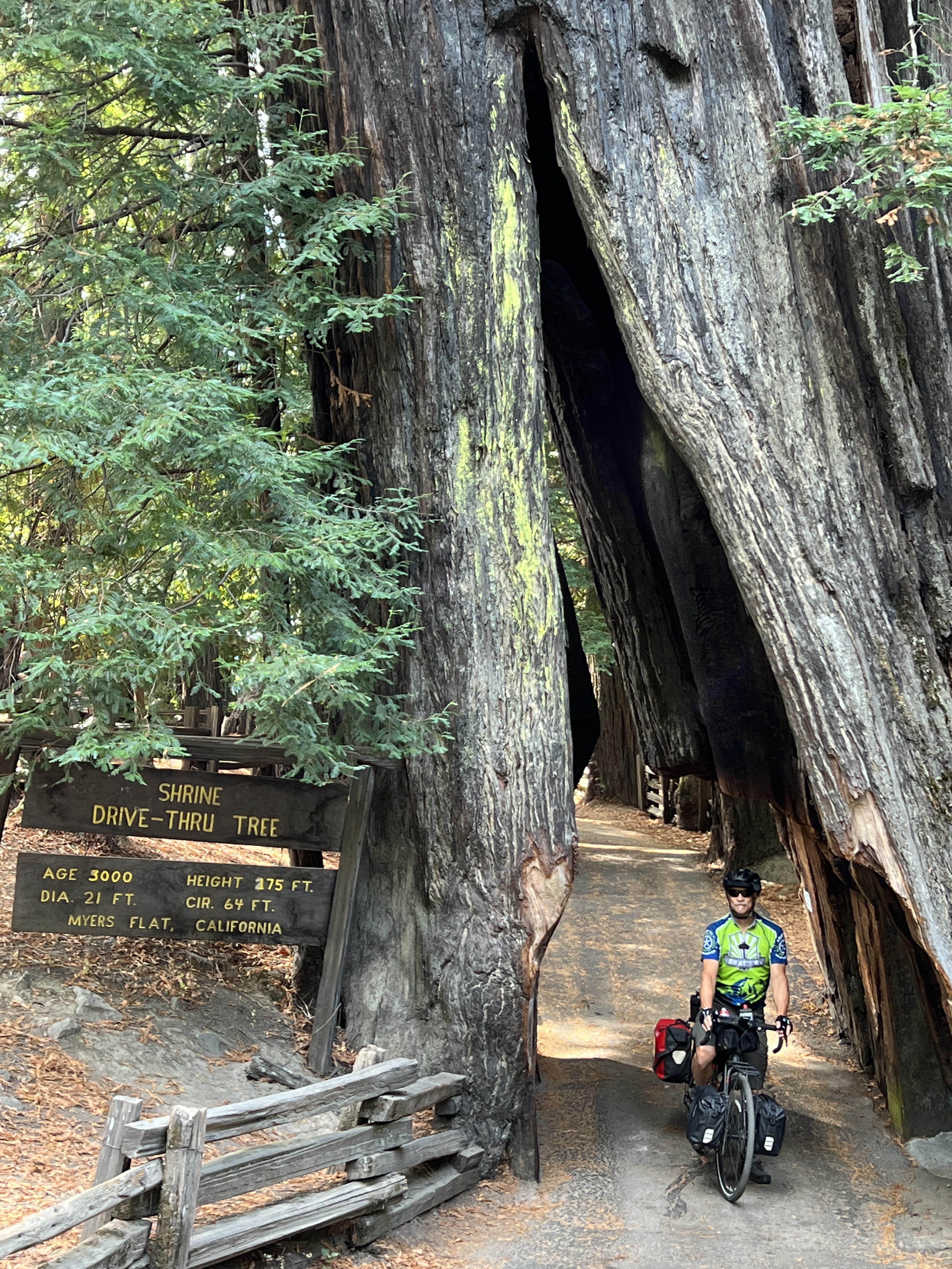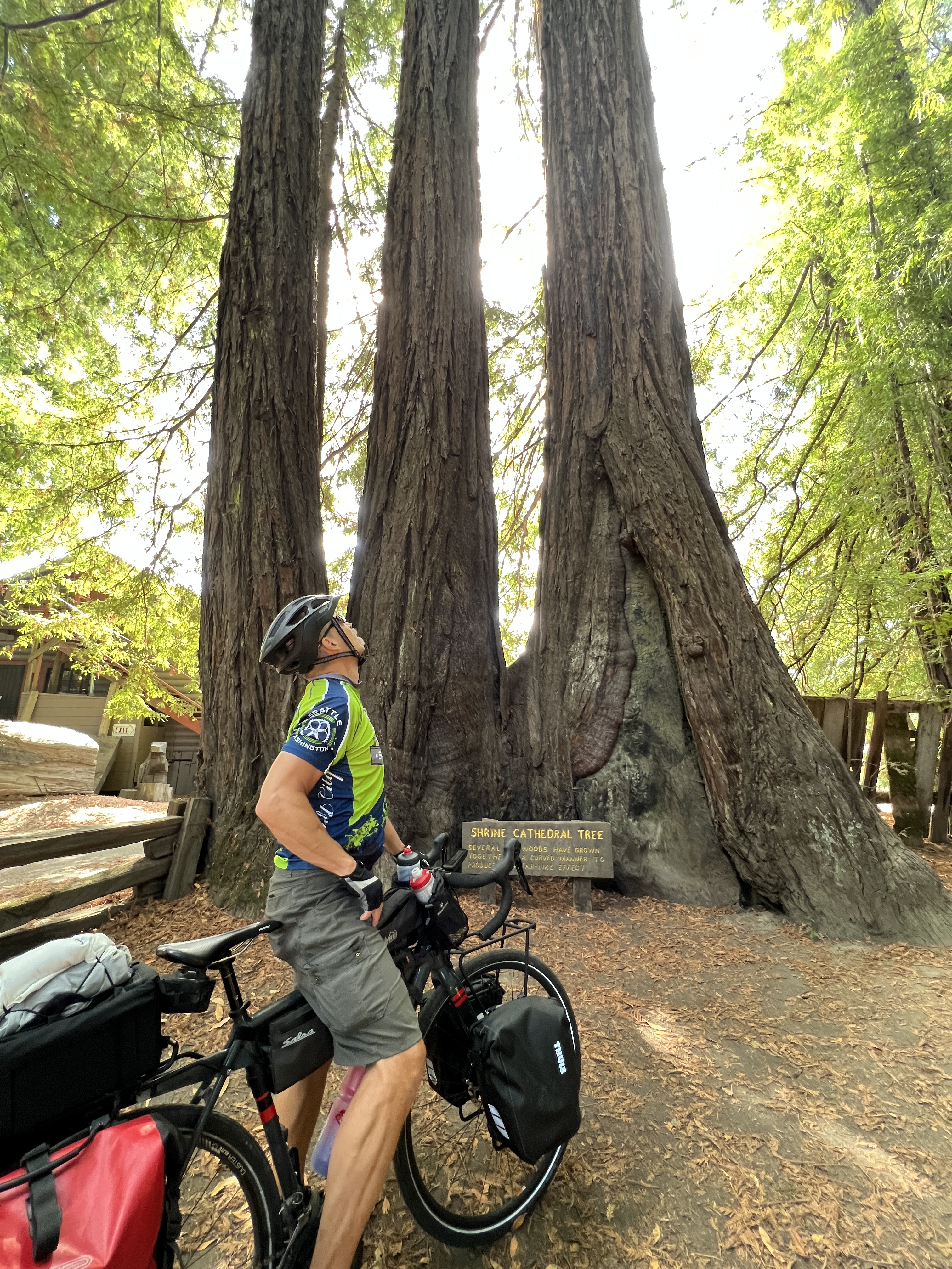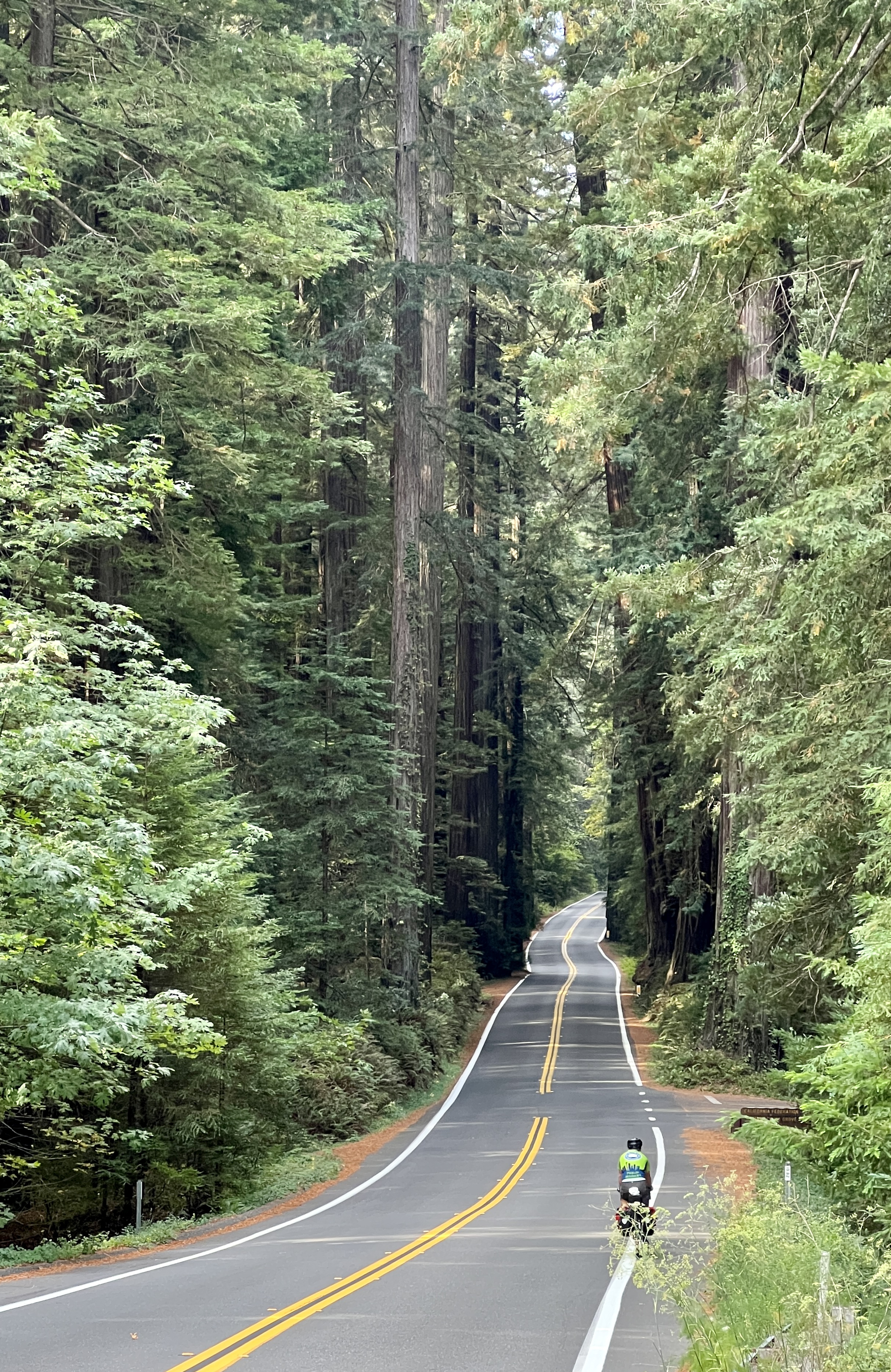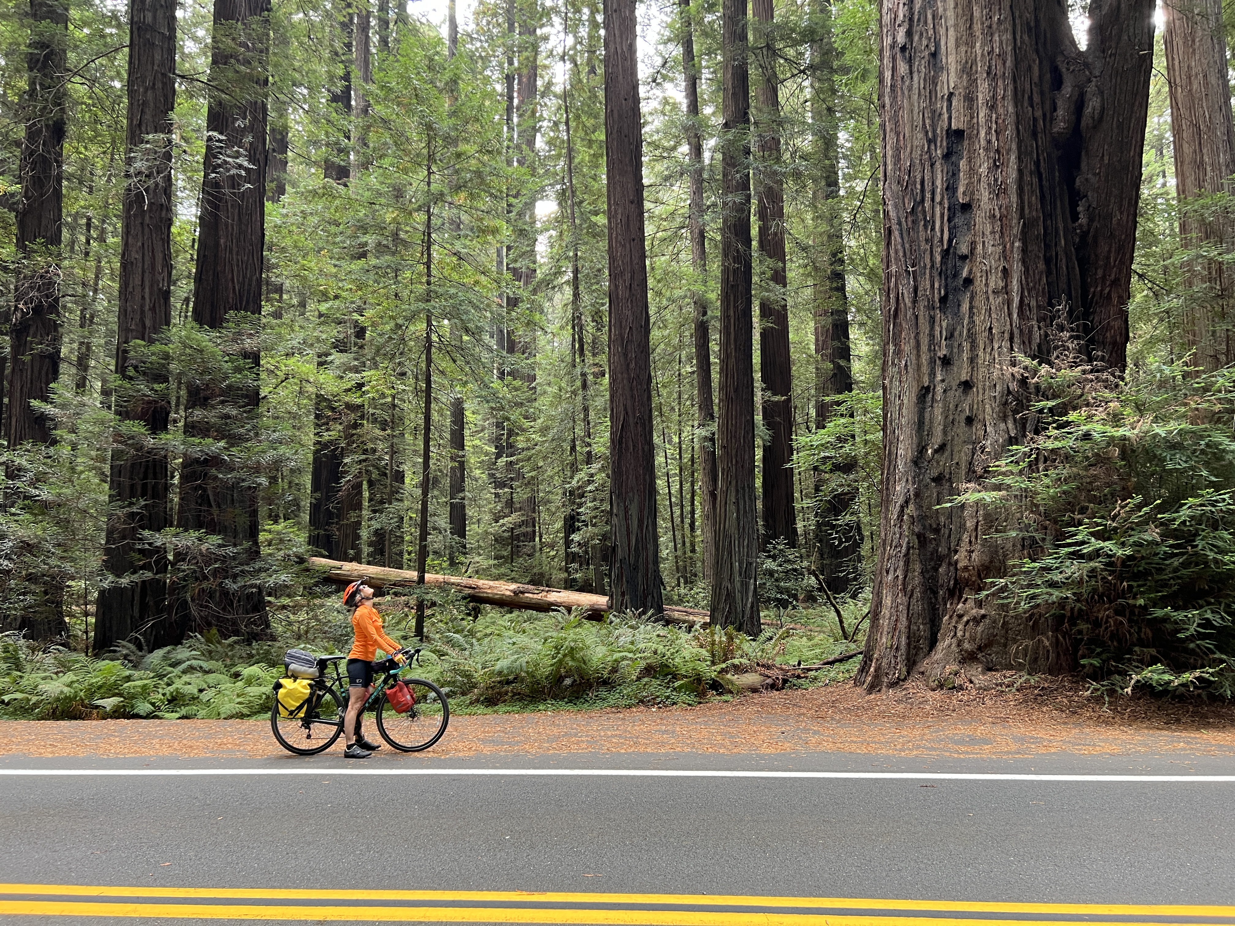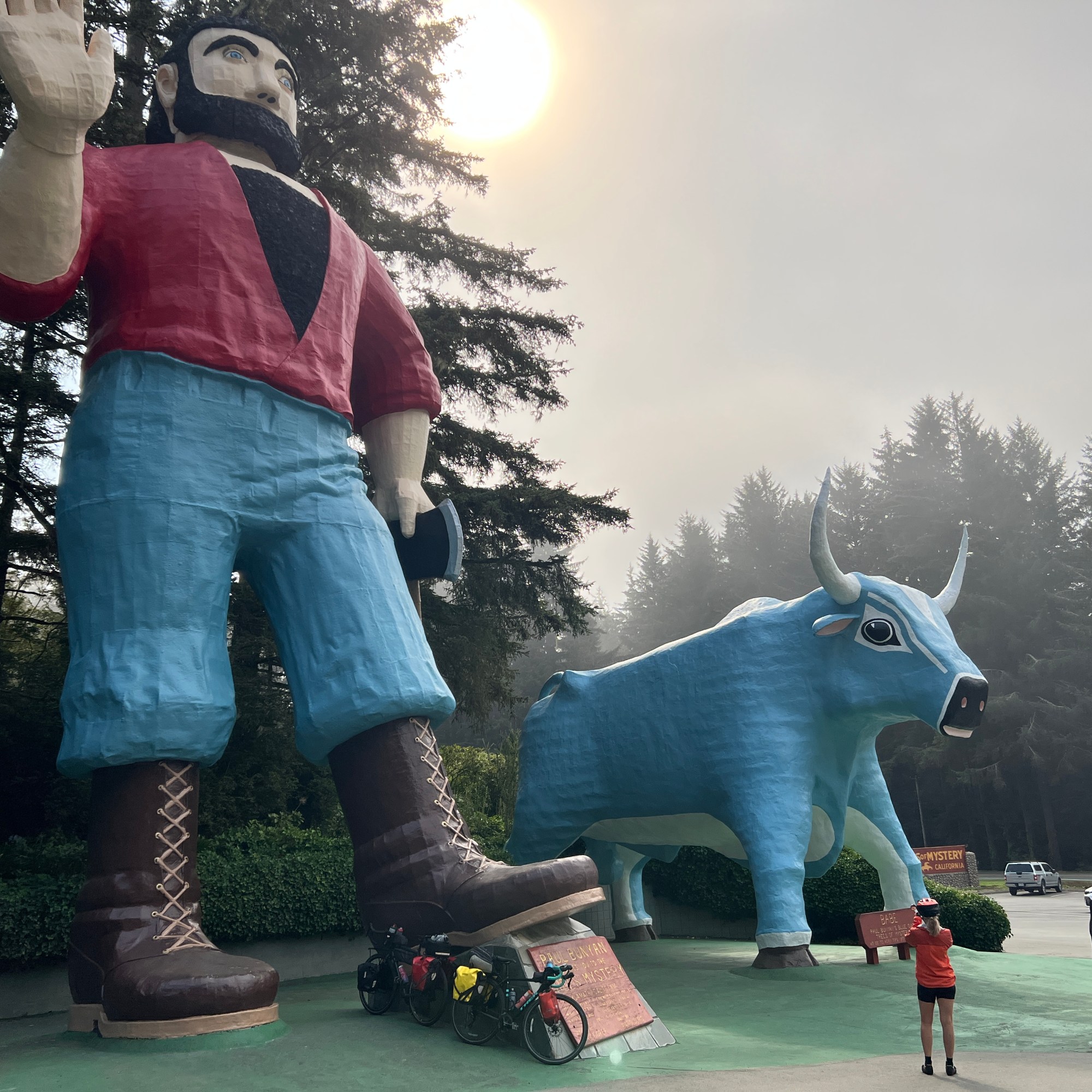 Crescent City to Trinidad. Riding through the redwoods, several big climbs (and downhills) and several road constructions. Trees of Mystery, the “big tree,” and happy endings in Trinidad.