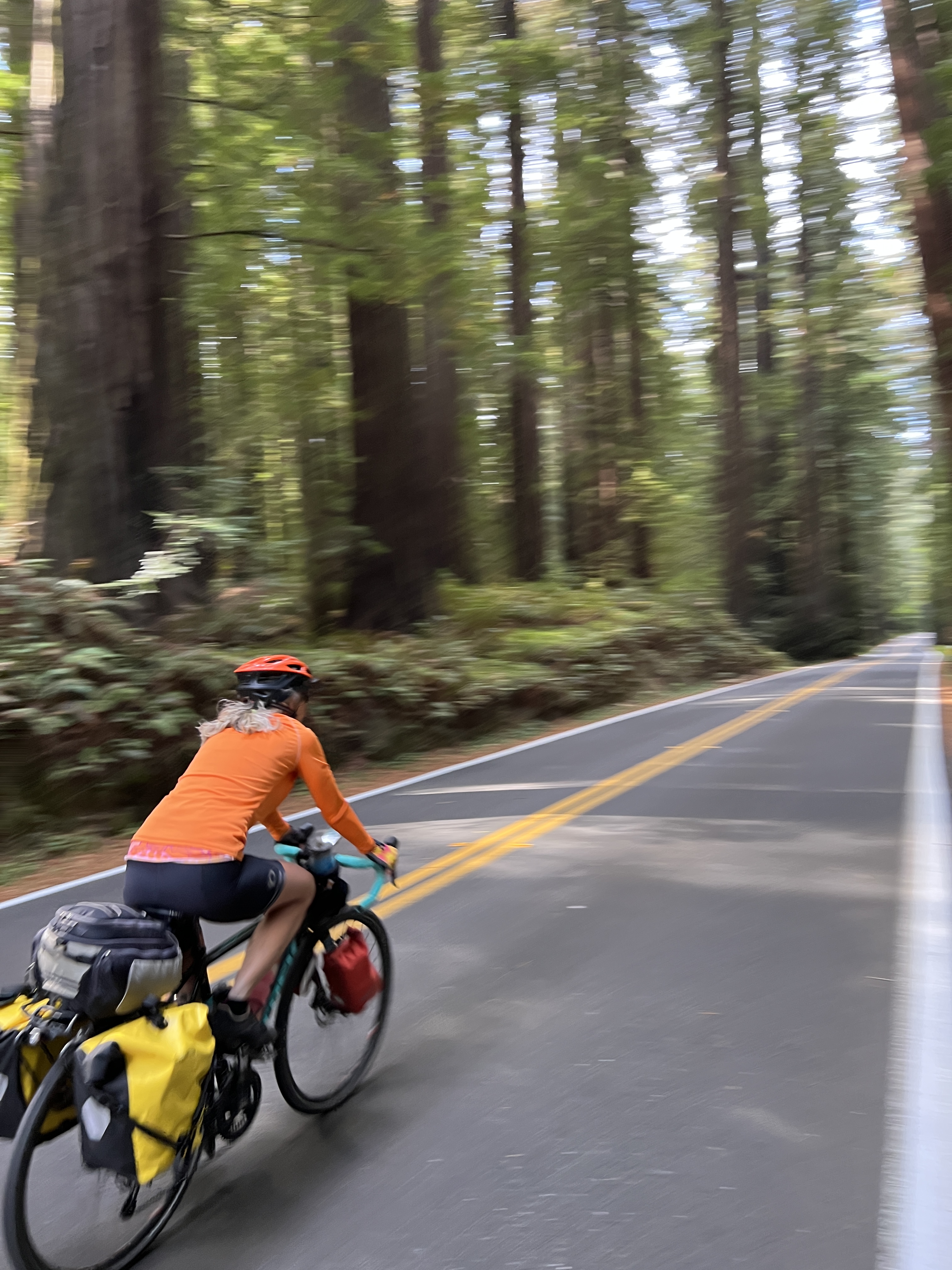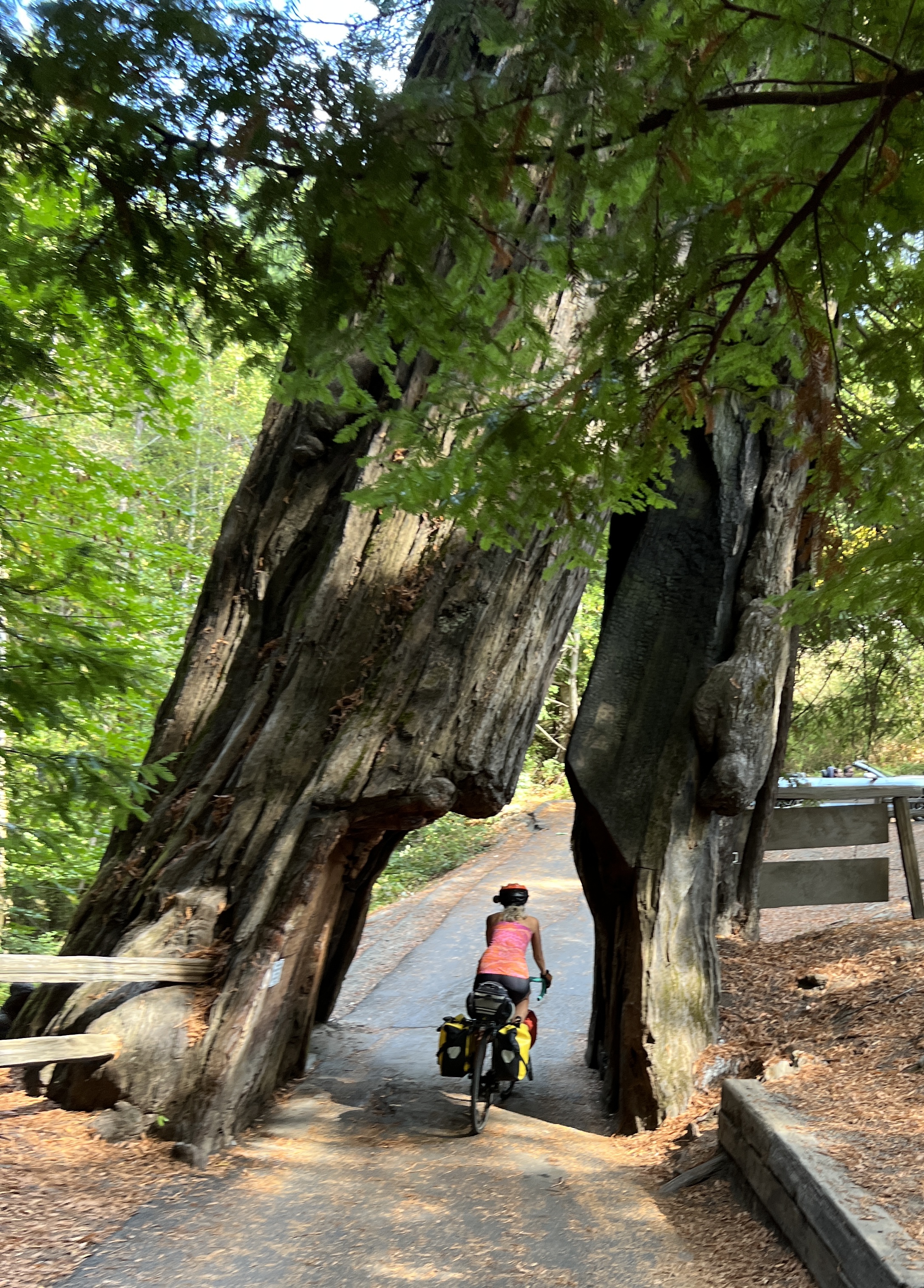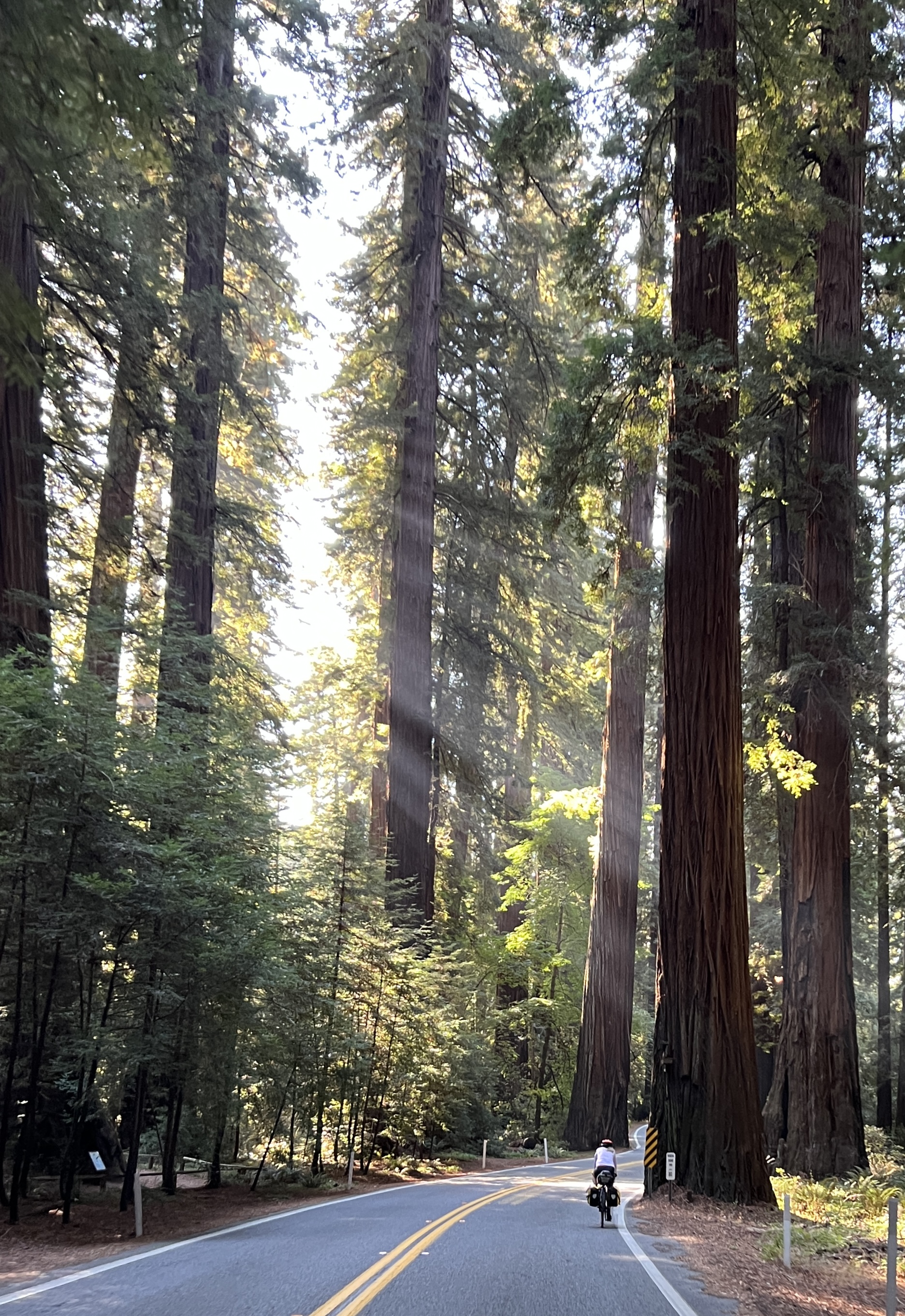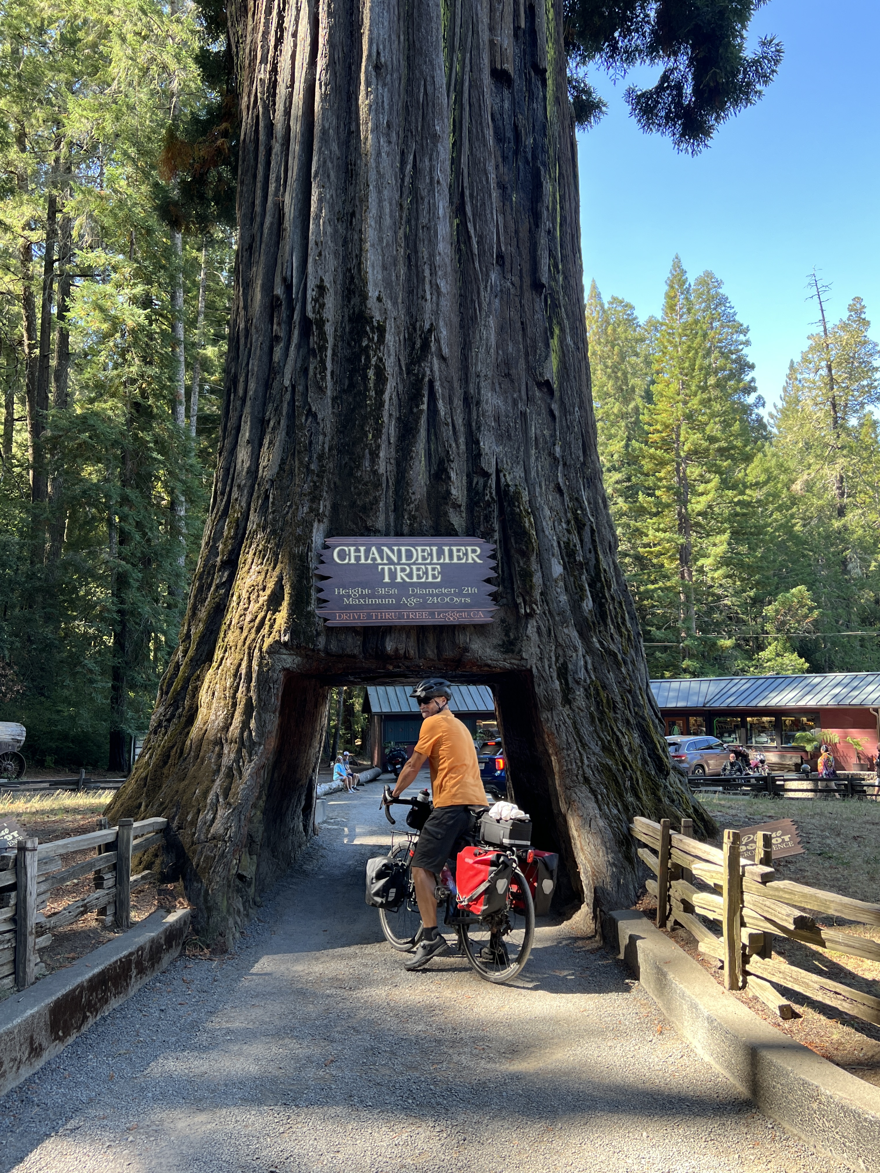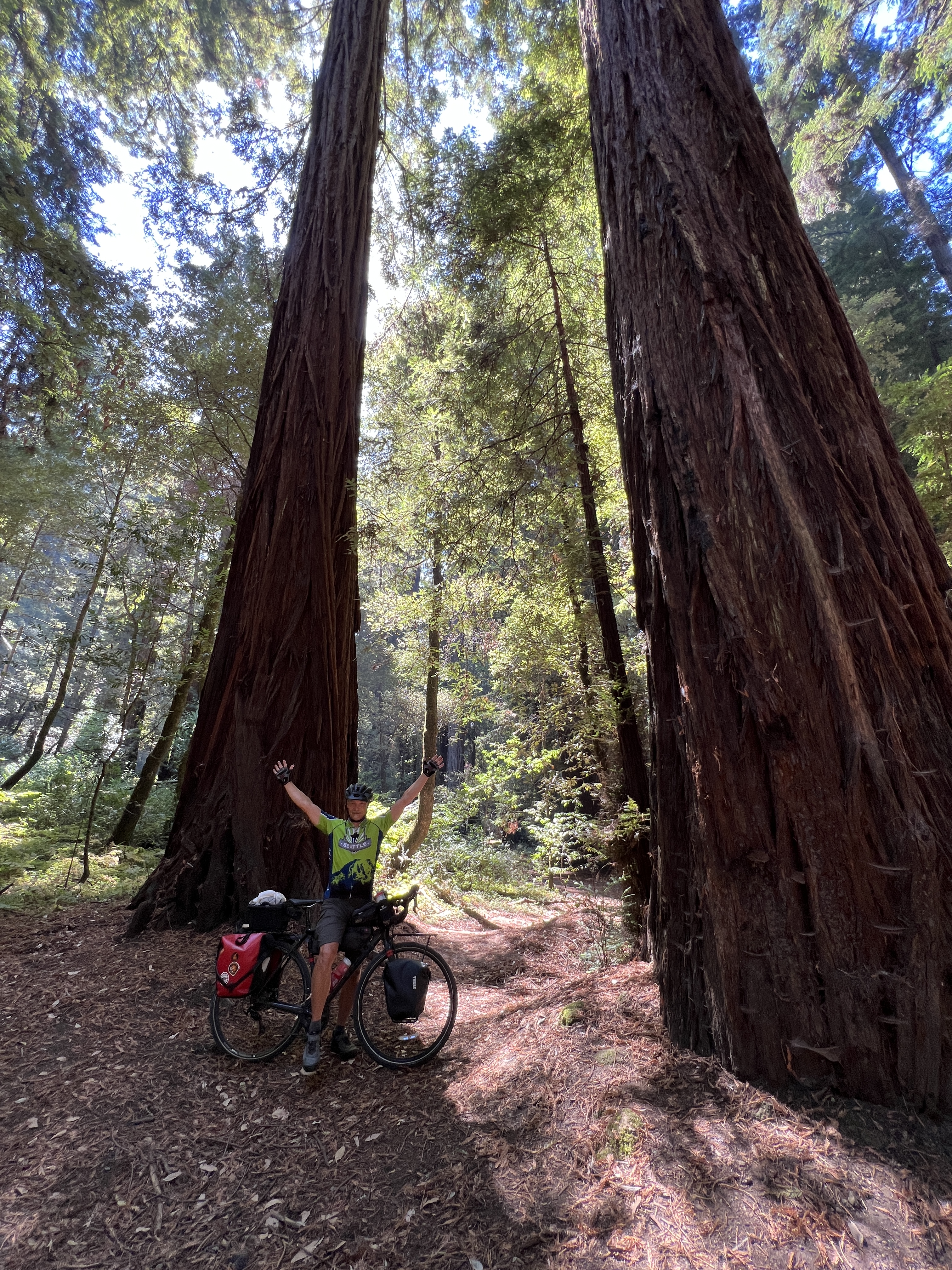 Crescent City to Trinidad. Riding through the redwoods, several big climbs (and downhills) and several road constructions. Trees of Mystery, the “big tree,” and happy endings in Trinidad.