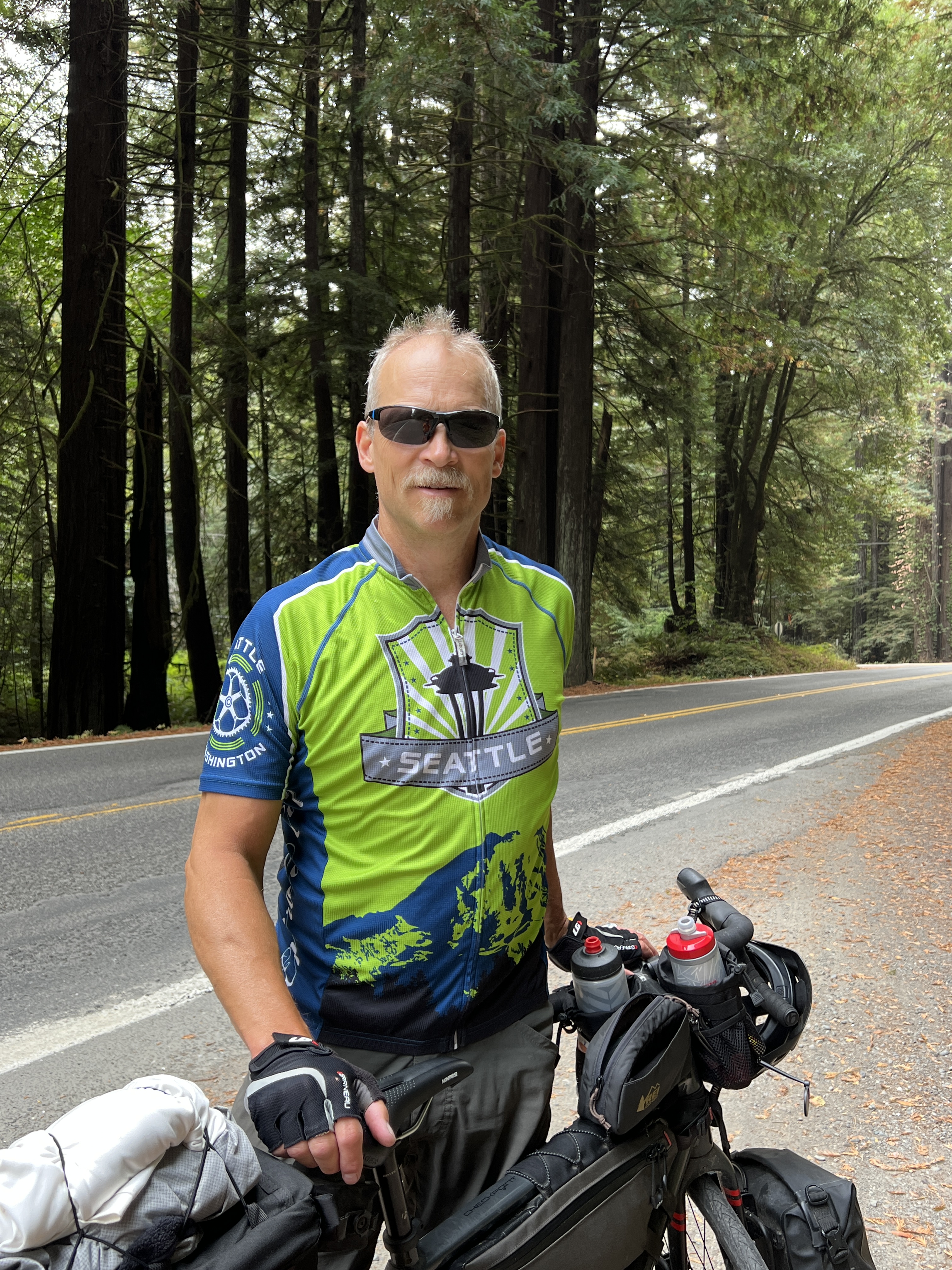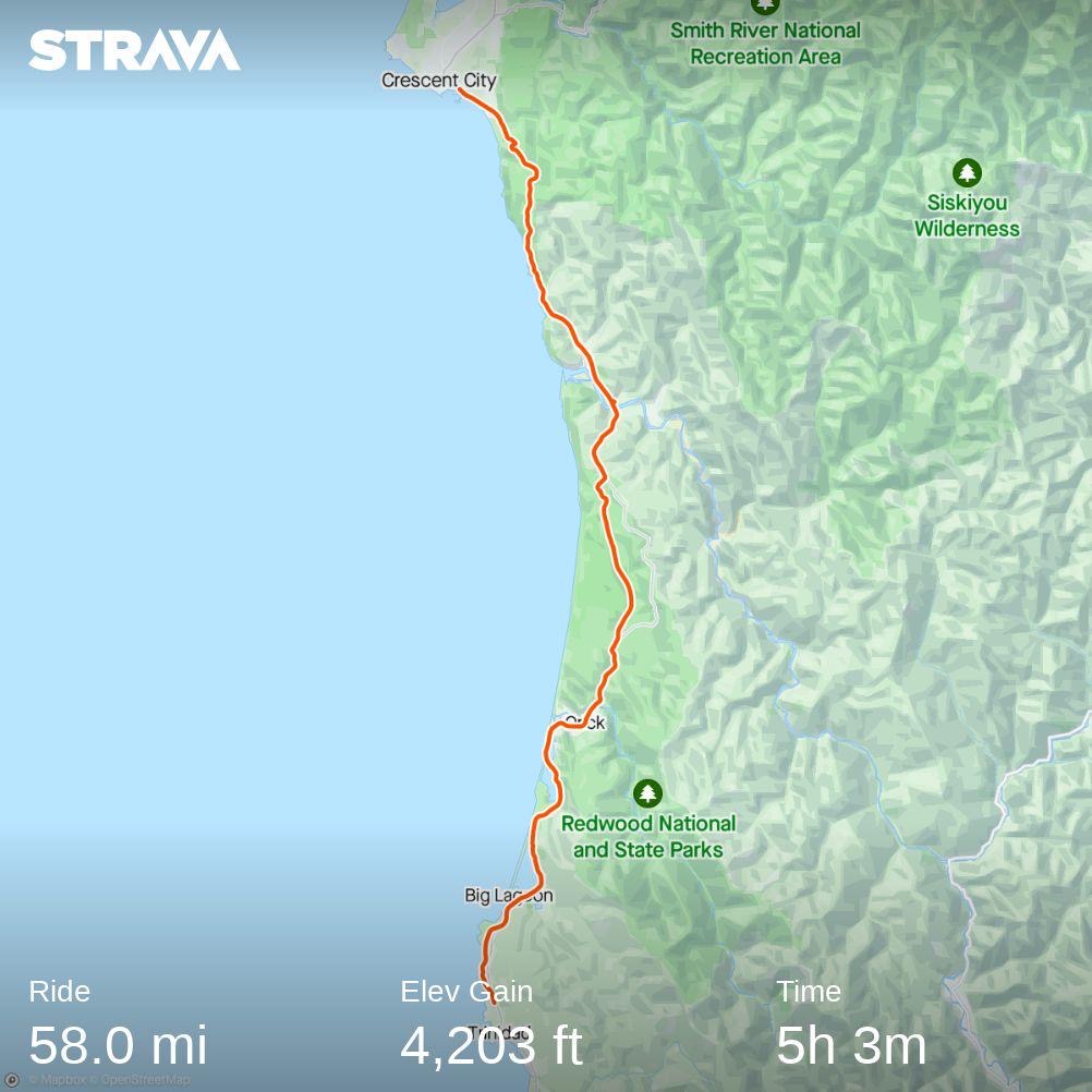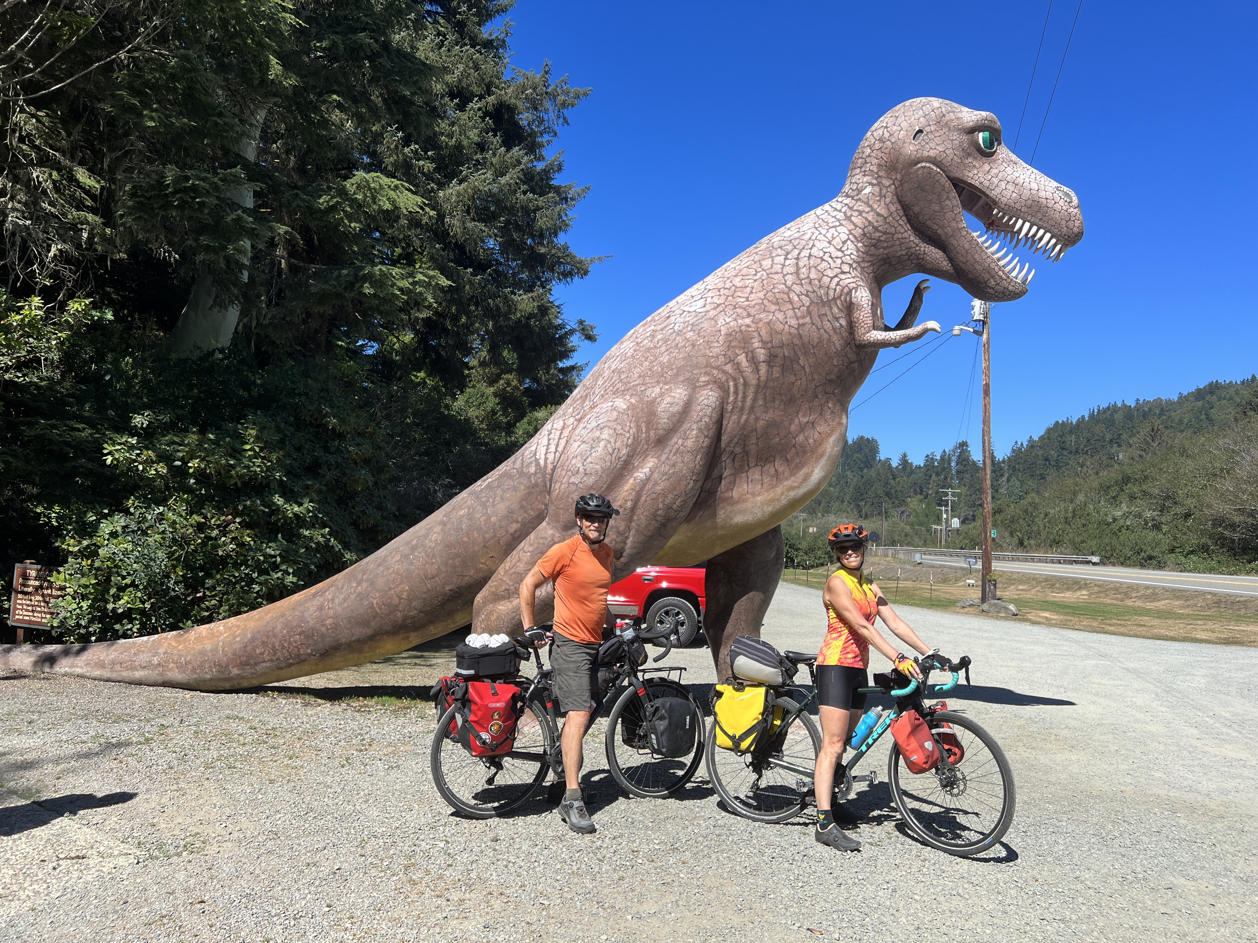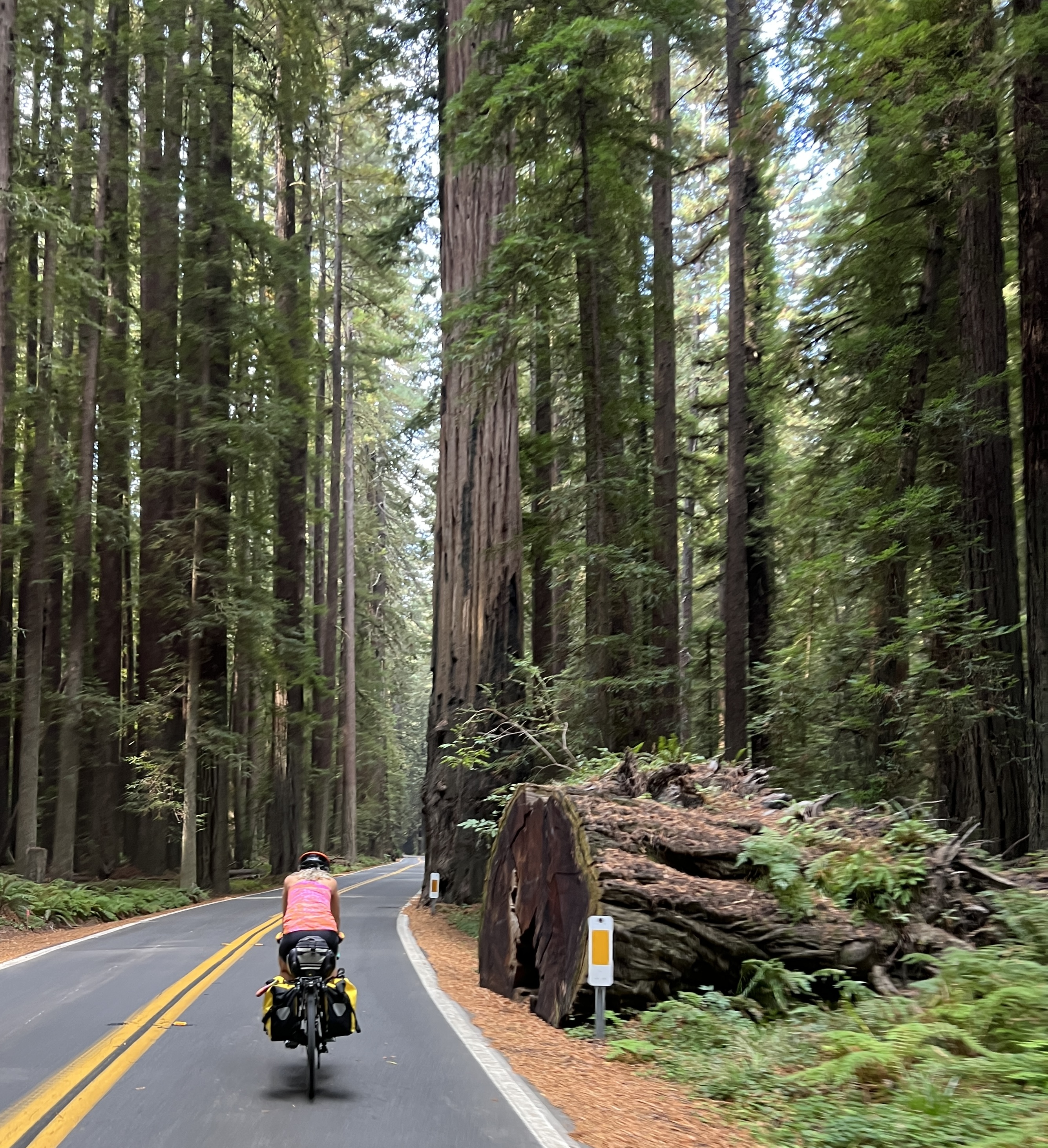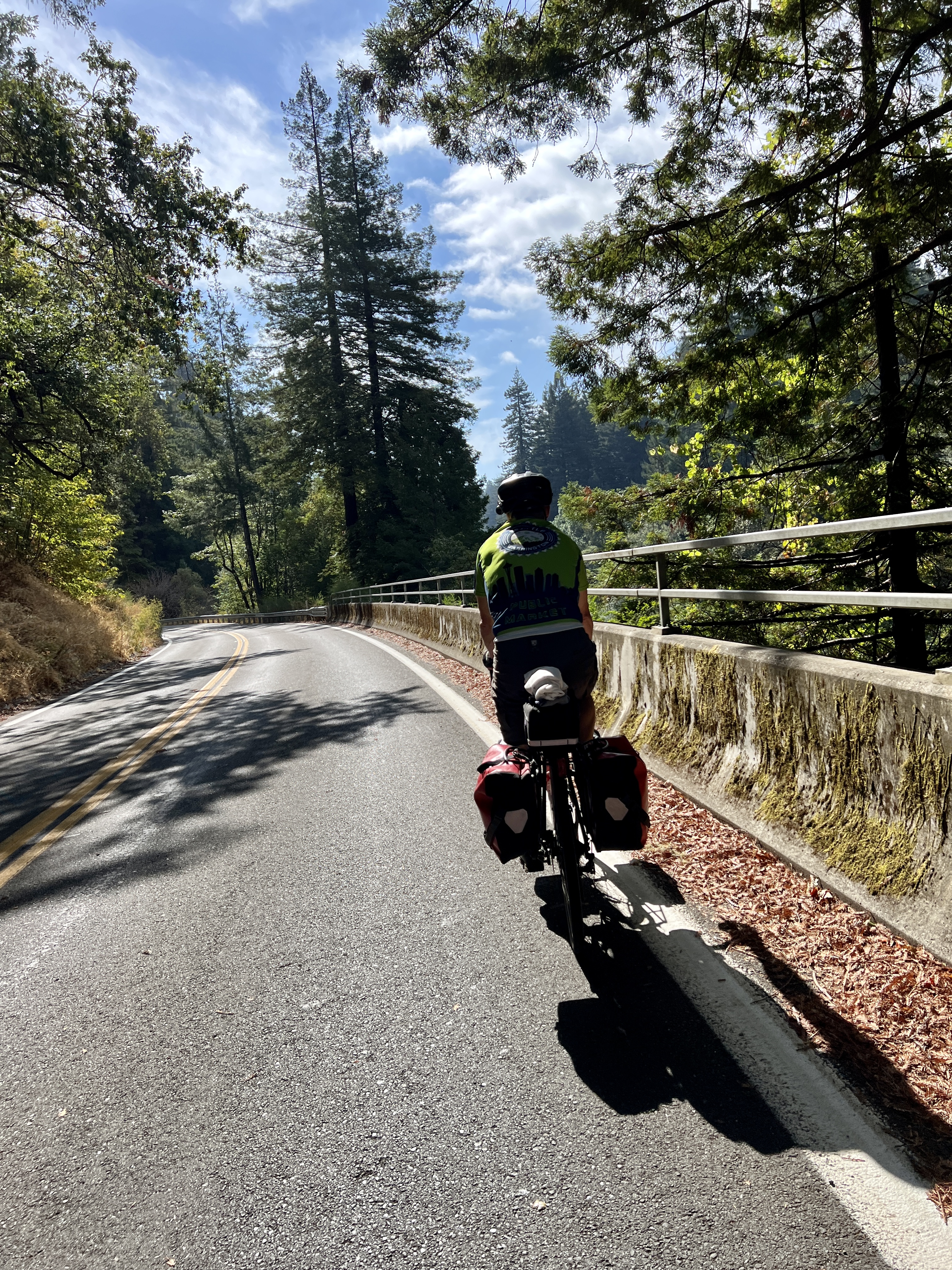 Crescent City to Trinidad. Riding through the redwoods, several big climbs (and downhills) and several road constructions. Trees of Mystery, the “big tree,” and happy endings in Trinidad.