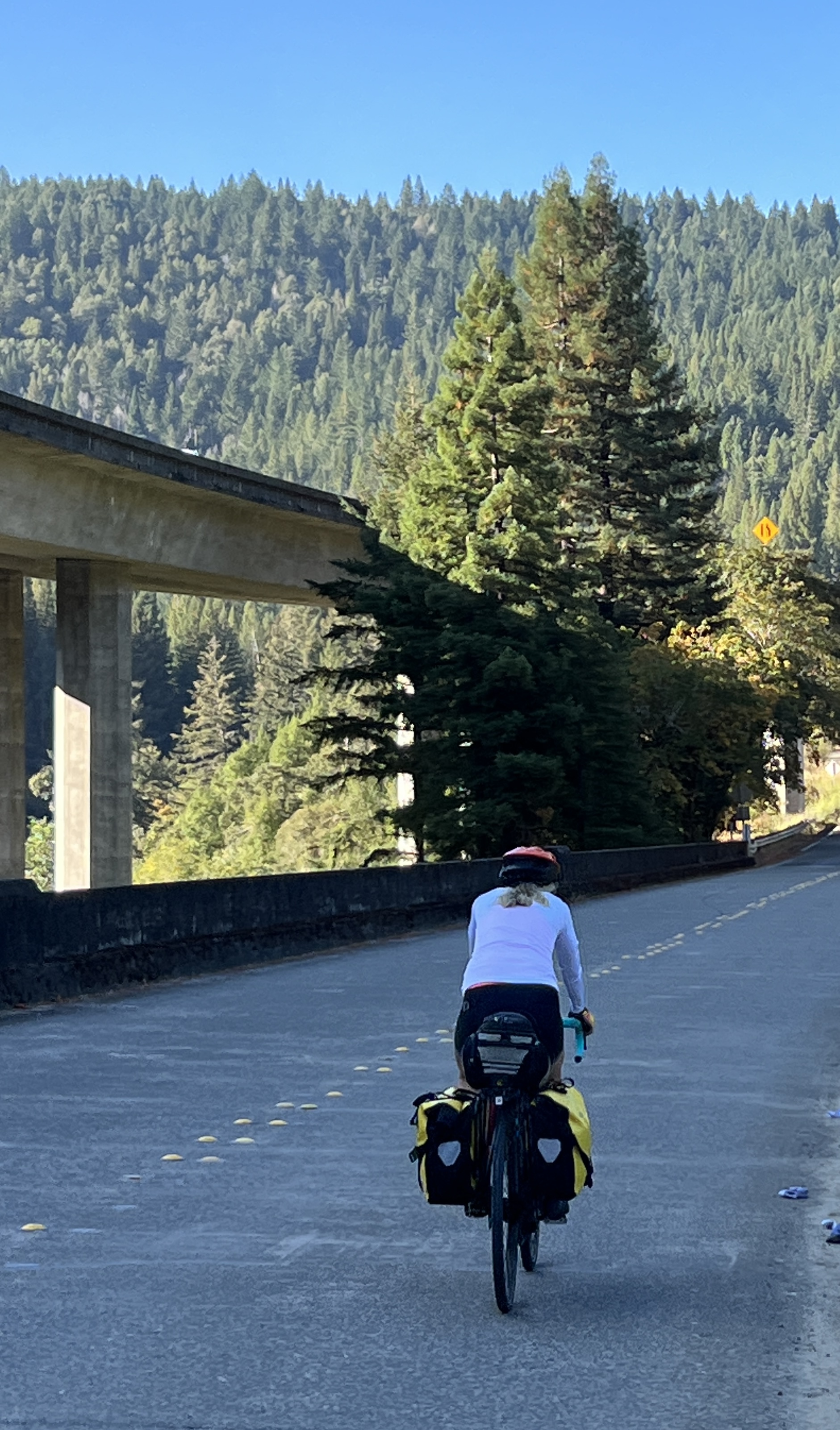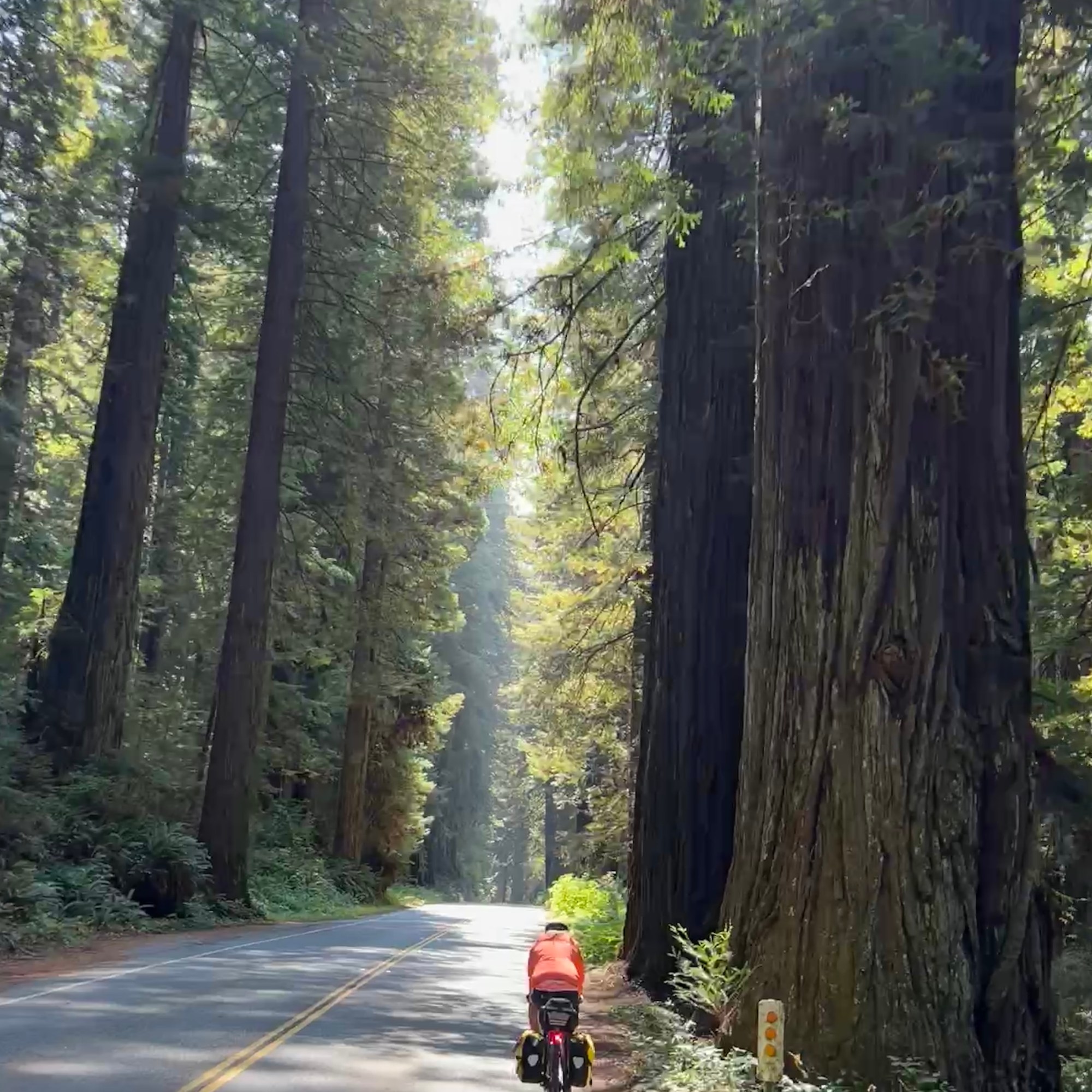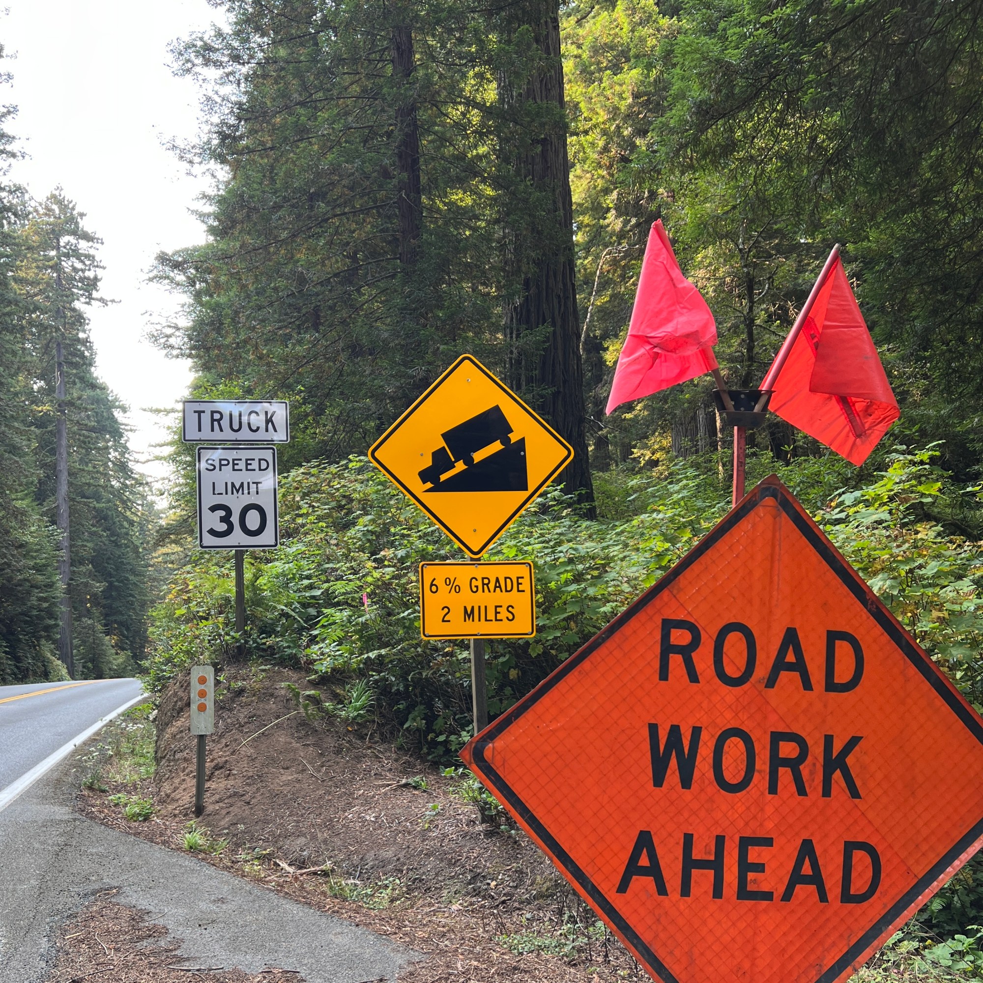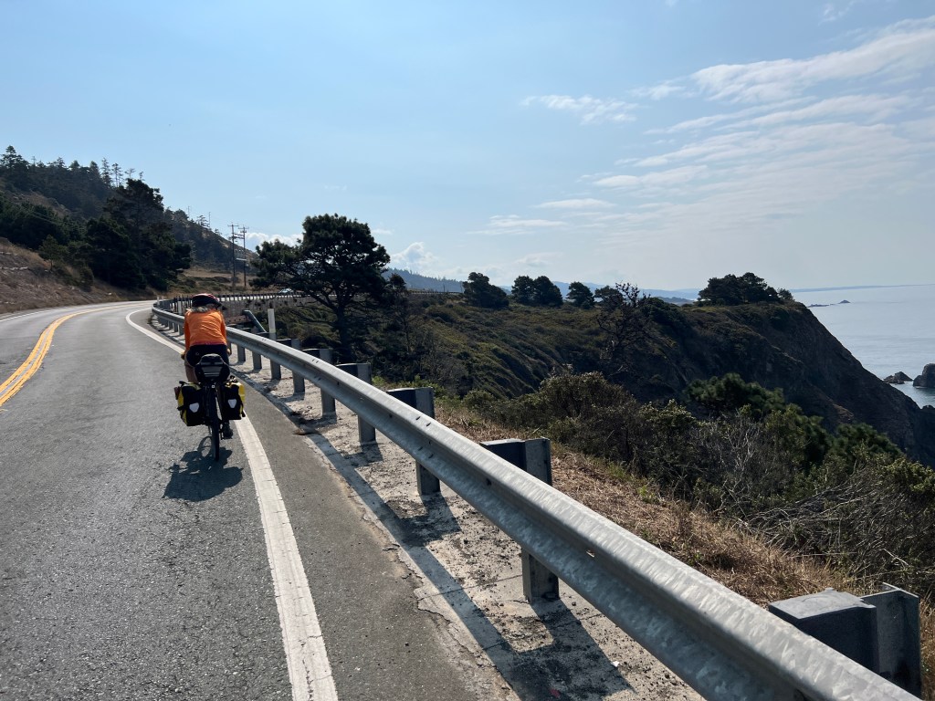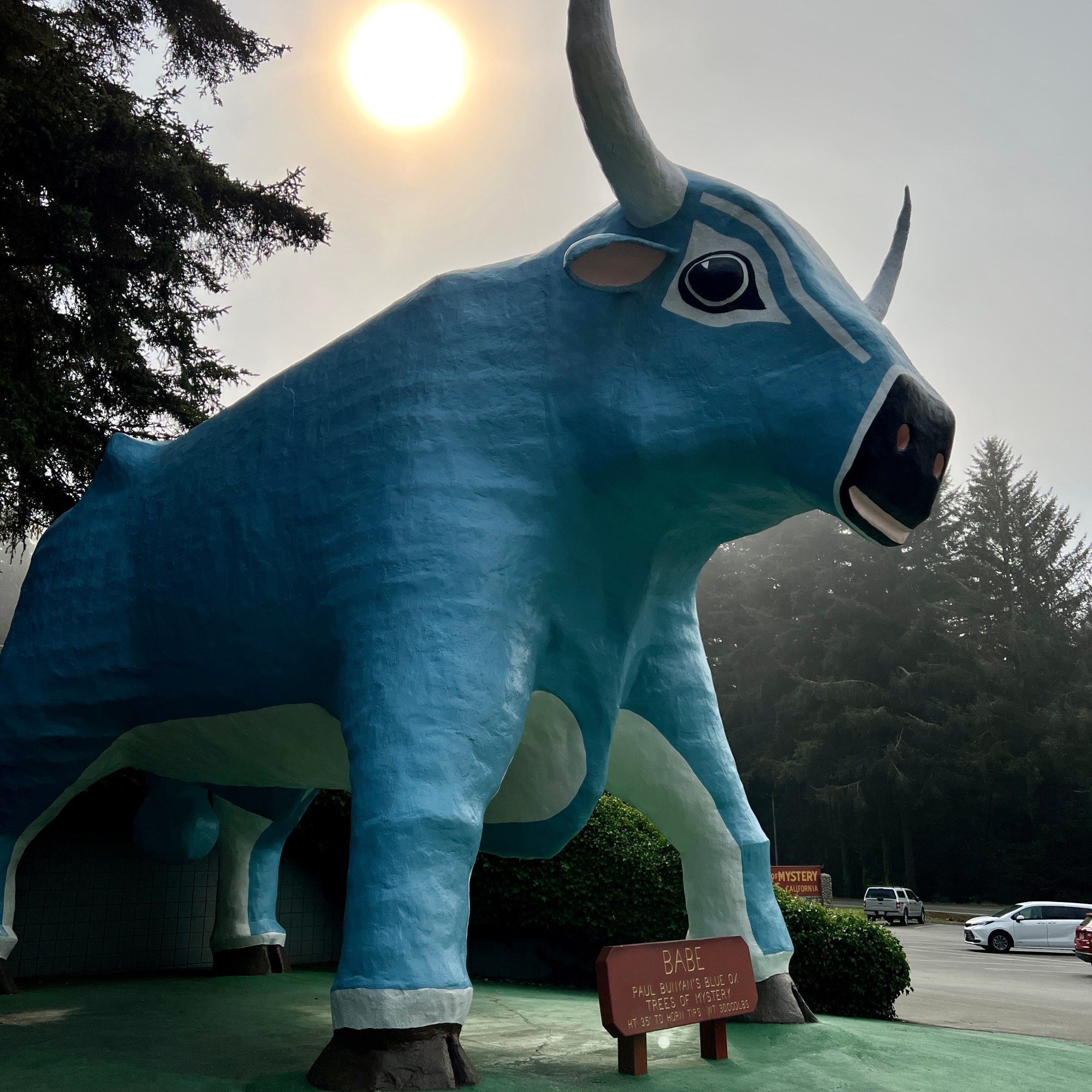 Crescent City to Trinidad. Riding through the redwoods, several big climbs (and downhills) and several road constructions. Trees of Mystery, the “big tree,” and happy endings in Trinidad.