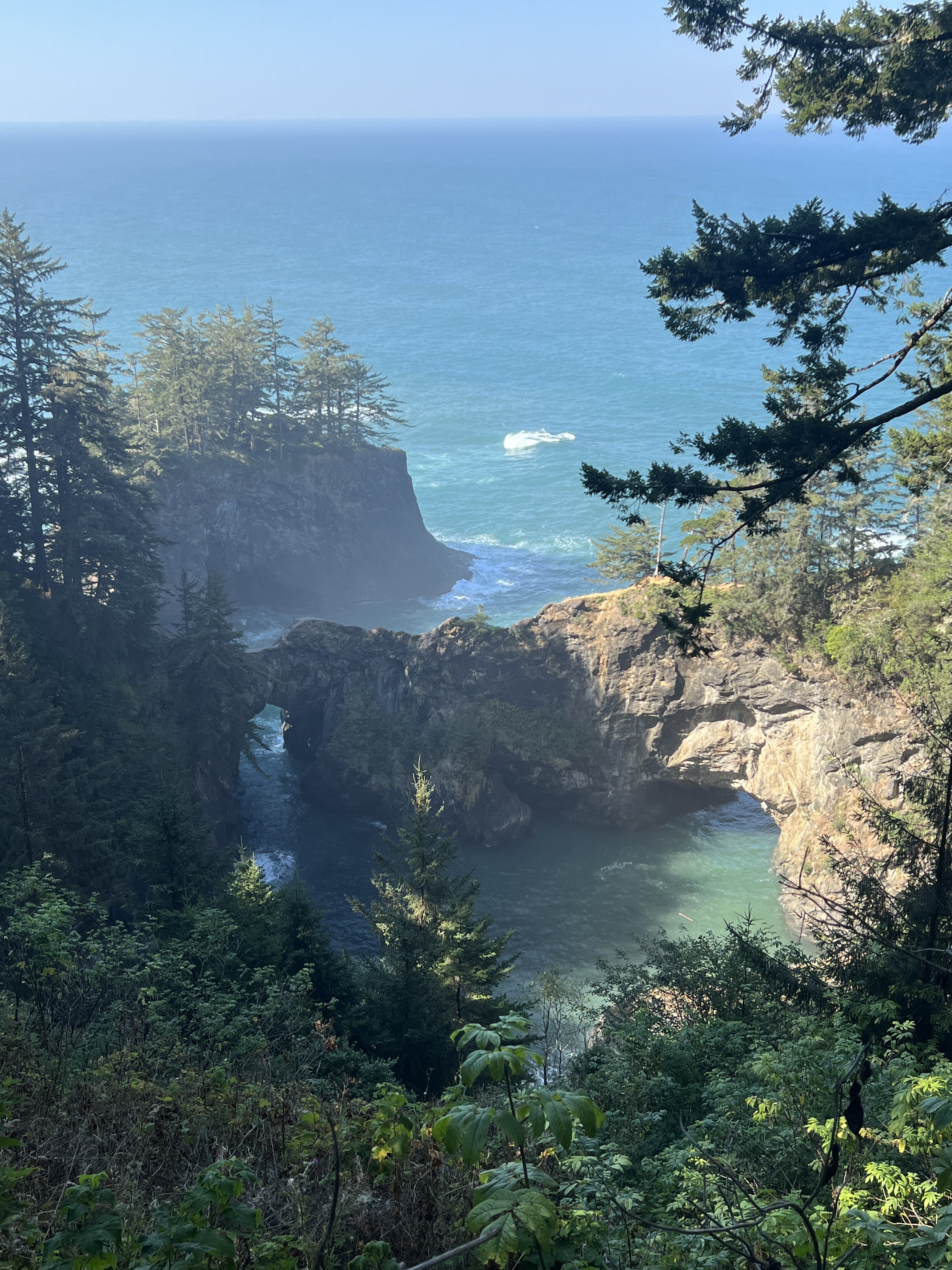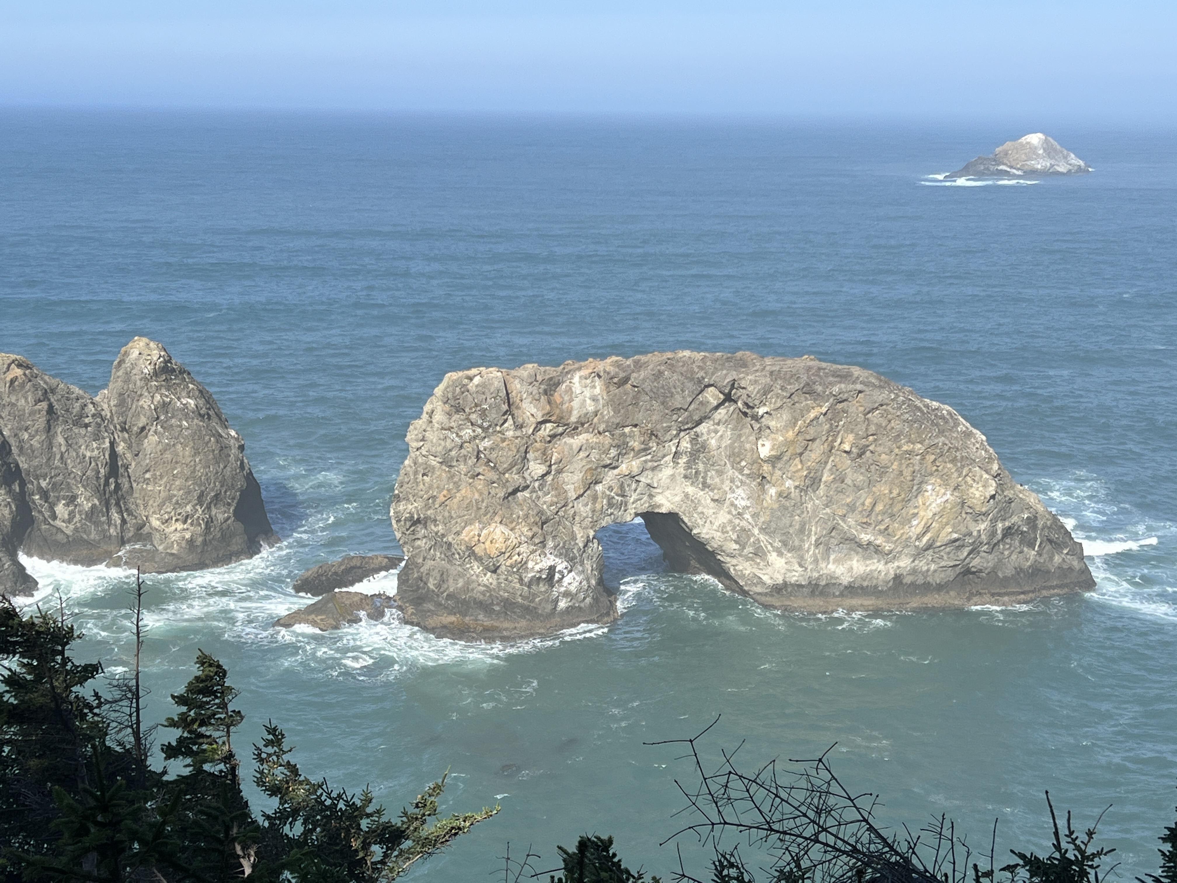 Gold Beach to Crescent City, CA. Arch Rock. Natural Bridges. A truck commercial in the making. California! Dinner in Crescent City.