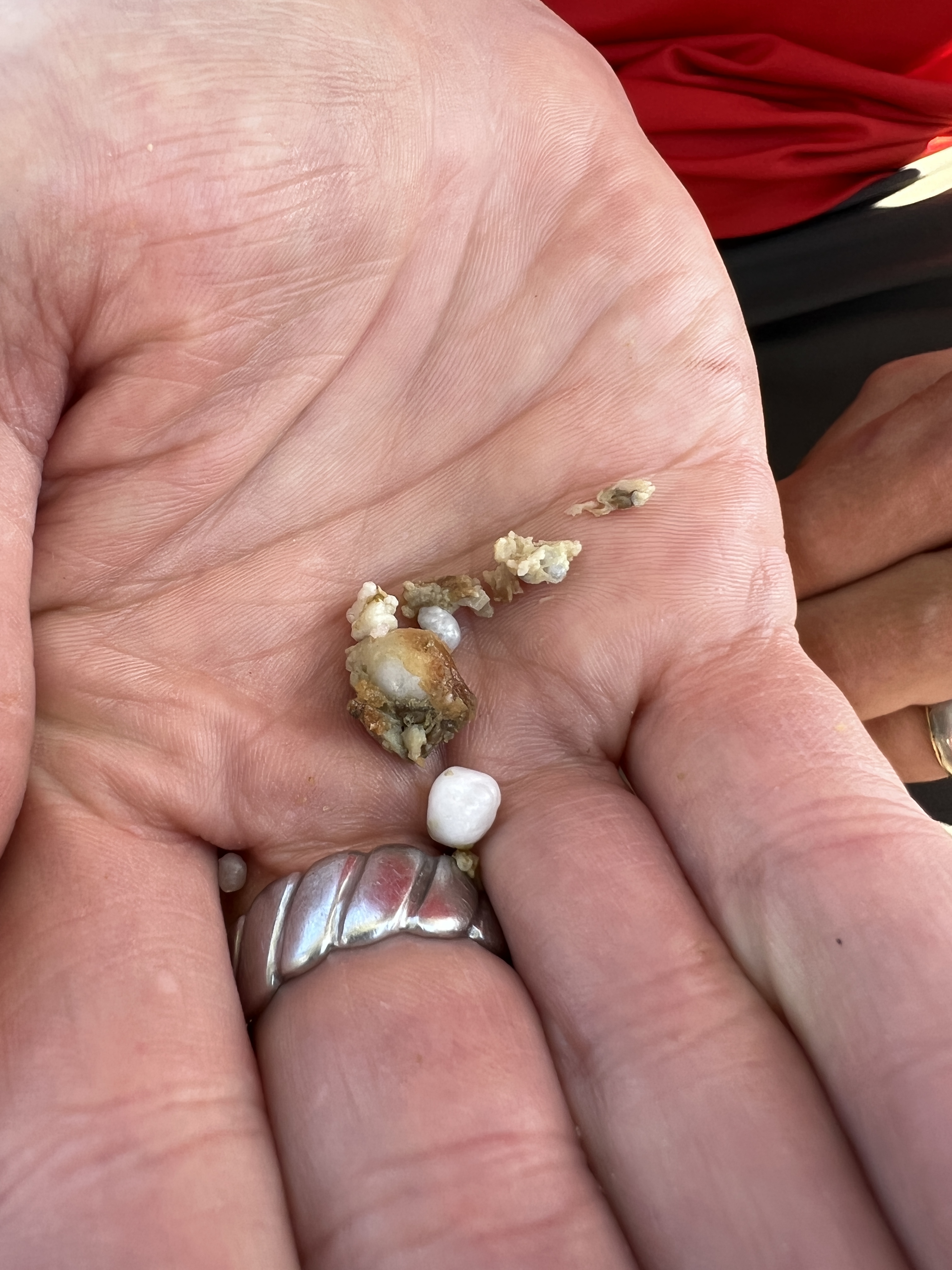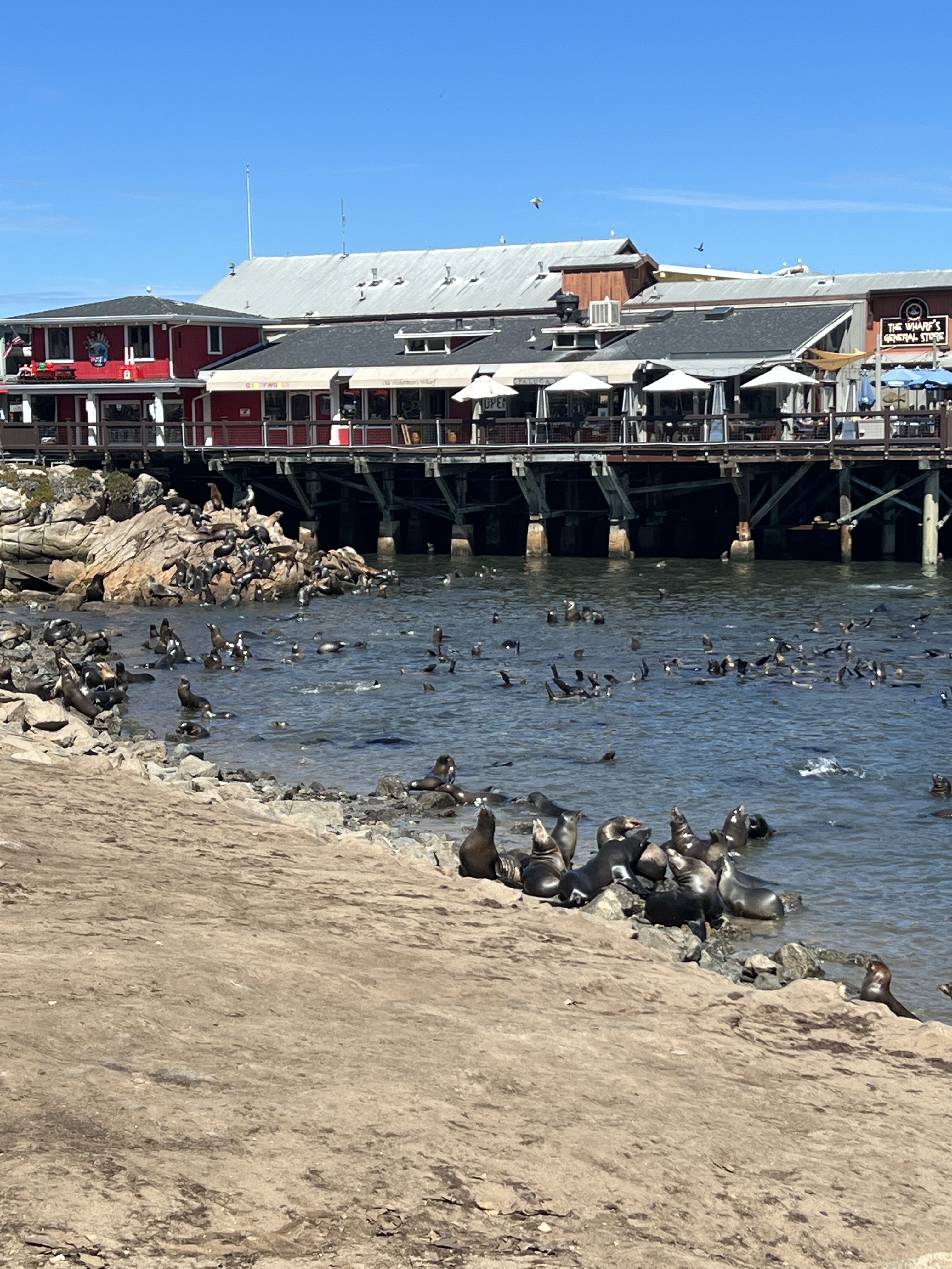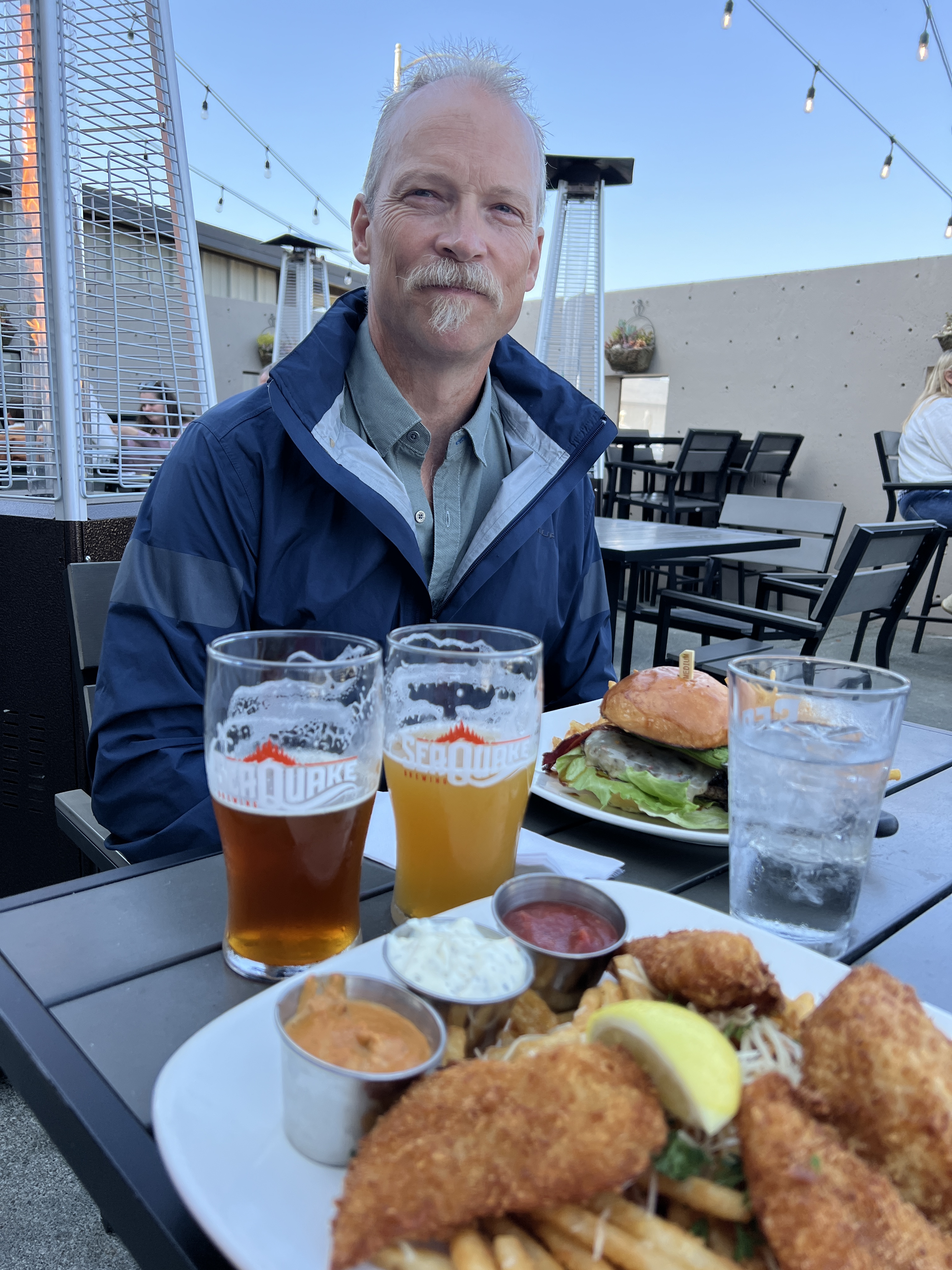 Brilliant breakfast. Leaving our excellent Warmshowers host, Murdock, (and our 49ers room). Elephant seals near San Simeon. Morro Bay. Pearls from Craig’s fried oysters.