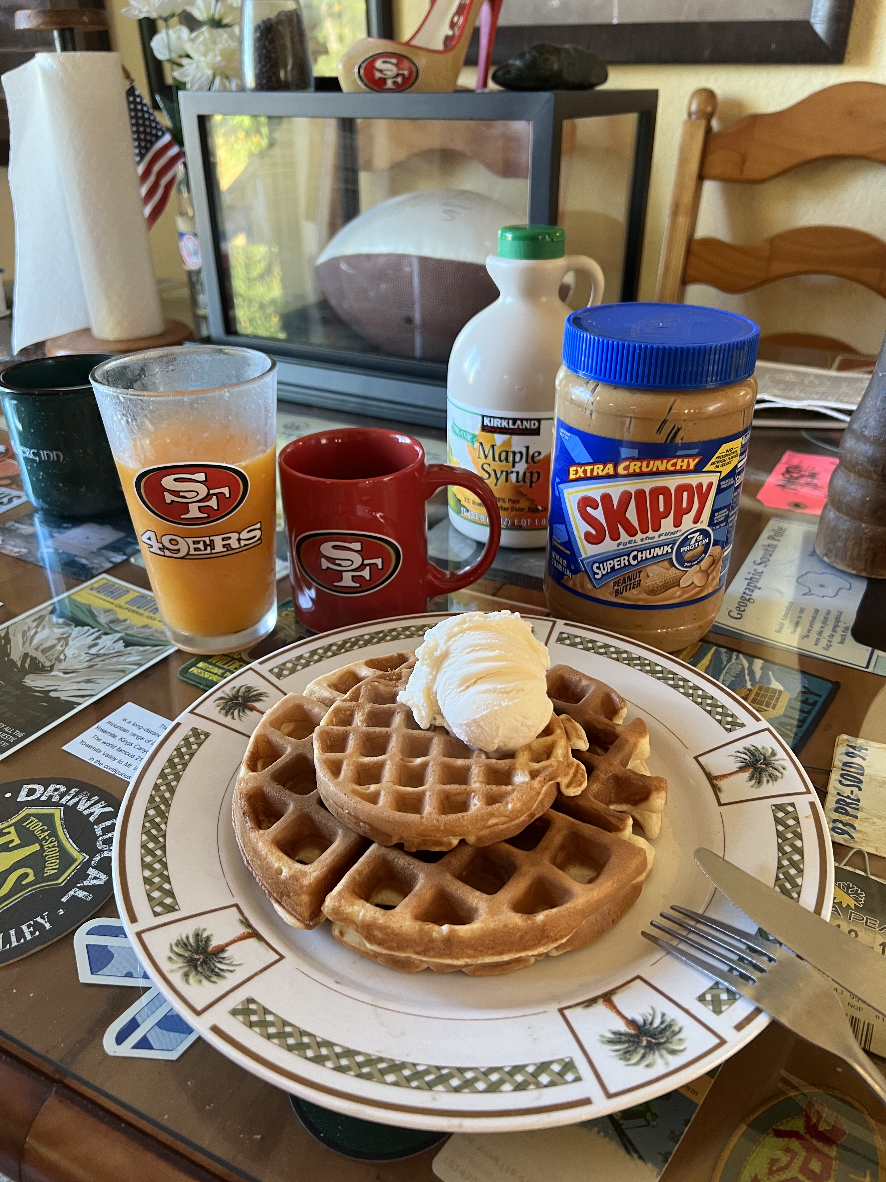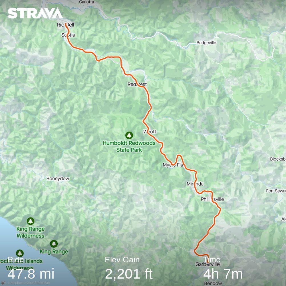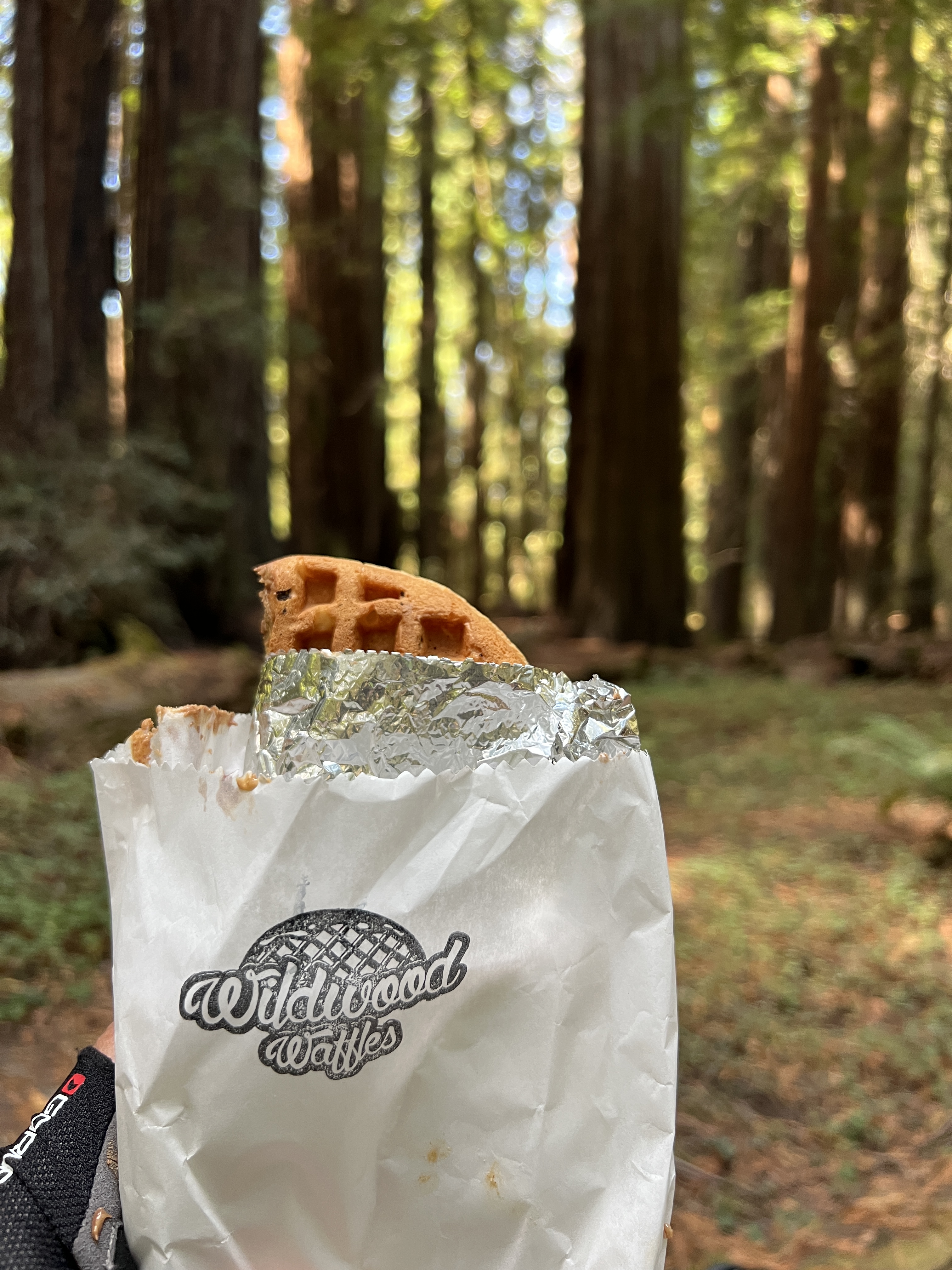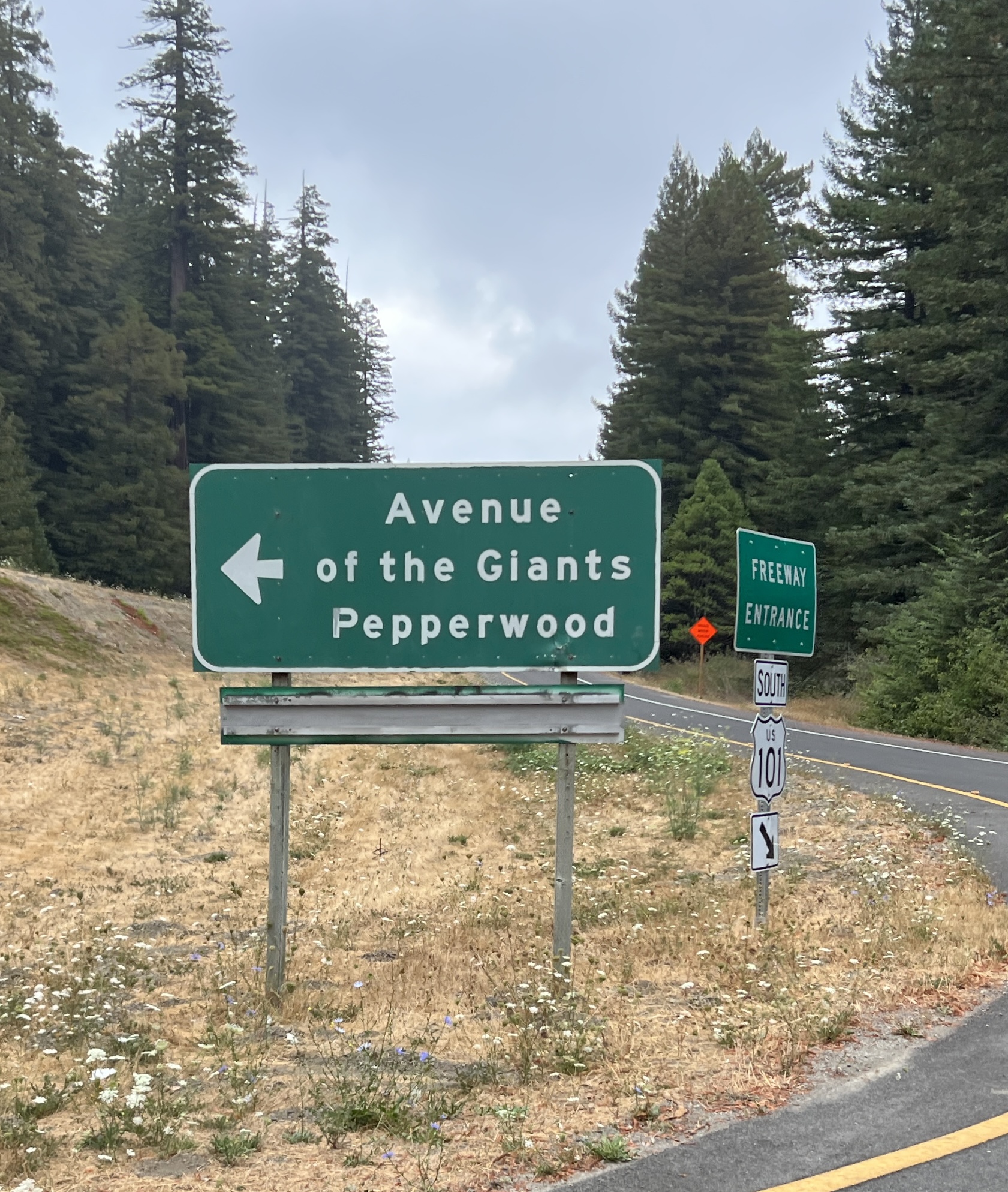 Scotia to Garberville. Wildwood Waffle for breakfast. Avenue of the Giants all day long.