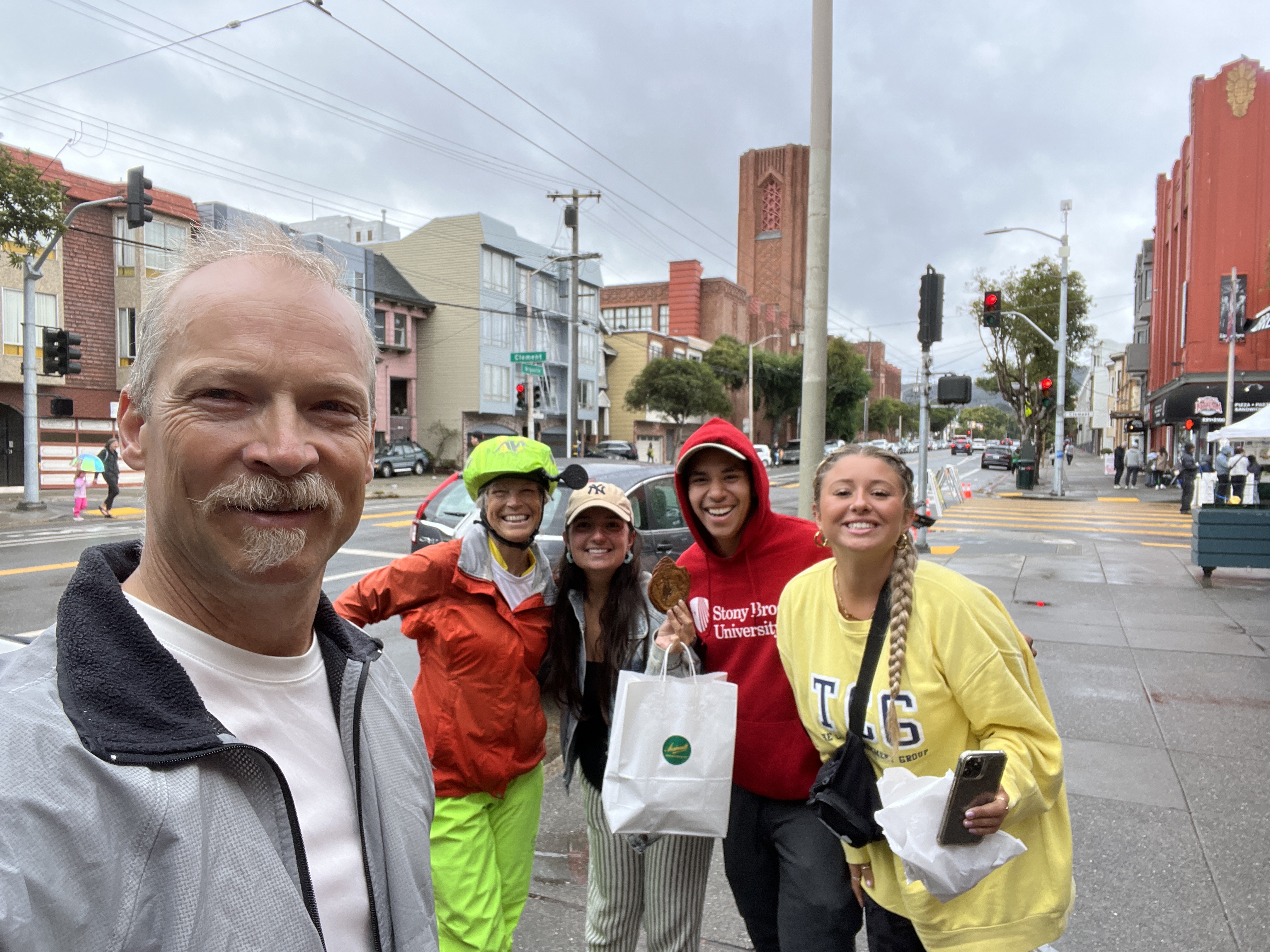 Golden Gate Park, Arsicault Bakery (and new friends from Hermosa Beach, CA and New Jersey). Rain and headwinds and wind gusts oh my! Dinner in Half Moon Bay.