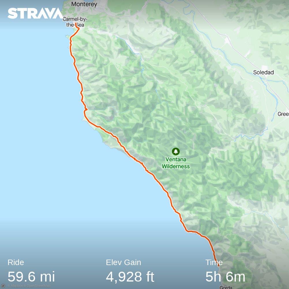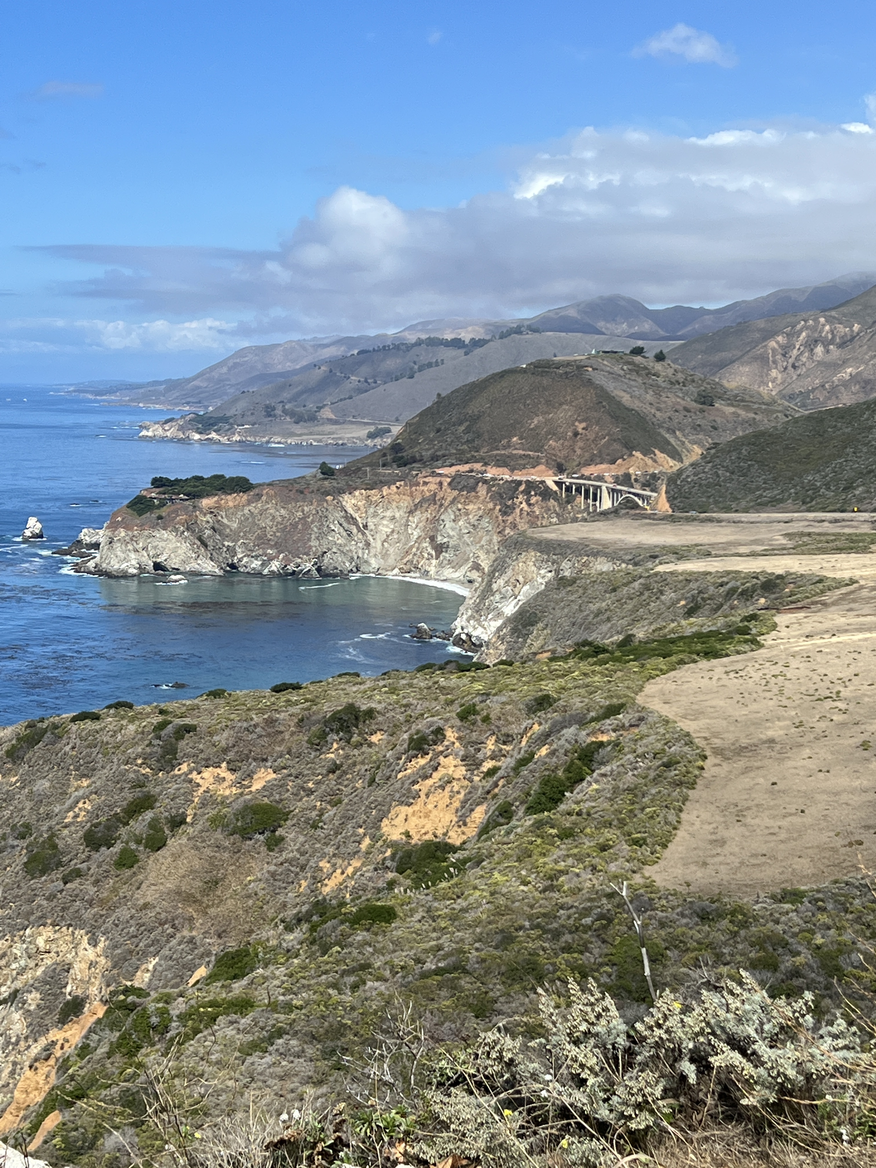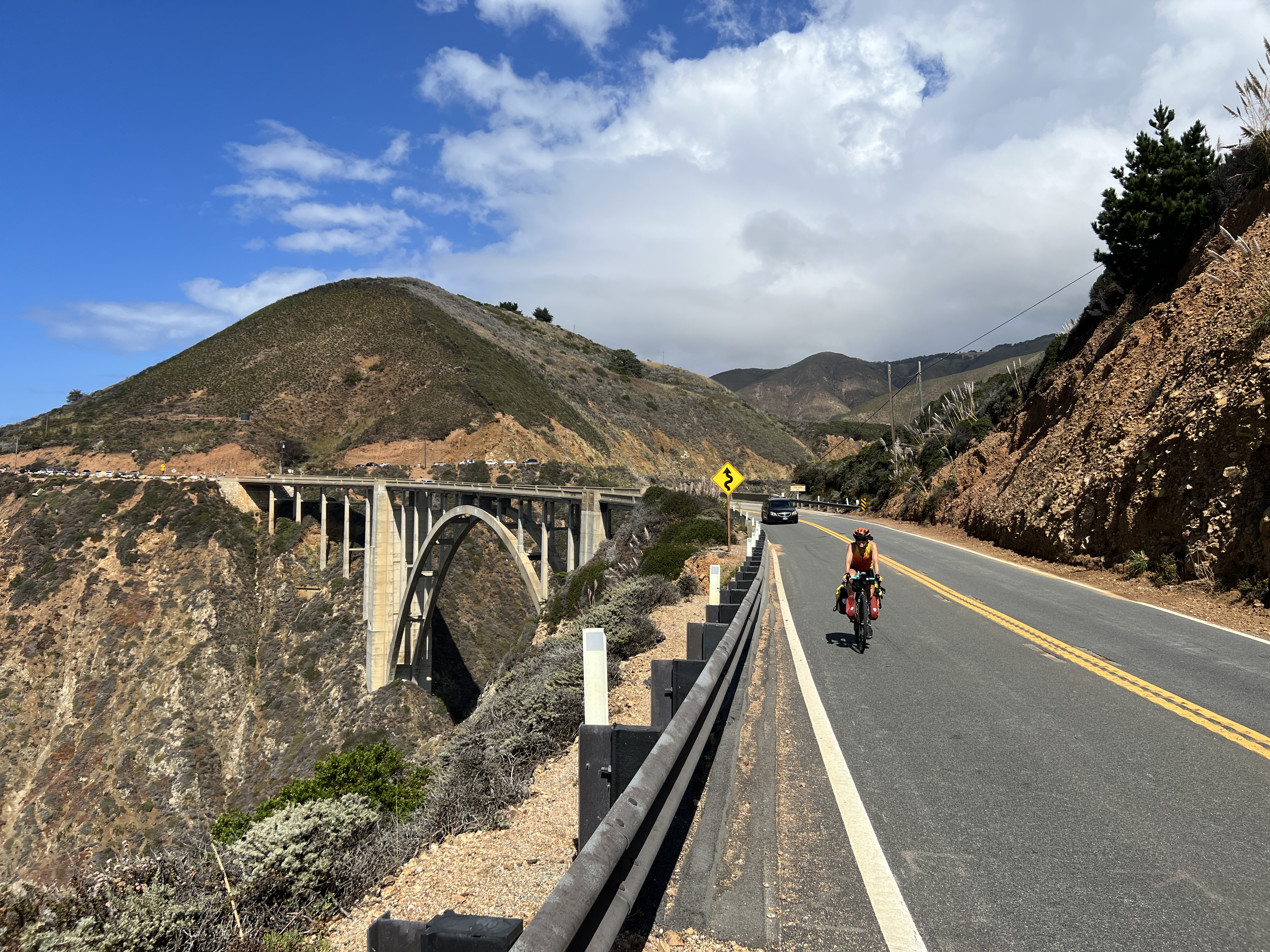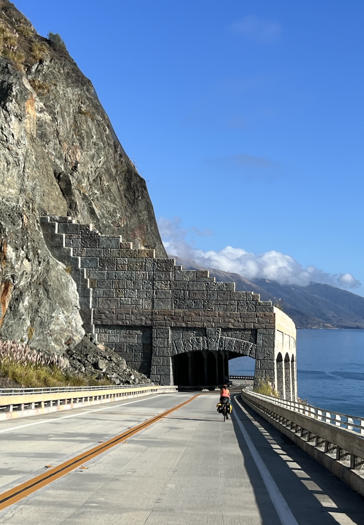 Carmel to Gorda. Great chocolate macaroons from the Carmel Bakery. Bridges and climbs and a cool tunnel.