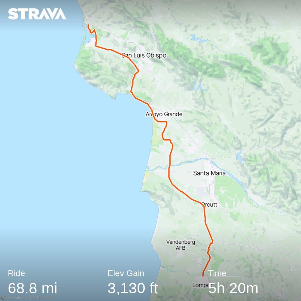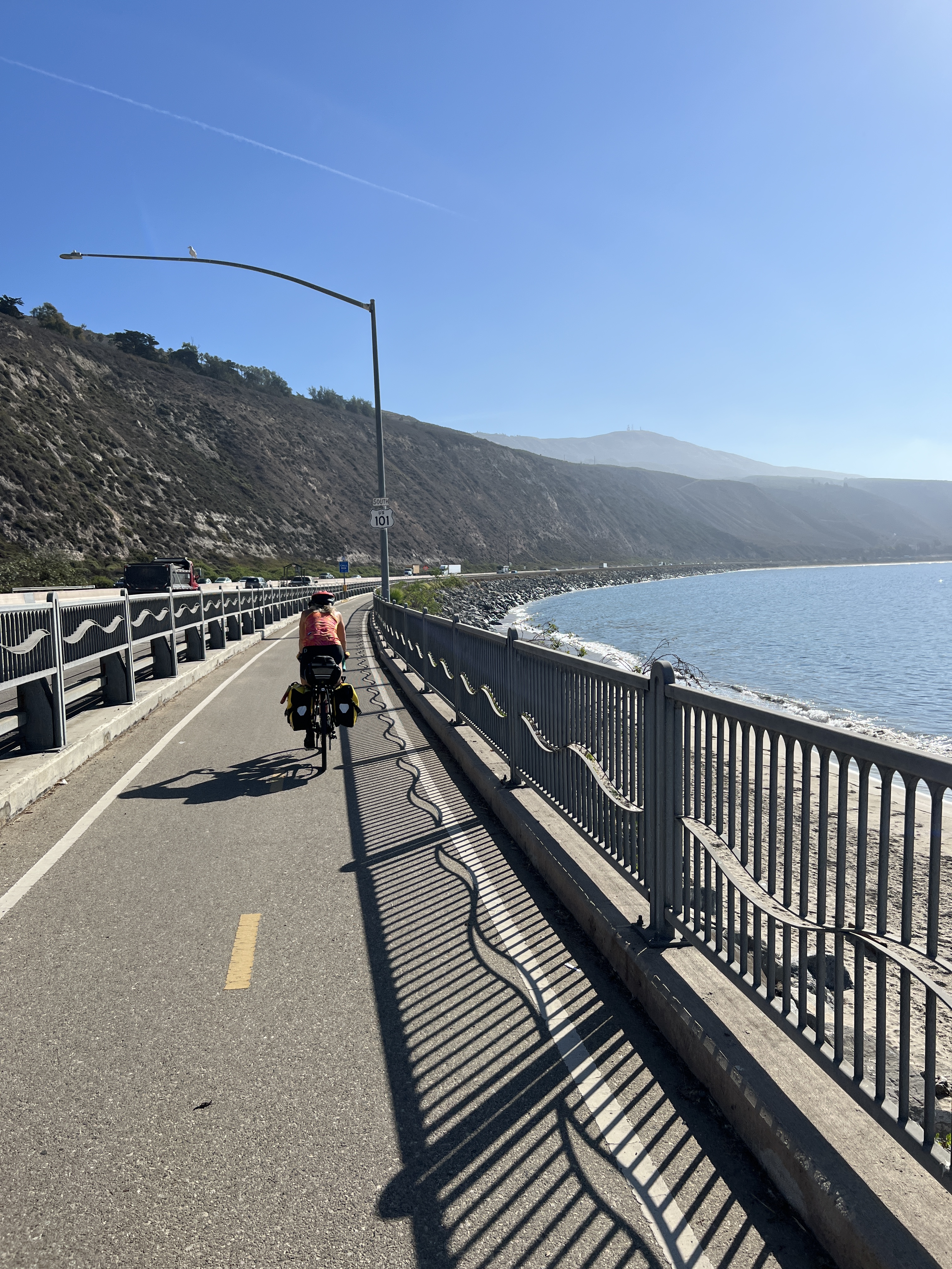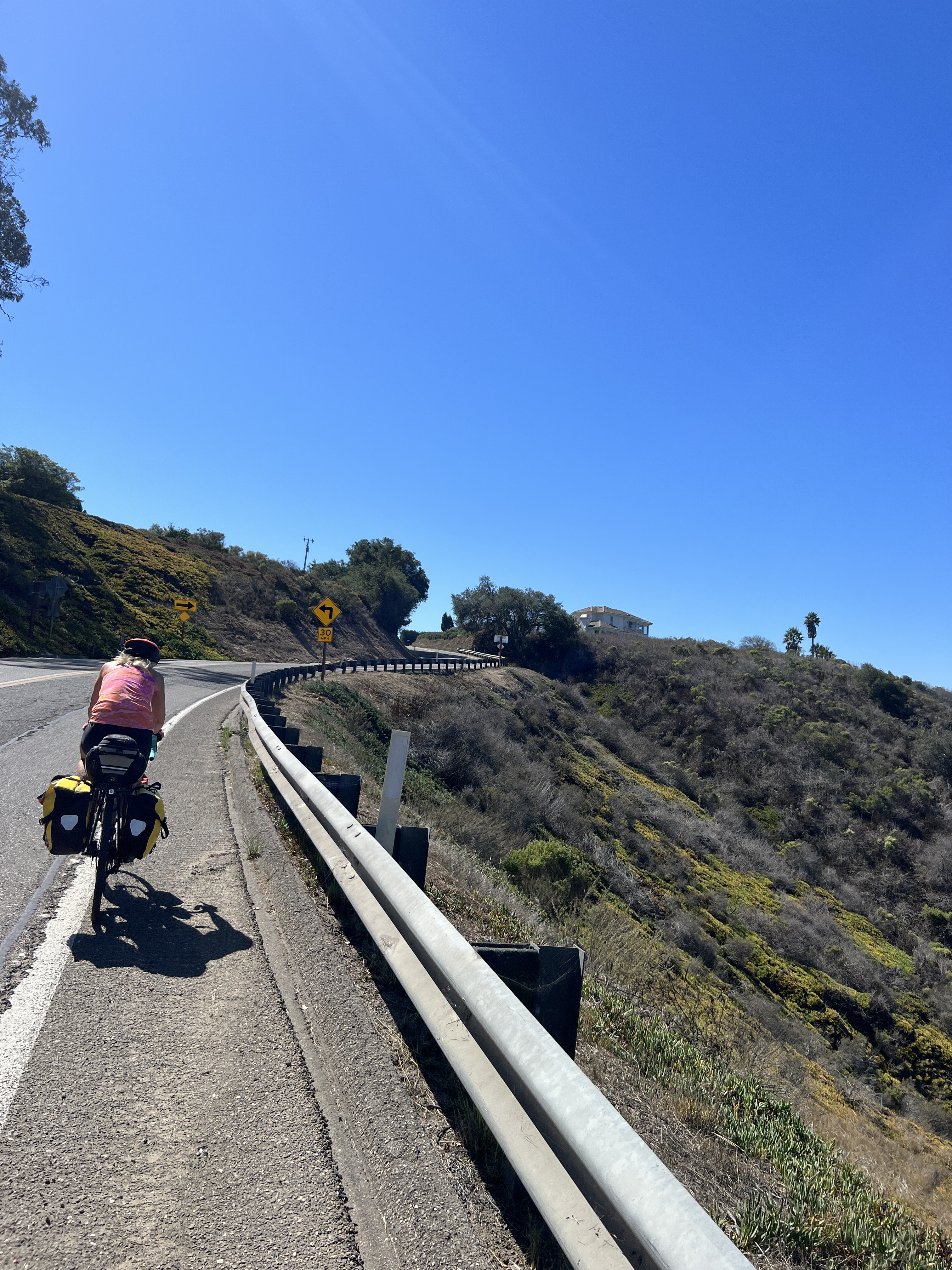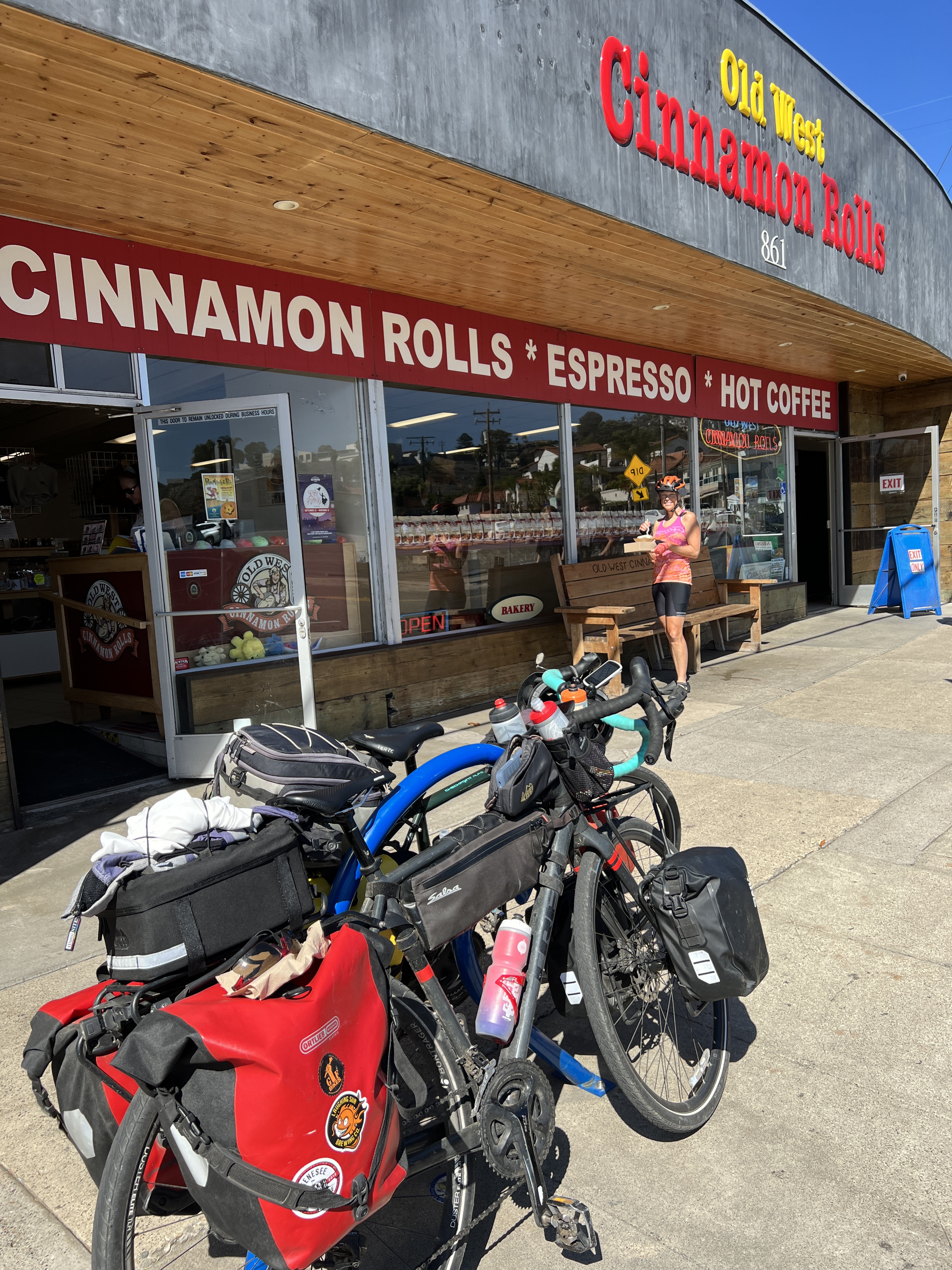 Leaving Morro Bay. Cinnamon rolls in Pizmo Beach. A brutal climb with a rewarding view and downhill.