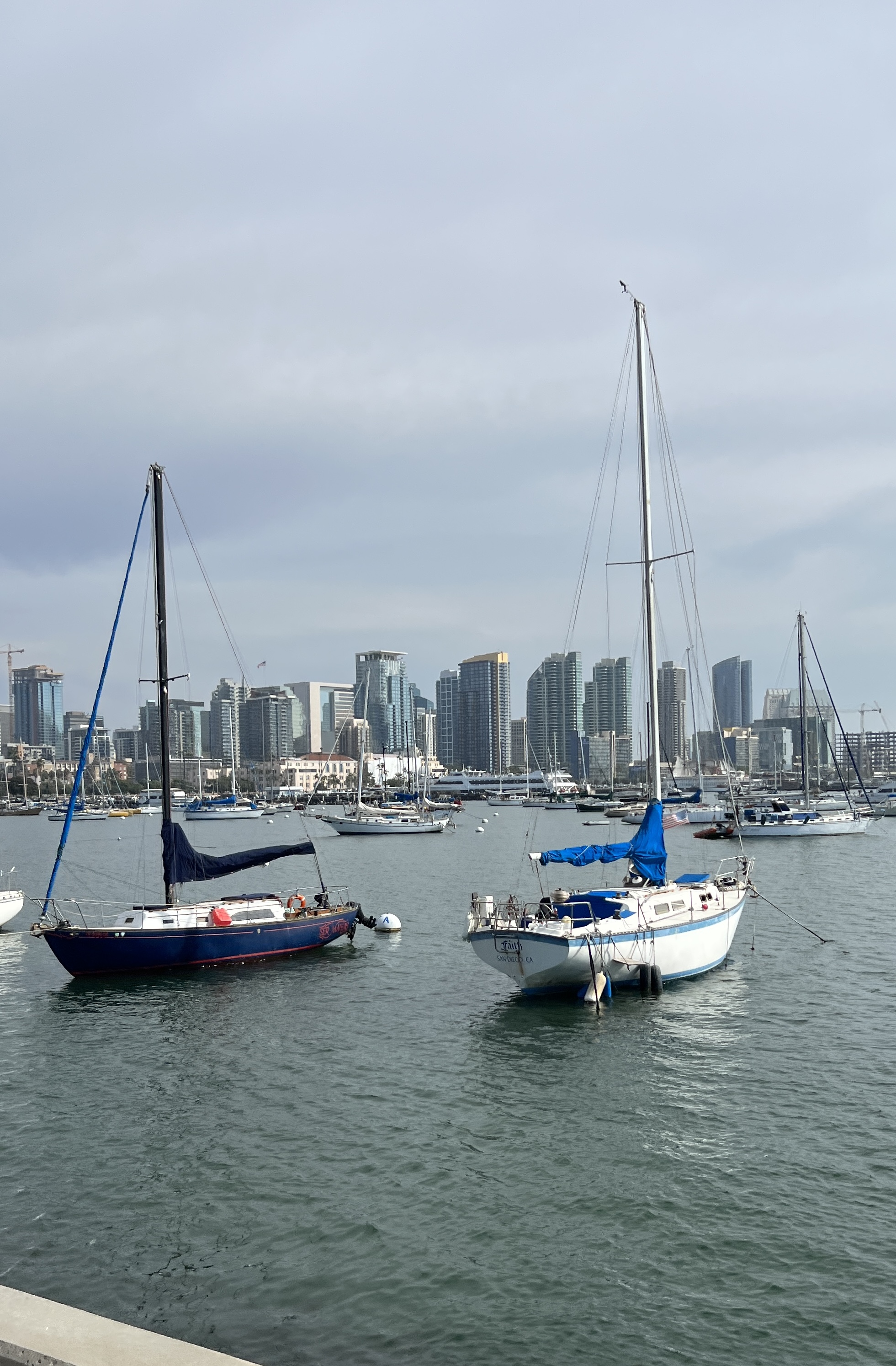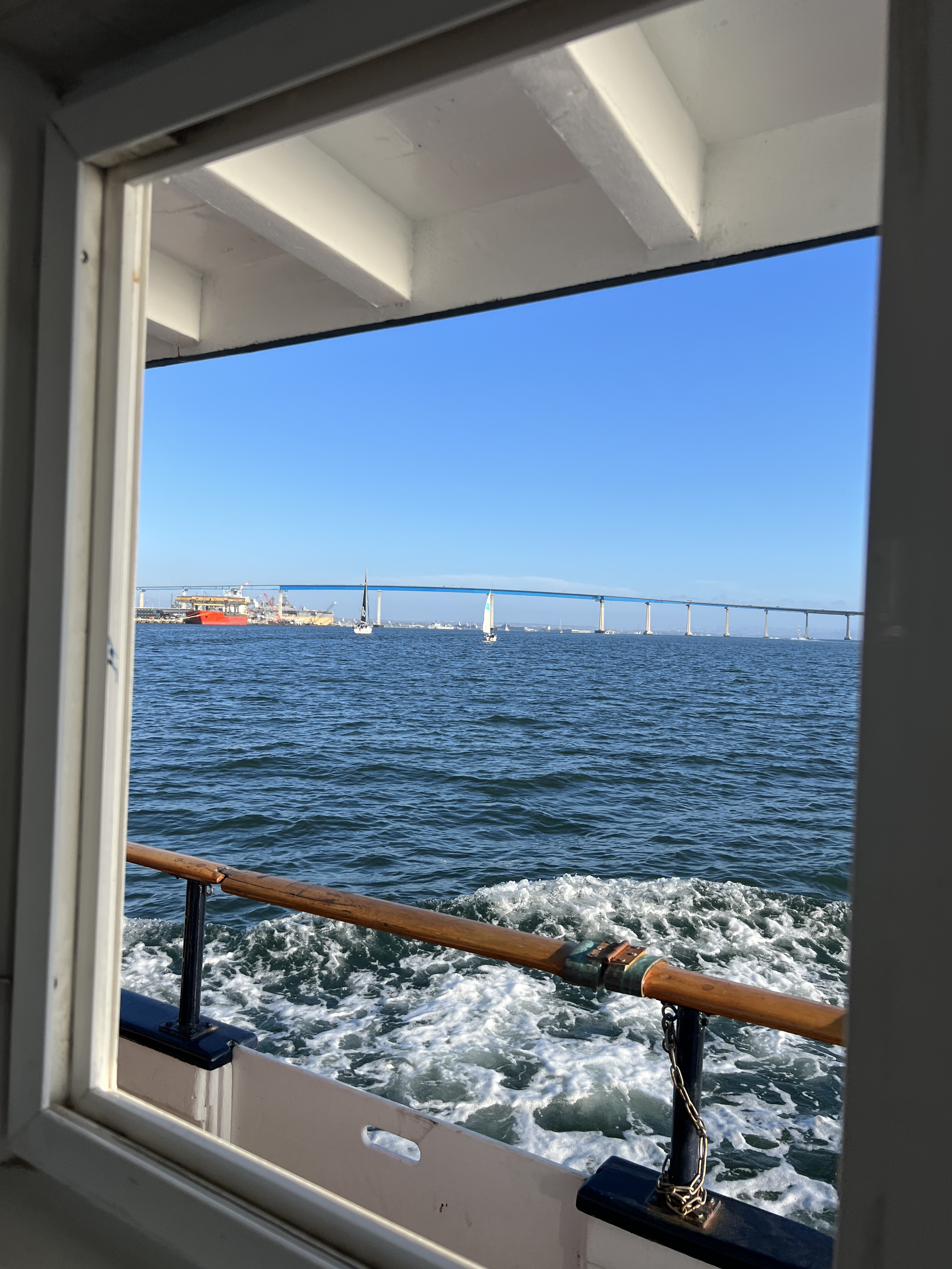 Mexican border. Live music and ocean swim. Ferry from Coronado back to the city. New Orleans dinner in San Diego.
